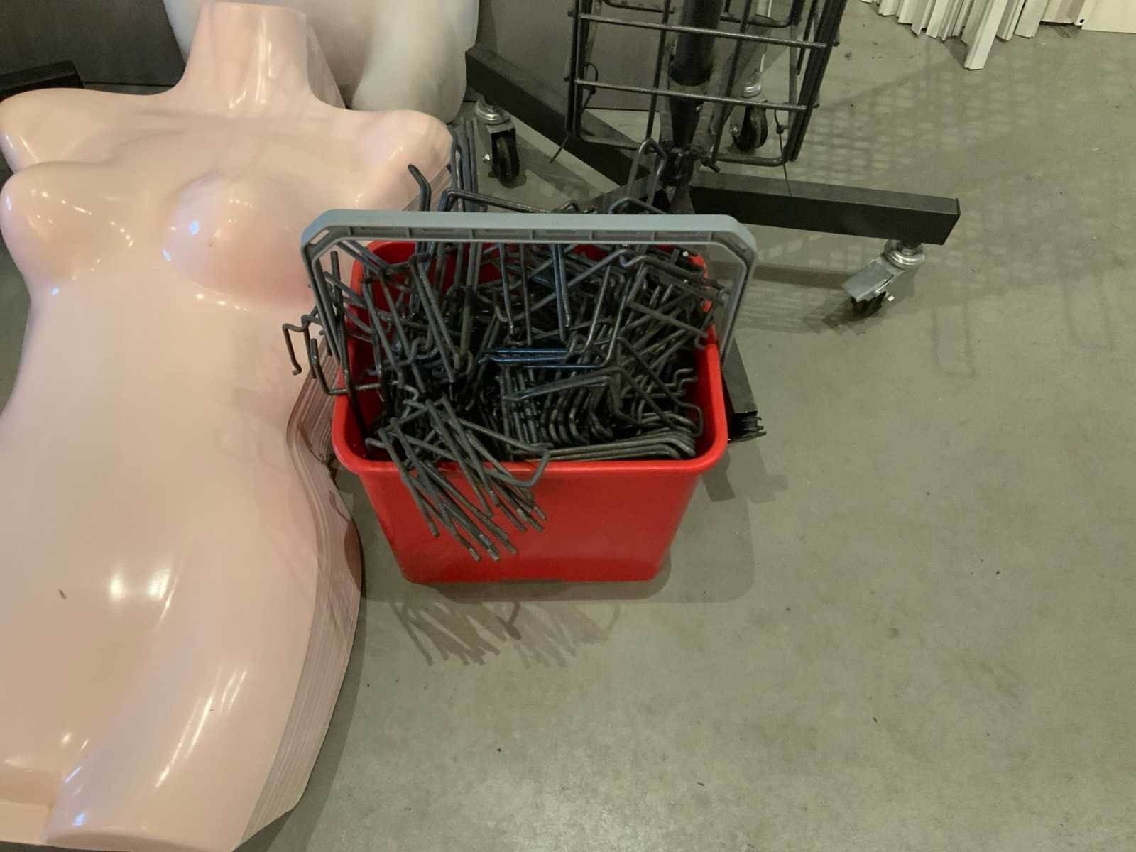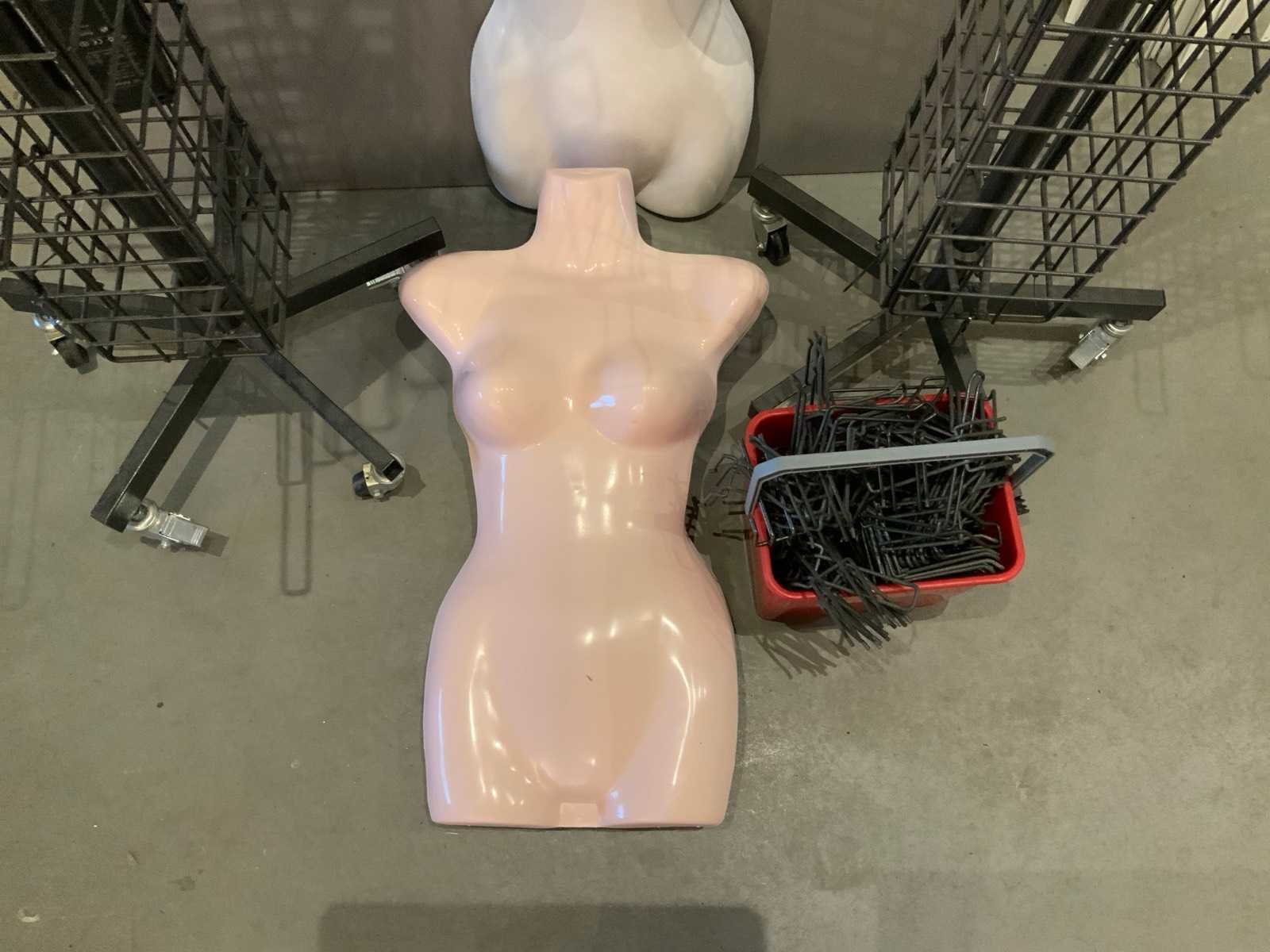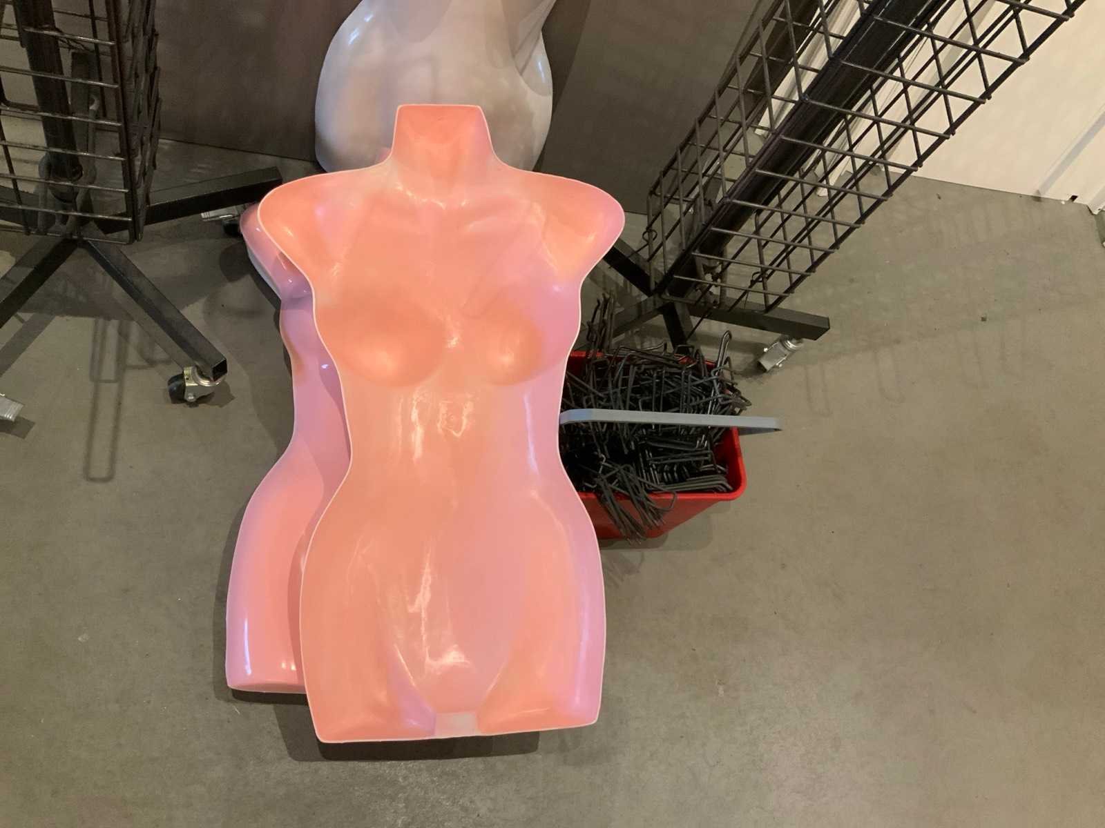 (x28) plastic ophangbare torsos (x2) zwarte presentatierekken inclusief bijbehorende haken