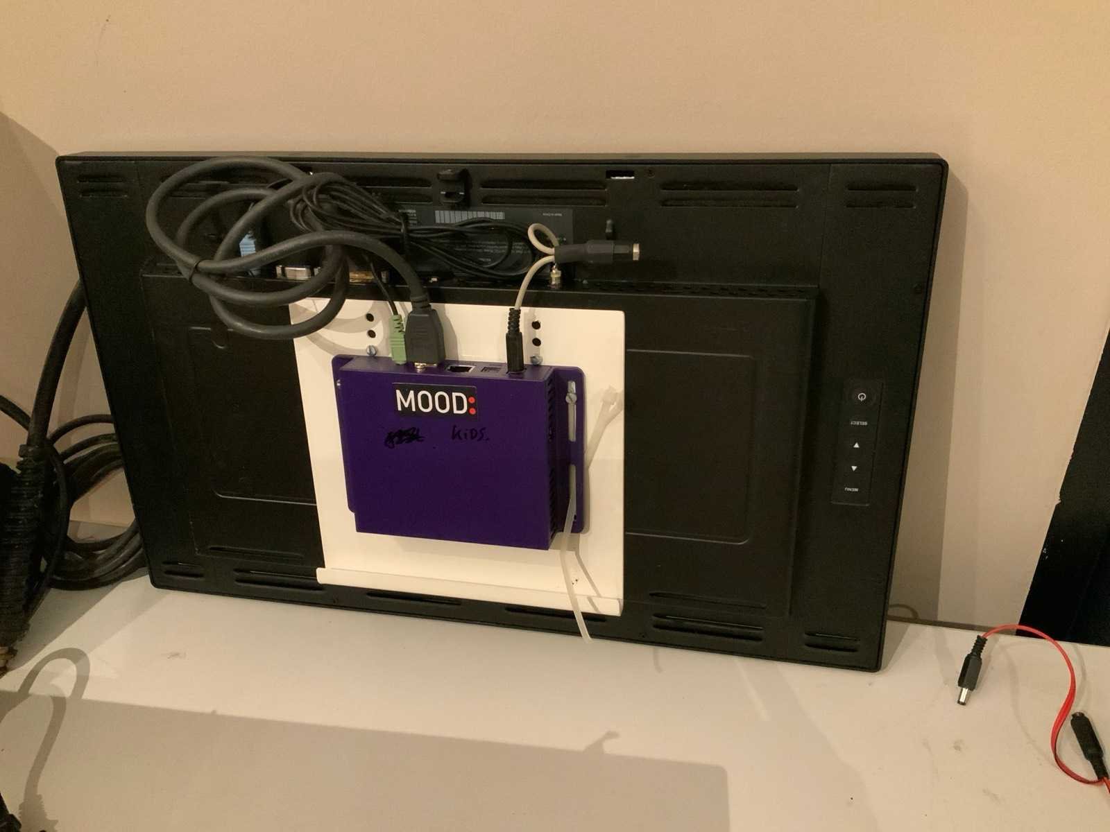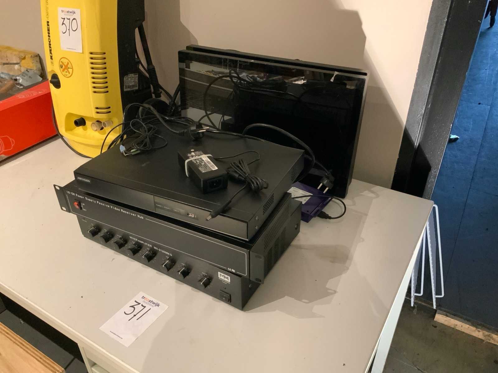 Bestaat uit 2 schermen, videoreceiver, versterker & video-ontbangerhub