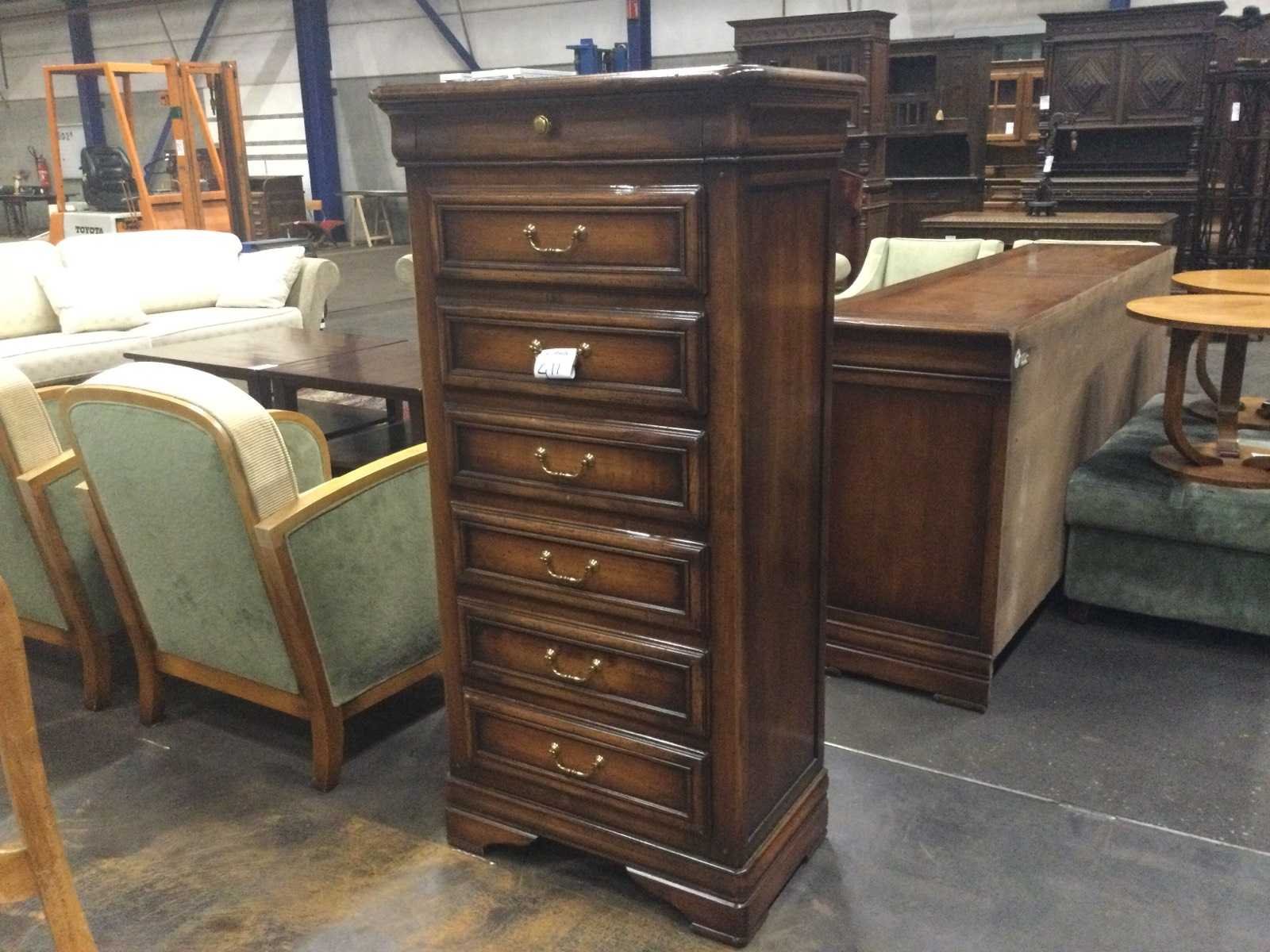 7 laden met messing handvaten, Merk: Selva Breedte: 70cm Hoogte: 143cm Diepte: 43cm Materiaal: Kersenhout