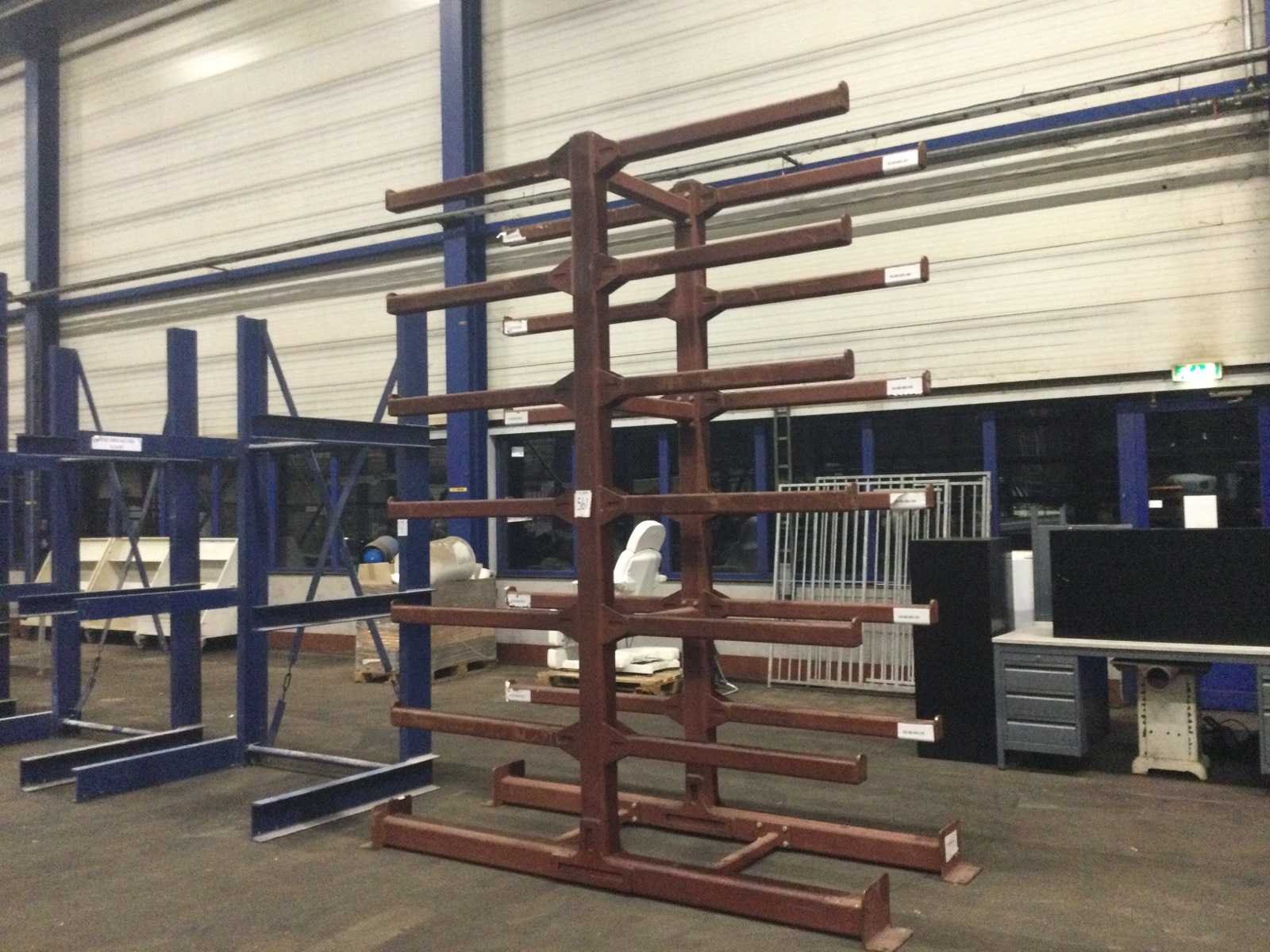 Voor lang materiaal, zwaar geconstrueerd Aantal staanders: 1 Aantal liggers: 7 Materiaal: Staal Totale afmeting Breedte: 230cm Totale afmeting Hoogte: 300cm