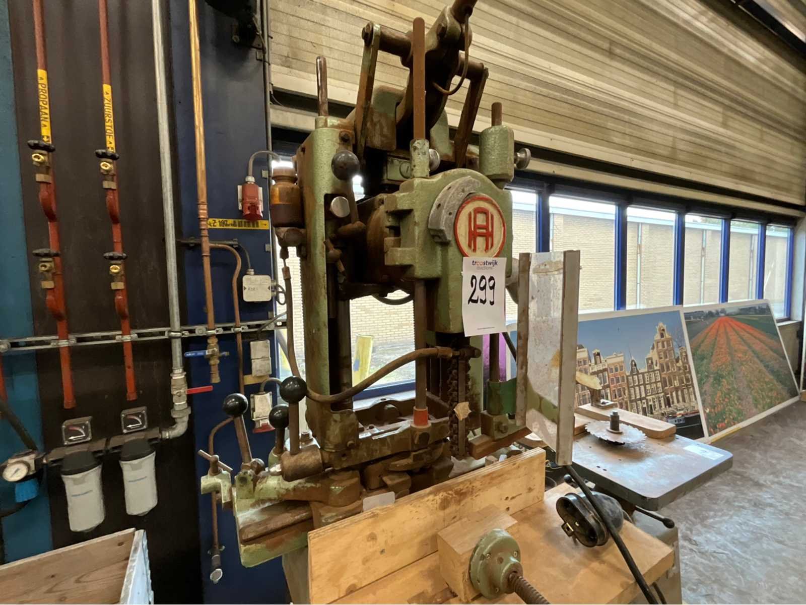 Voorzien van handbediende produktklem; Merk: AH Alfred Harbs Type: UKW Bouwjaar: 1966 Aansluiting: 380V Totale afmeting Breedte: 1000mm Totale afmeting Hoogte: 2000mm Totale afmeting L: 800mm