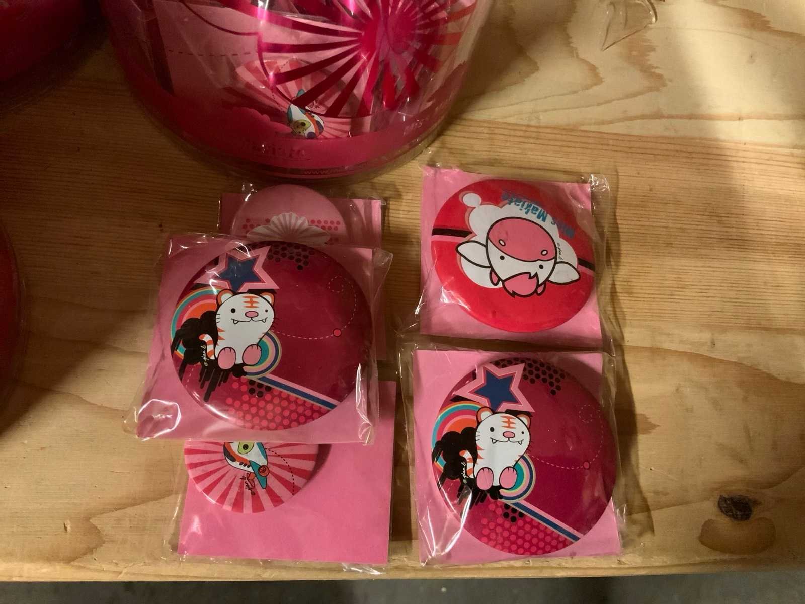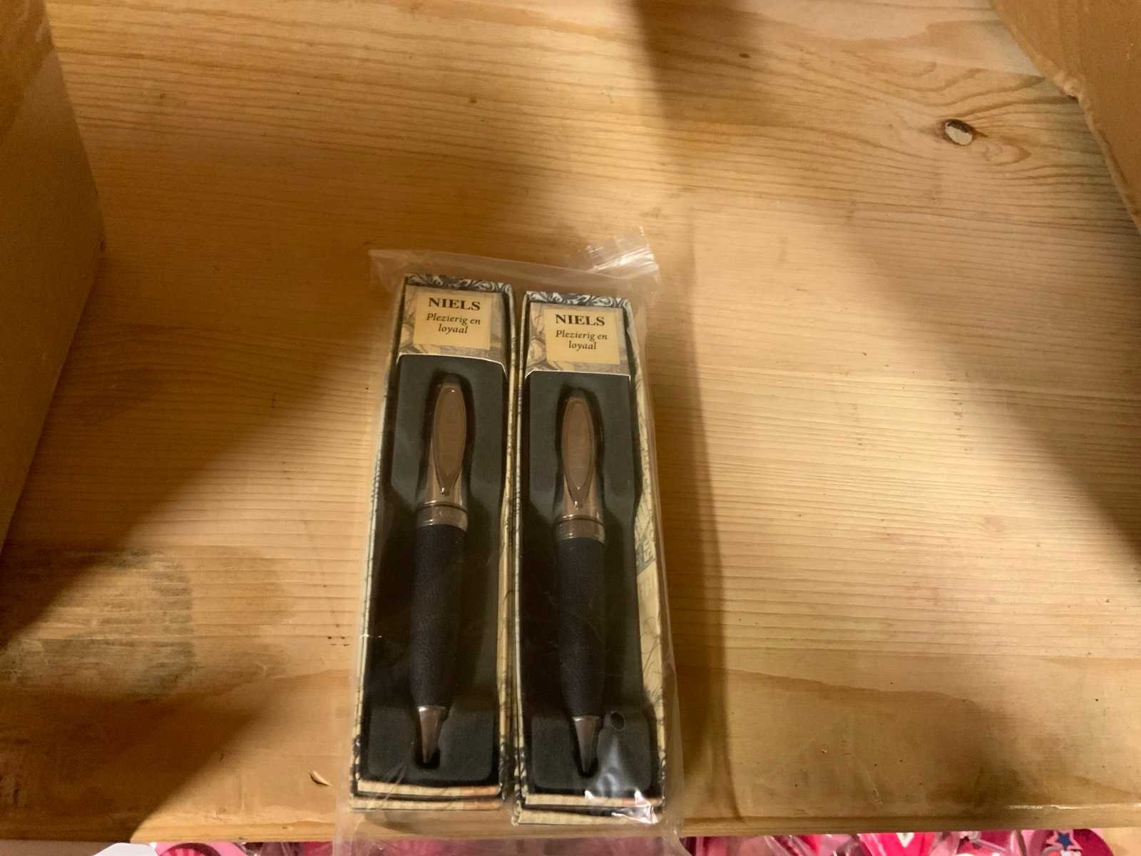 Pennen met verschillende namen 1e: Buttons 2e: Lampjes 3e: Sleutelhanger rekenmachine 4e: Raamstickers 5e: Naam pennen