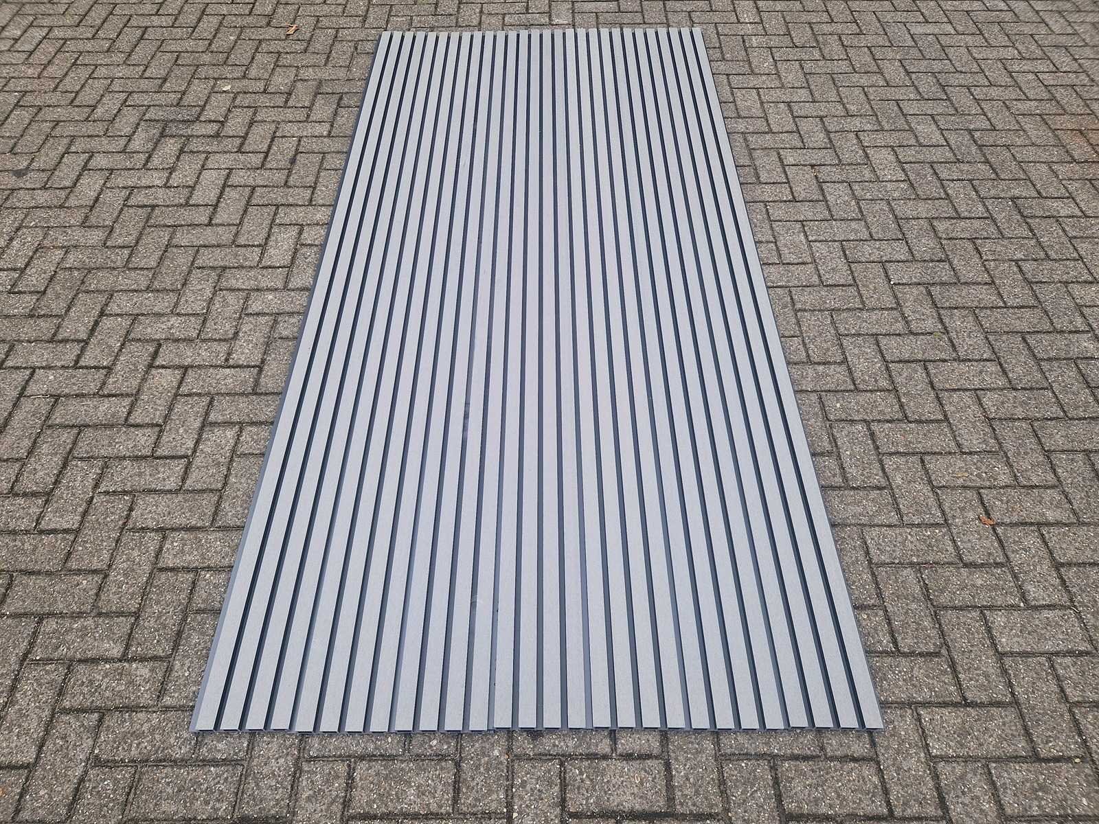 Kleur; antraciet/grijs, lange levensduur, 290 x 21.9 x 2.6 cm per paneel, werkende breedte 20 cm, ongebruikt Afmeting l: 2900mm Afmeting b: 219mm Afmeting h: 26mm