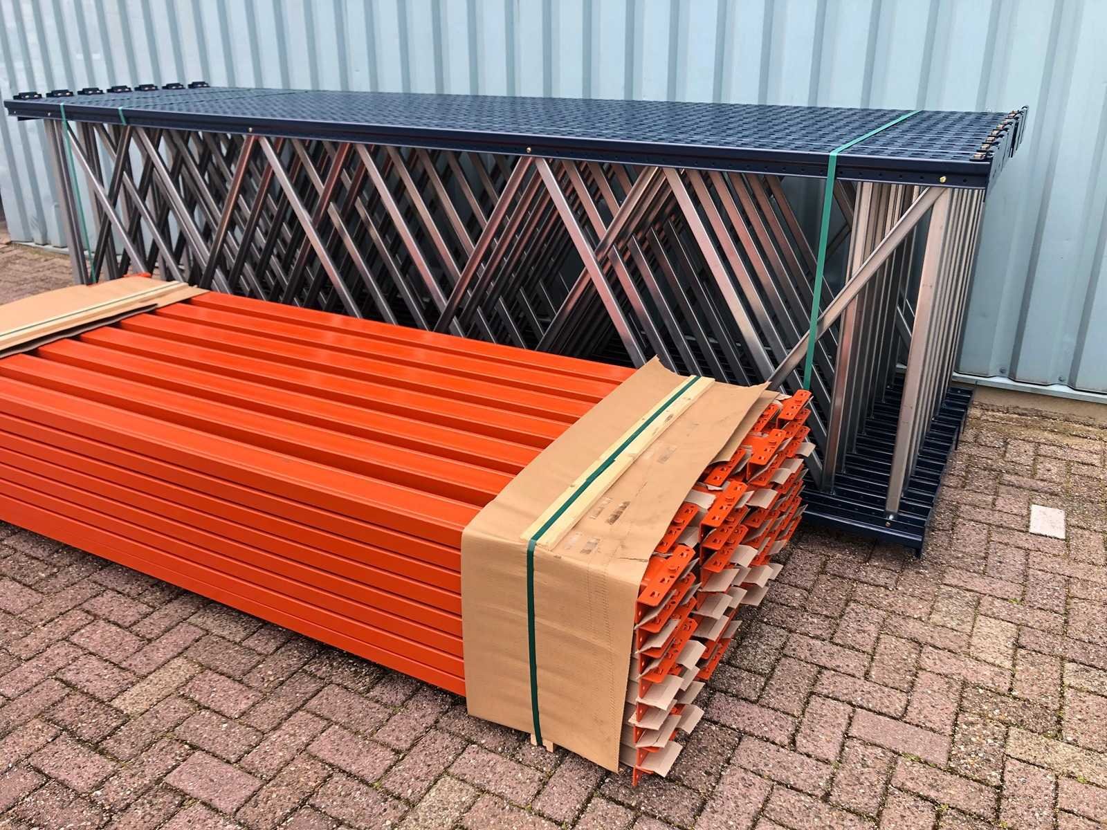 Lengte liggers 270cm, ongebruikt, gedemonteerd, Zeer netjes 15 staanders 4000x1100 56 liggers 2700 mm lang. Alles is gedemonteerd Incl voetplaten en borgpennen. Let op het juiste vervoer i.v.m. lengte en gewicht. Heftruck is aanwezig voor het laden. Merk: Mecalux Aantal staanders: 15 Aantal liggers: 56 Lengte: 39000cm Breedte: 1100cm Hoogte: 4000cm