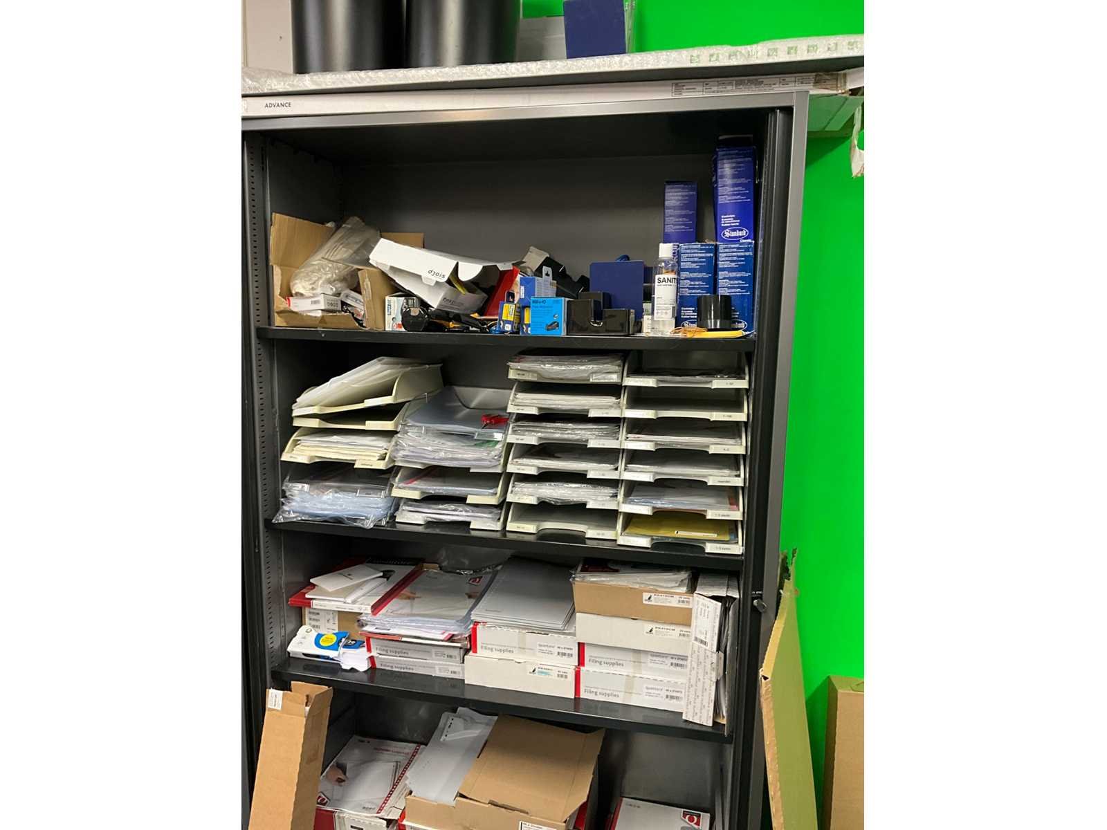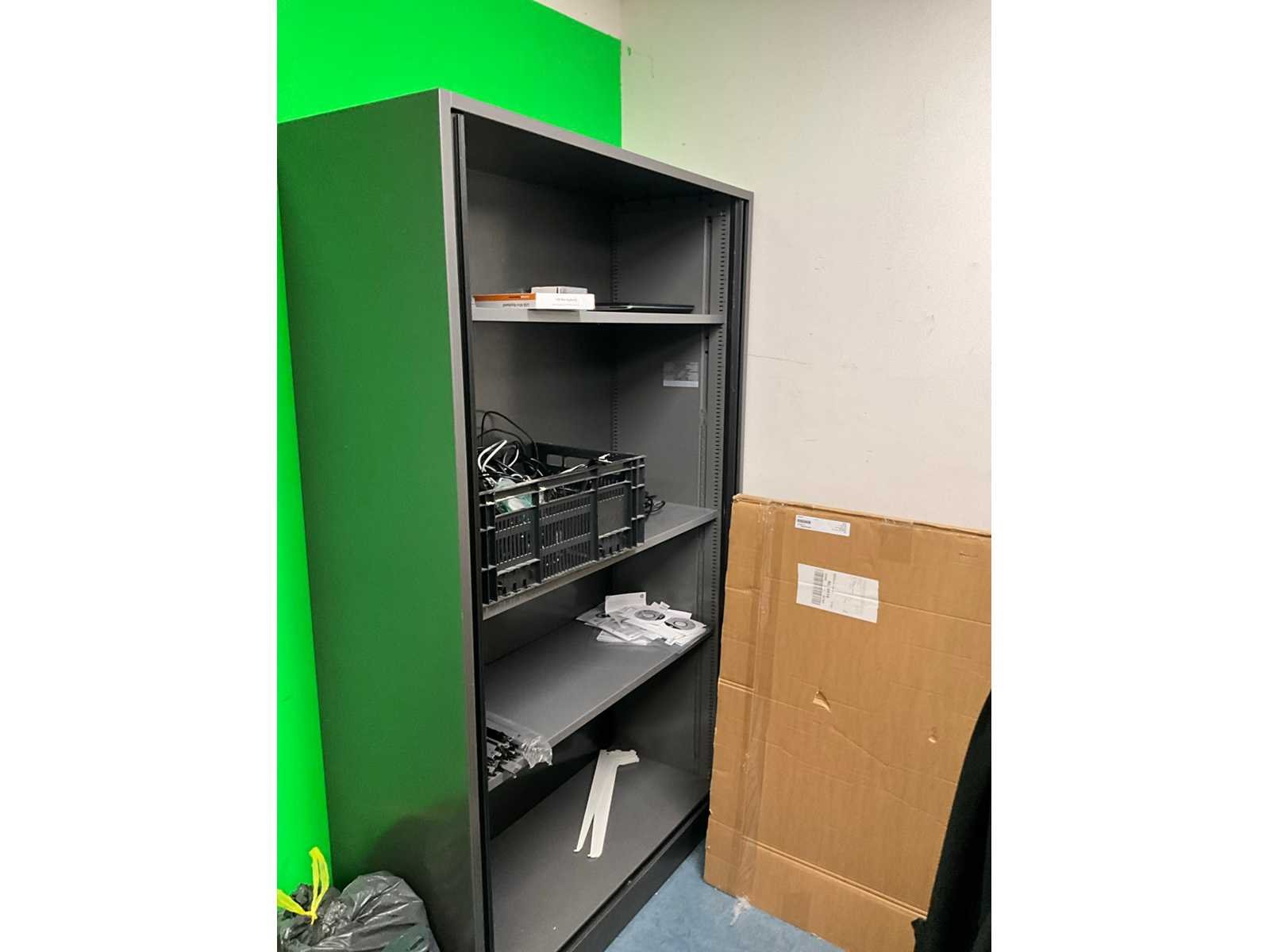 Waaronder 2x Ahrend archiefkast ( 1200x450x1950 mm) en 2 metalen stellingen (2030x2250x400 mm) en kantoorgerief