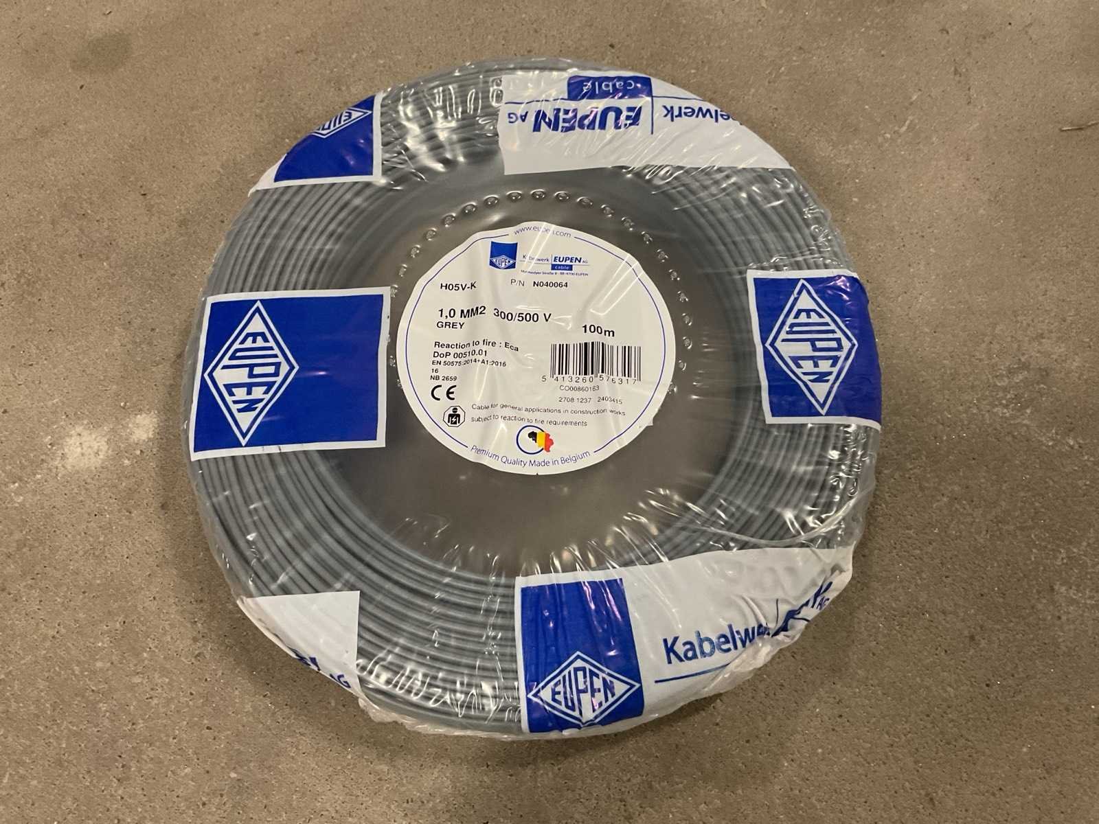 300/500V Merk: Eupen Model: H05V-K 1mm2 Kleur: Grijs