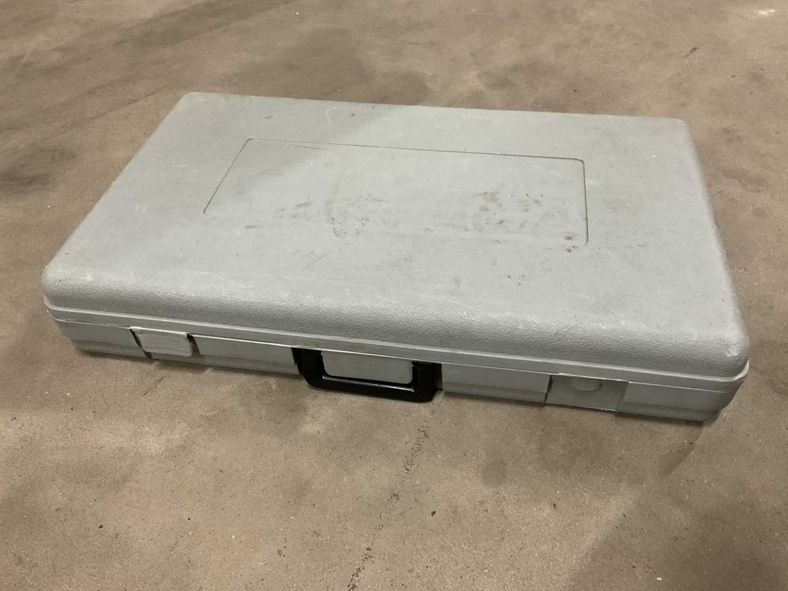 In kunststof koffer, sluitingen defect. Merk: Seco Type: AR150A