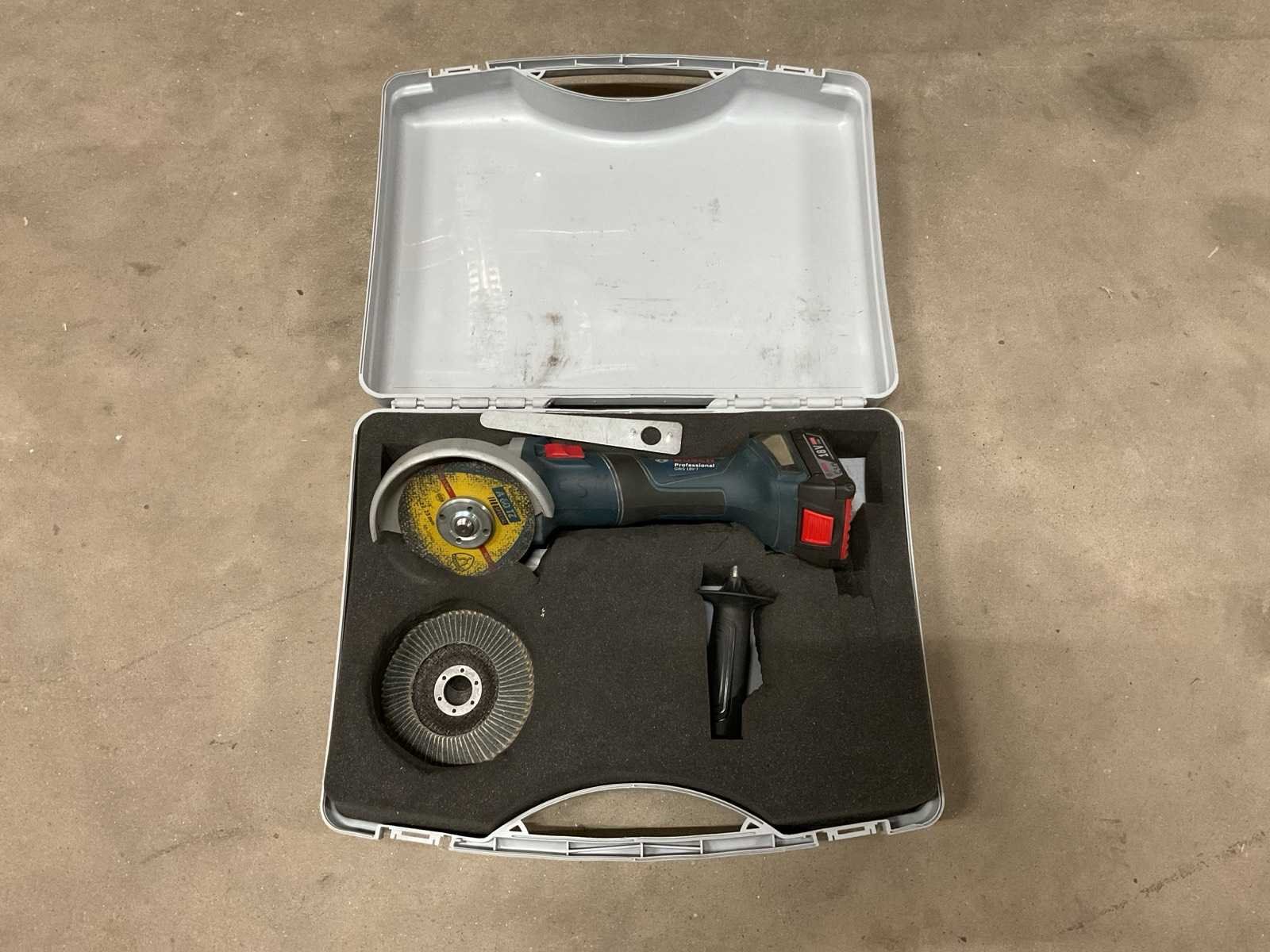 Excl. acculader. Merk: Bosch Type: GWS 18V-7 Accuspanning: 18V Accu type: Li-Ion Met koffer: true