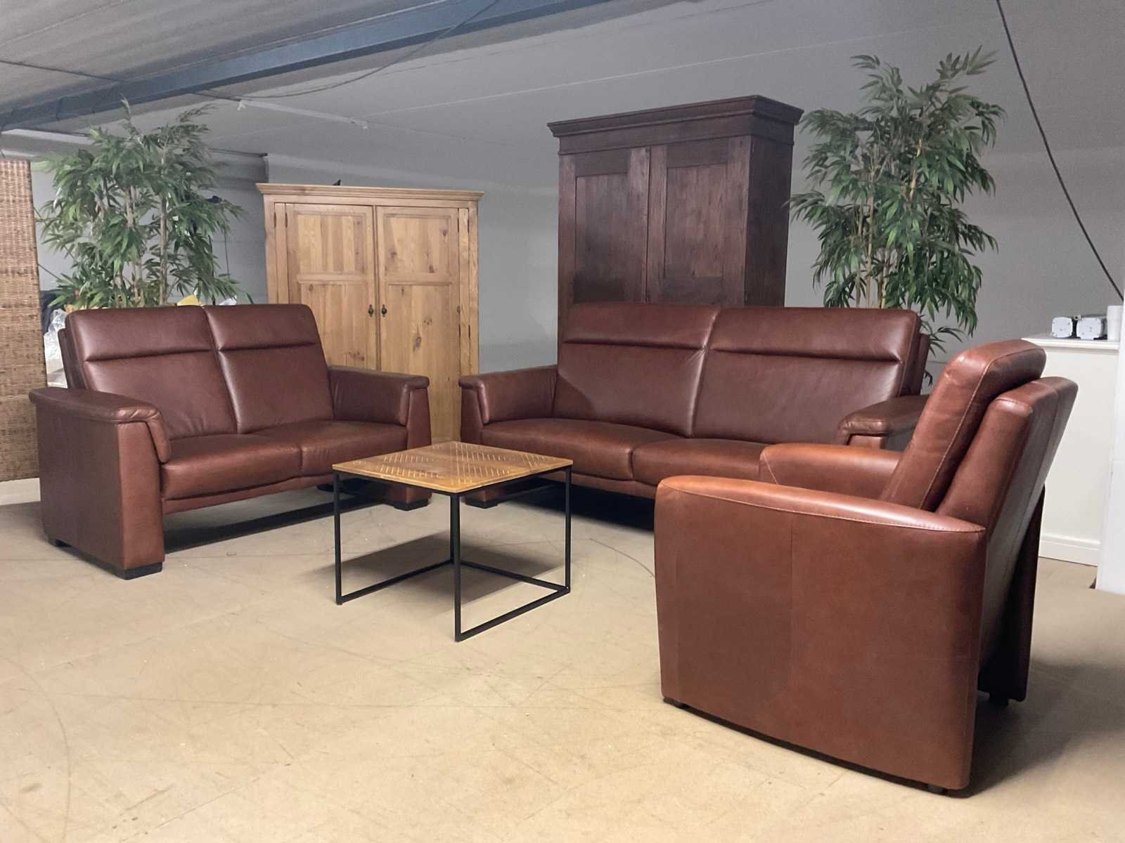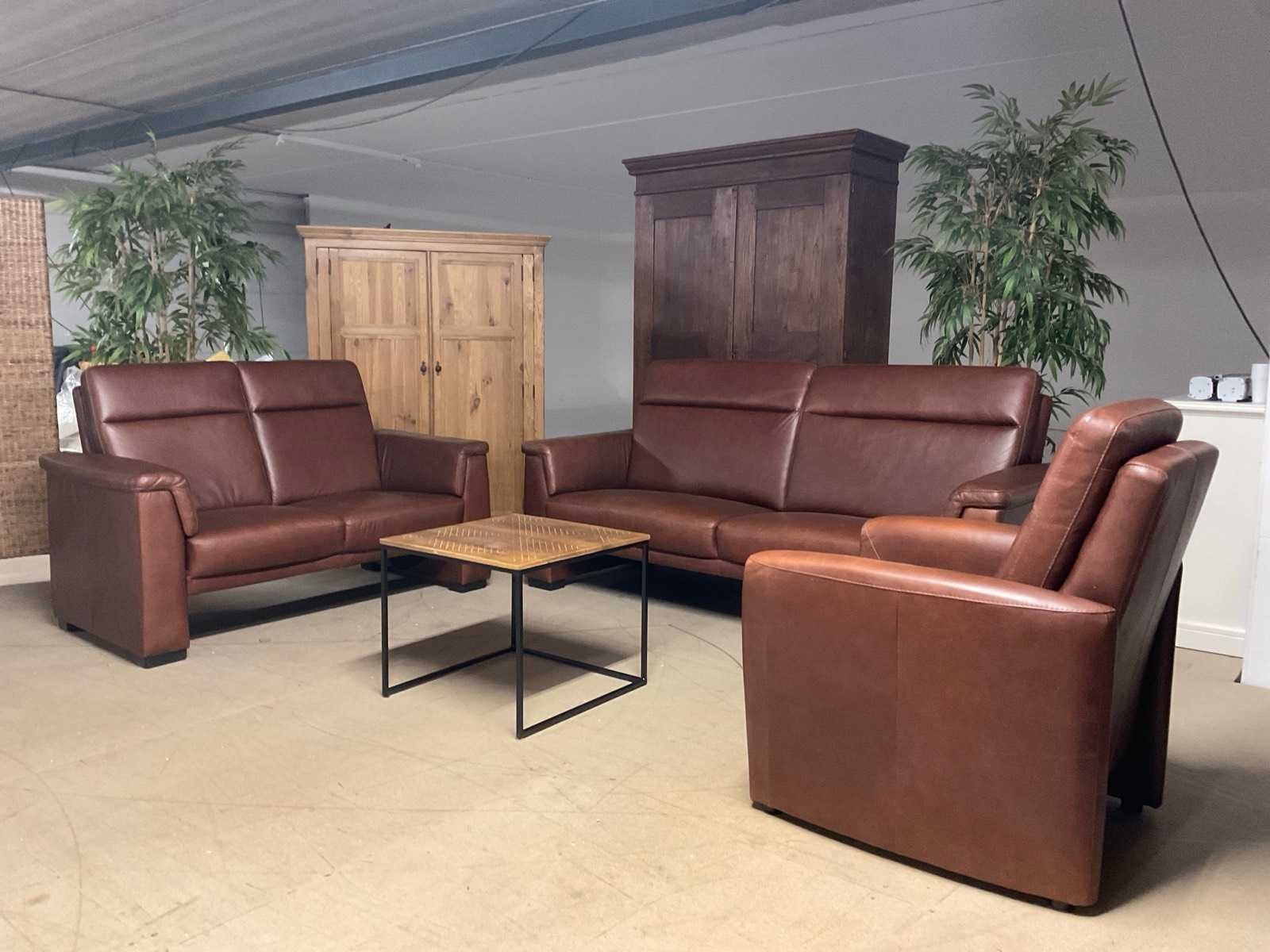 Afmetingen 3-zits bankstel (LxBxH) 80x215x91 cm Afmetingen 2-zits bankstel (LxBxH) 80x150x91cm Afmetingen fauteuil. (LxBxH) 80x70x92cm Model: Filor Materiaal: Schapenleer