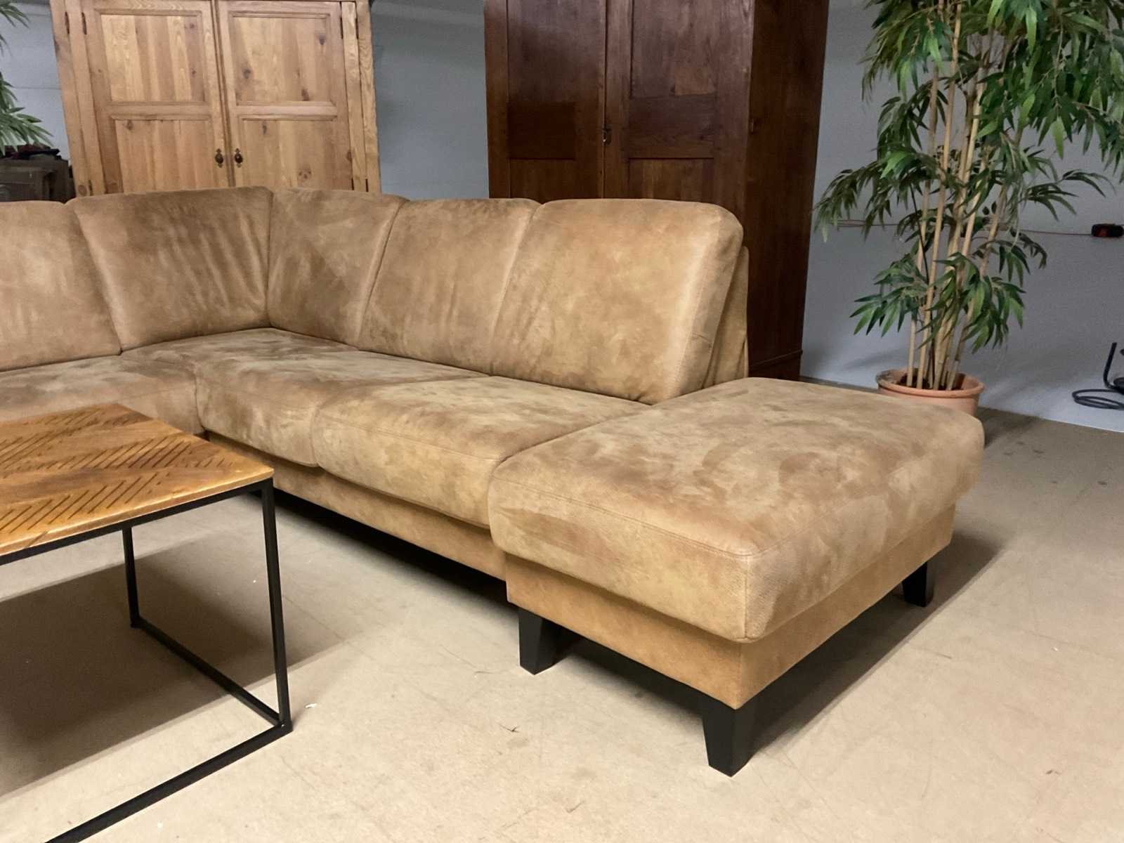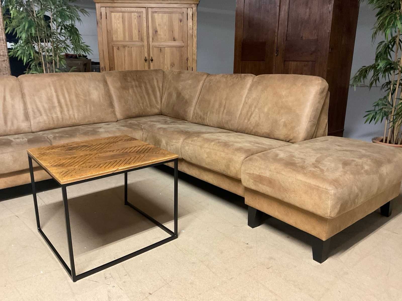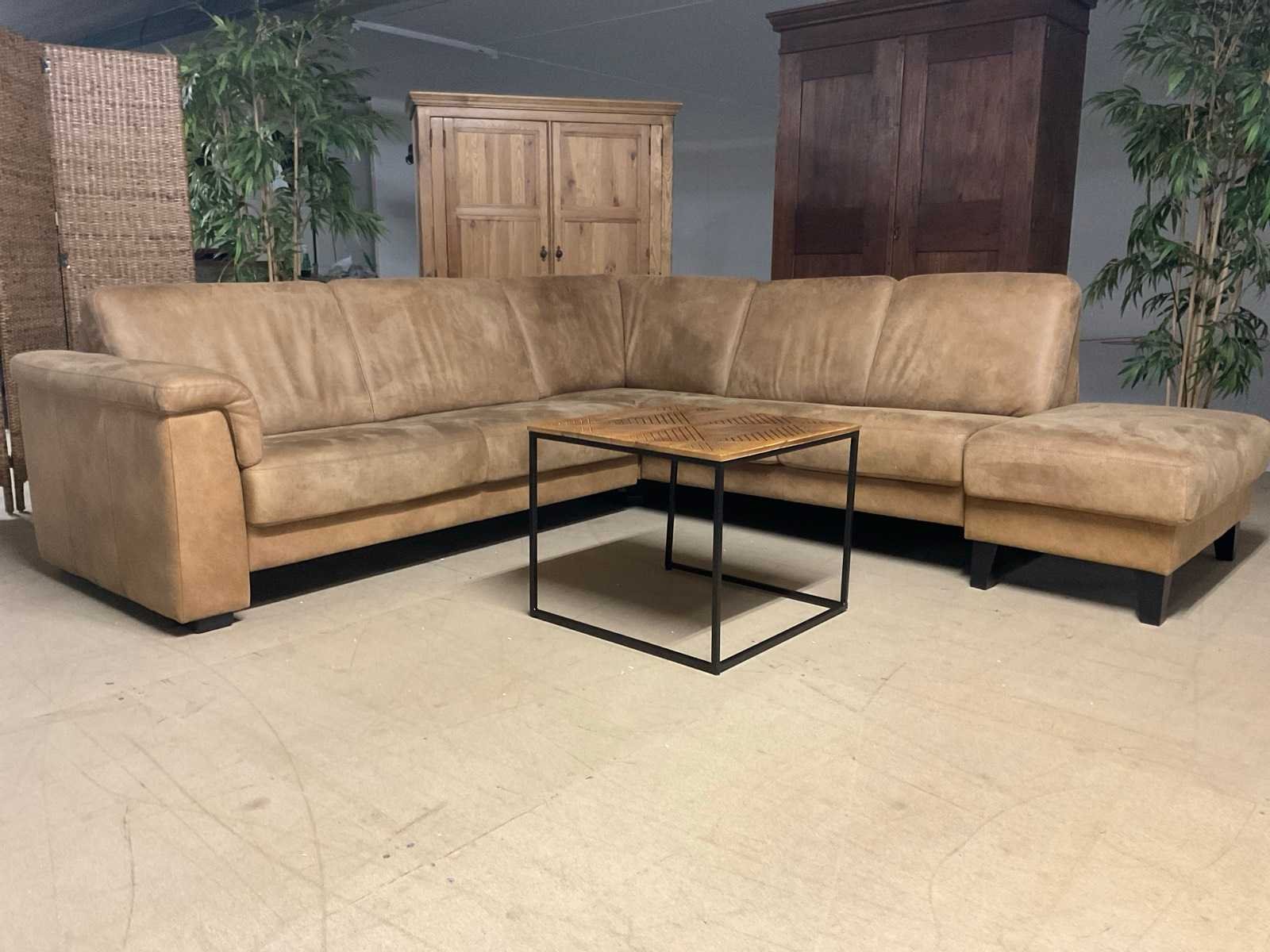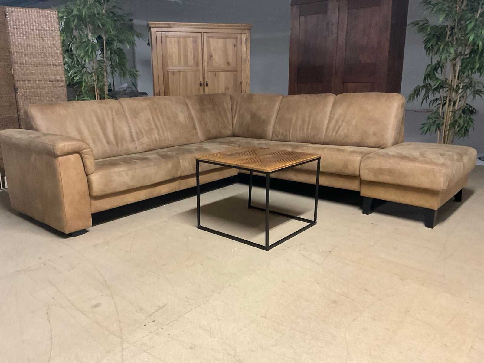 Hoekbank bestaat uit 4-delen. Model: Savan Kleur: Beige/bruin Lengte: 255cm Breedte: 266cm Hoogte: 80cm Zithoogte: 42cm Diepte: 55cm