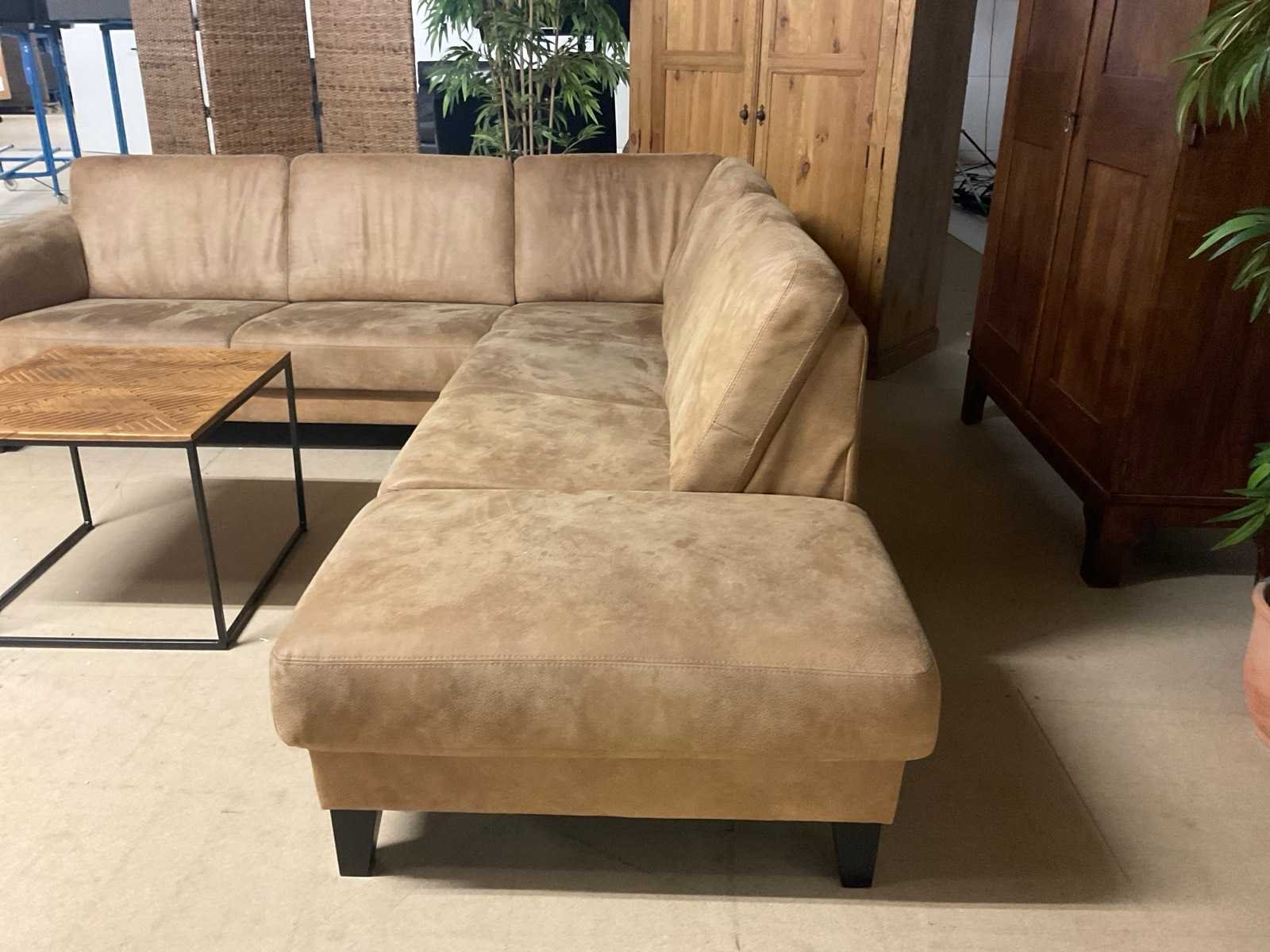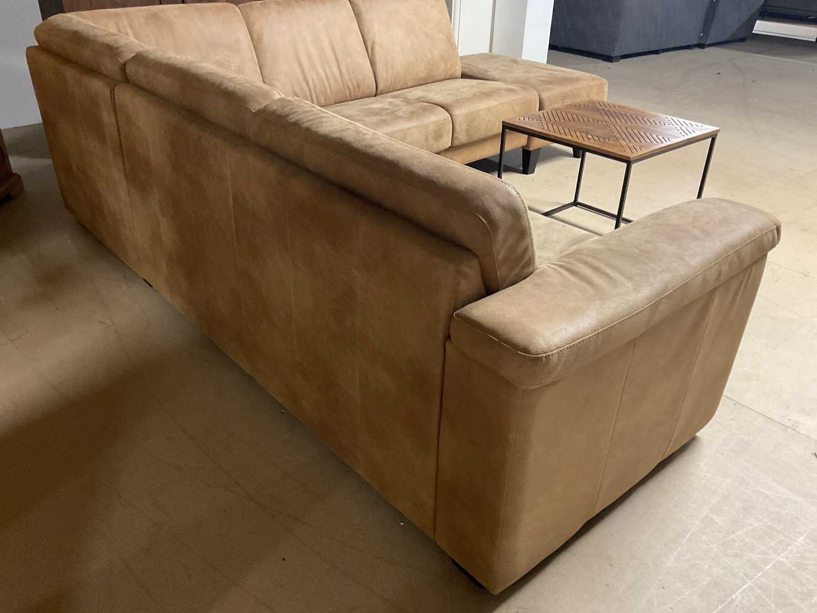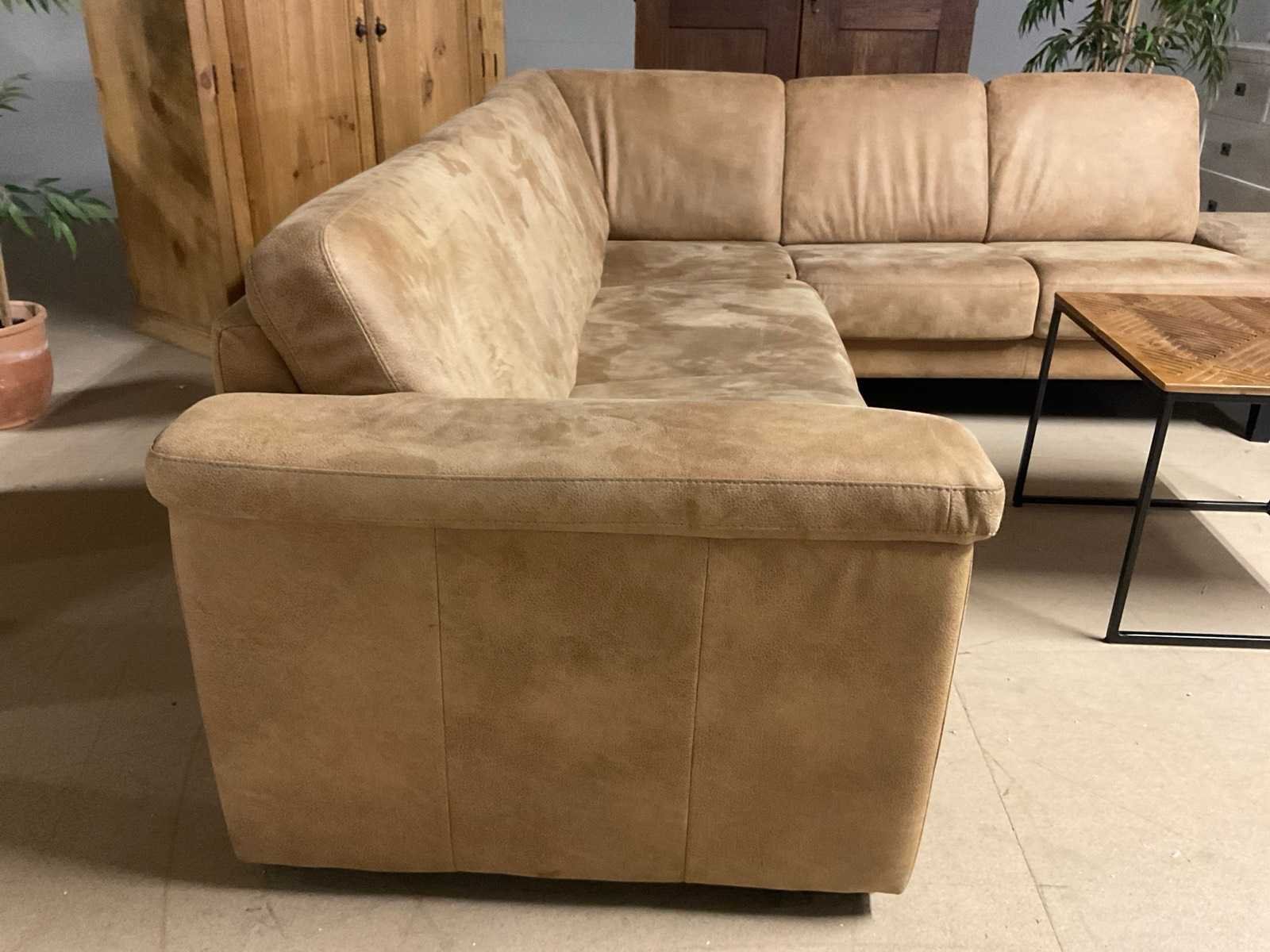 Hoekbank bestaat uit 4-delen. Model: Savan Kleur: Beige/bruin Lengte: 255cm Breedte: 266cm Hoogte: 80cm Zithoogte: 42cm Diepte: 55cm