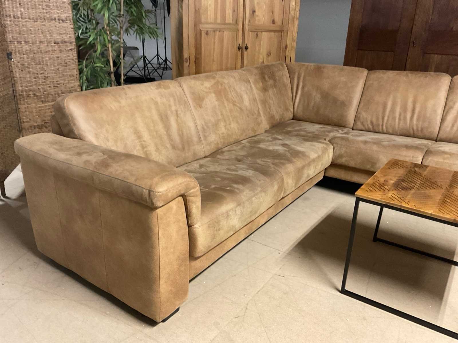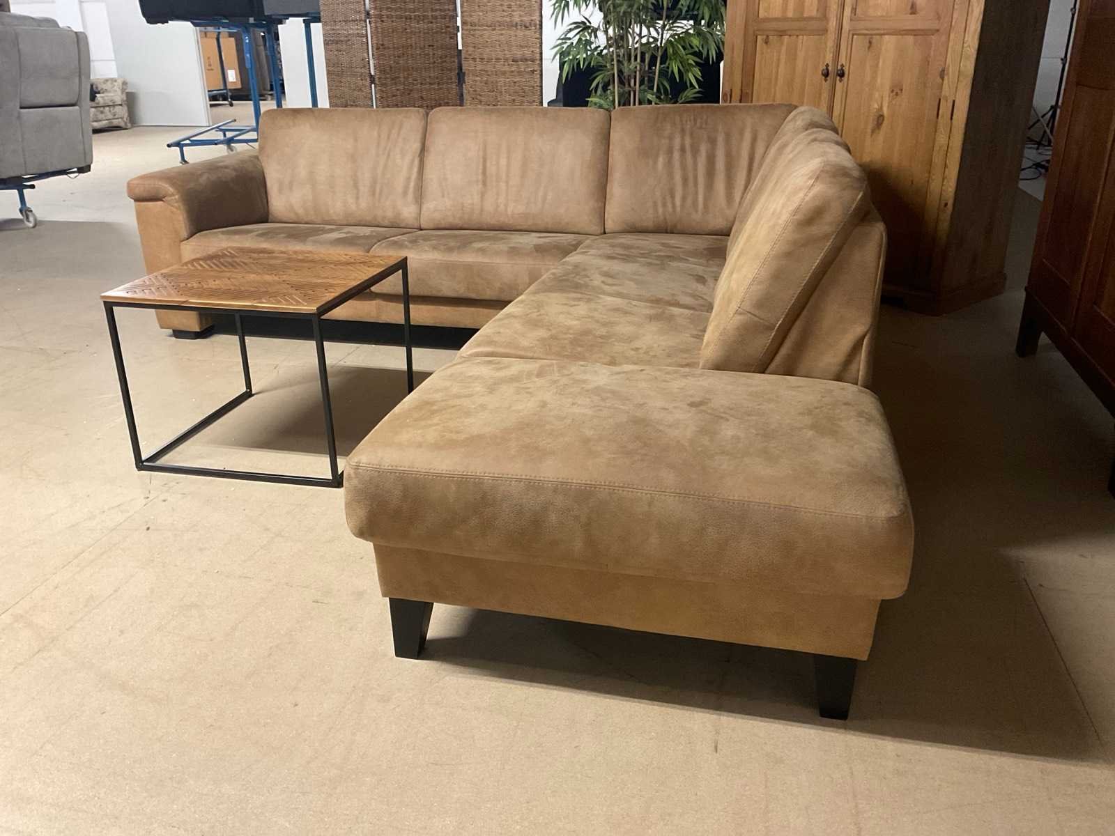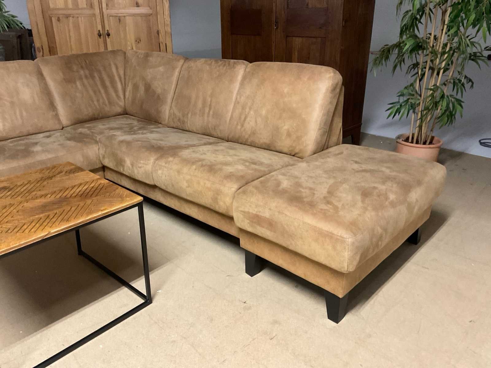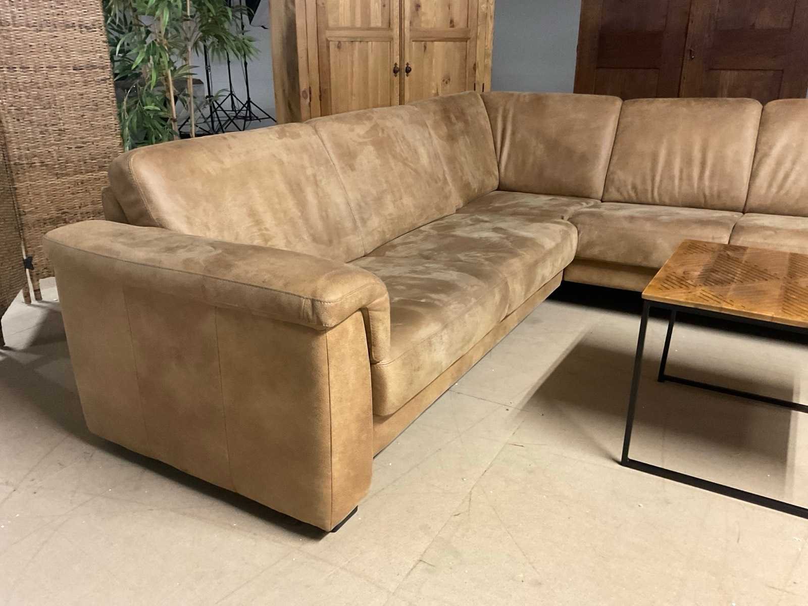 Hoekbank bestaat uit 4-delen. Model: Savan Kleur: Beige/bruin Lengte: 255cm Breedte: 266cm Hoogte: 80cm Zithoogte: 42cm Diepte: 55cm