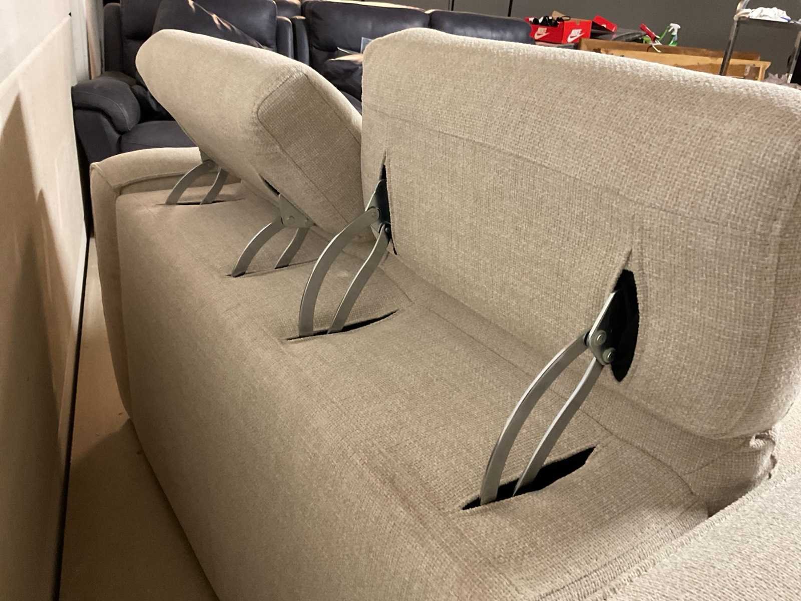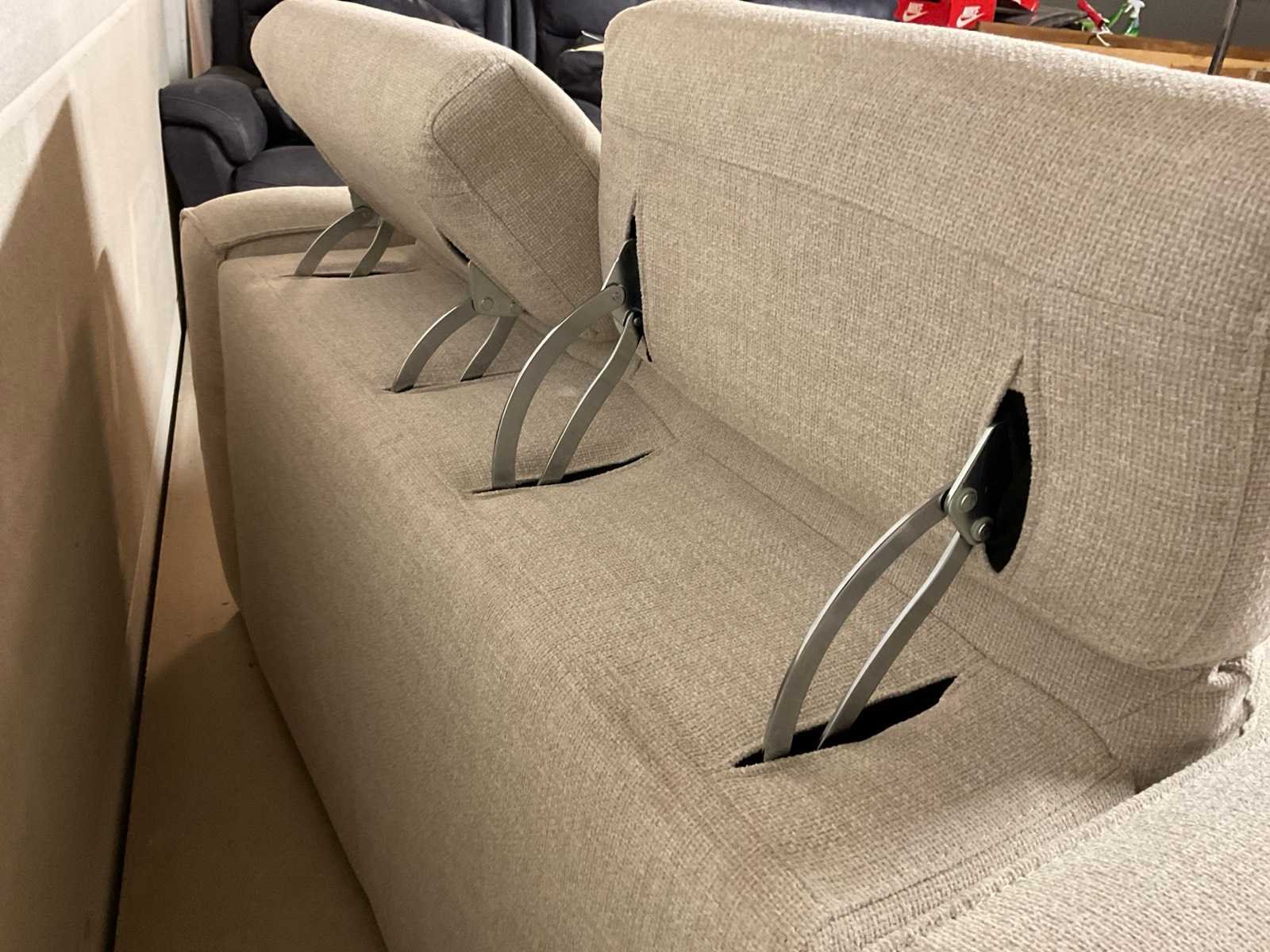 Verstelbare hoofdkussen. Model: Frica Kleur: Beige/wit Lengte: 110cm Breedte: 160cm Hoogte: 77cm Zithoogte: 48cm Diepte: 60cm Materiaal: Stof