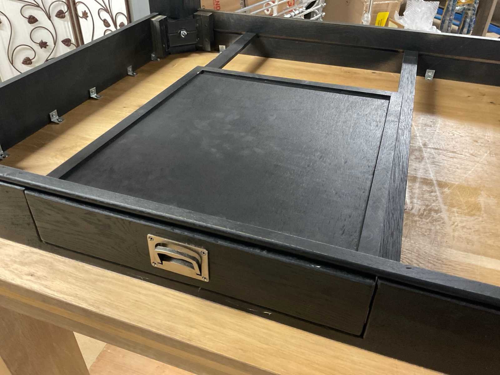 Met 2 lades. Model: Dover Lengte: 100cm Breedte: 220cm Hoogte: 76cm Materiaal: Hout