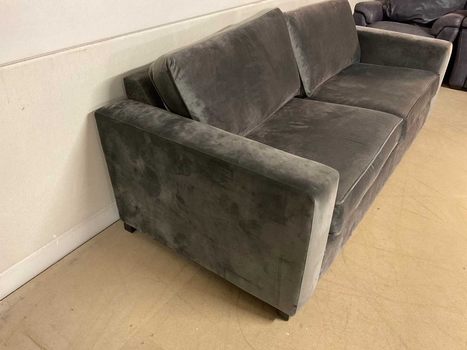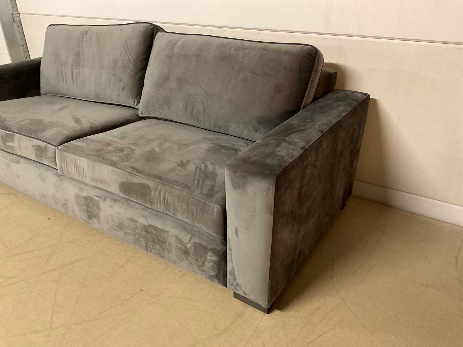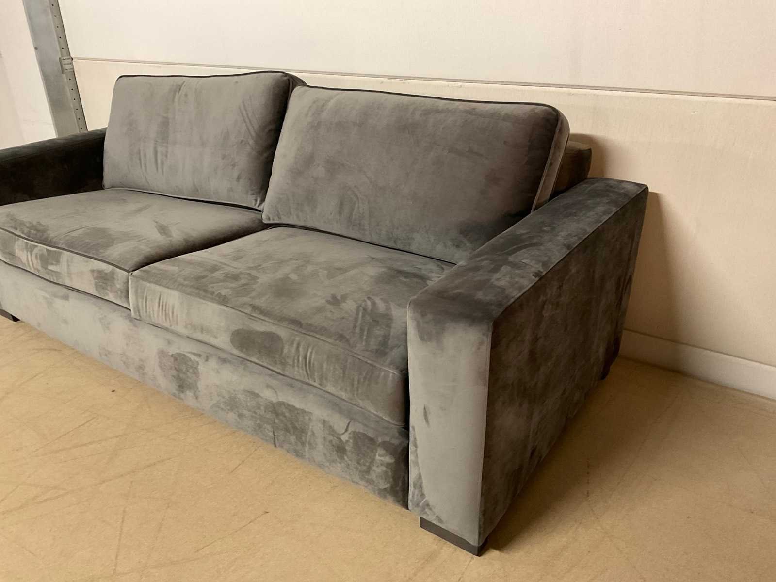 Model: Buhla Kleur: Grijs Lengte: 100cm Breedte: 223cm Hoogte: 70cm Zithoogte: 47cm Diepte: 53cm Materiaal: Suède.