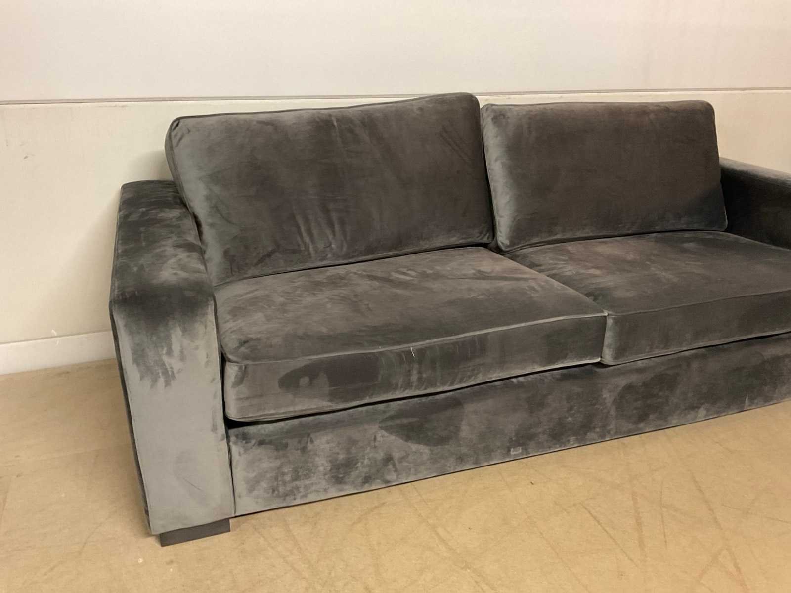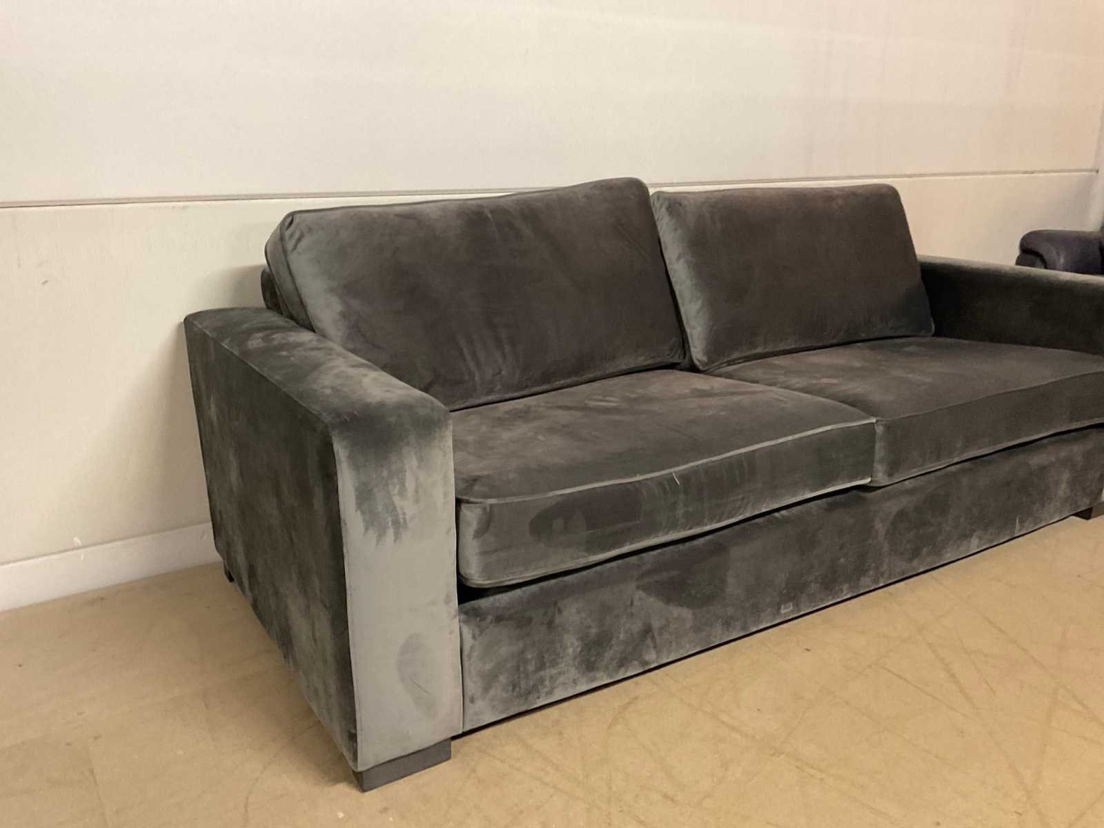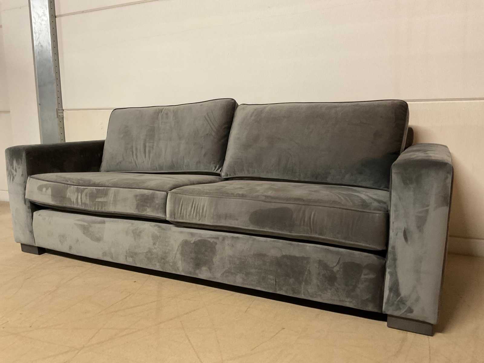 Model: Buhla Kleur: Grijs Lengte: 100cm Breedte: 223cm Hoogte: 70cm Zithoogte: 47cm Diepte: 53cm Materiaal: Suède.
