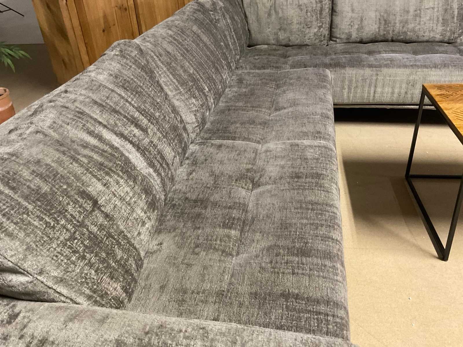 Hoekbank bestaat uit 2-delen. Model: Limur Kleur: Grijs Lengte: 310cm Breedte: 255cm Hoogte: 73cm Zithoogte: 42cm Diepte: 53cm Materiaal: Stof