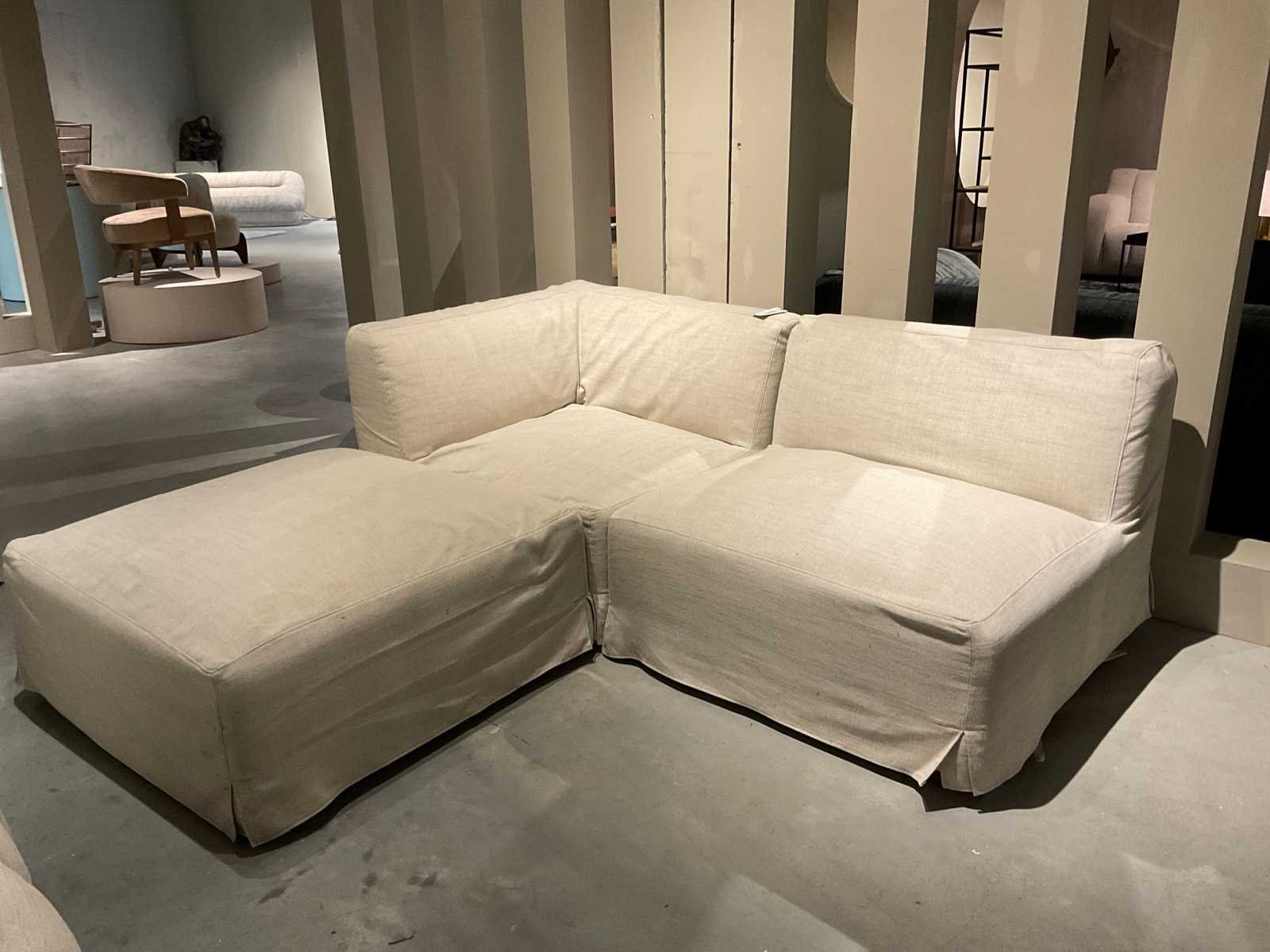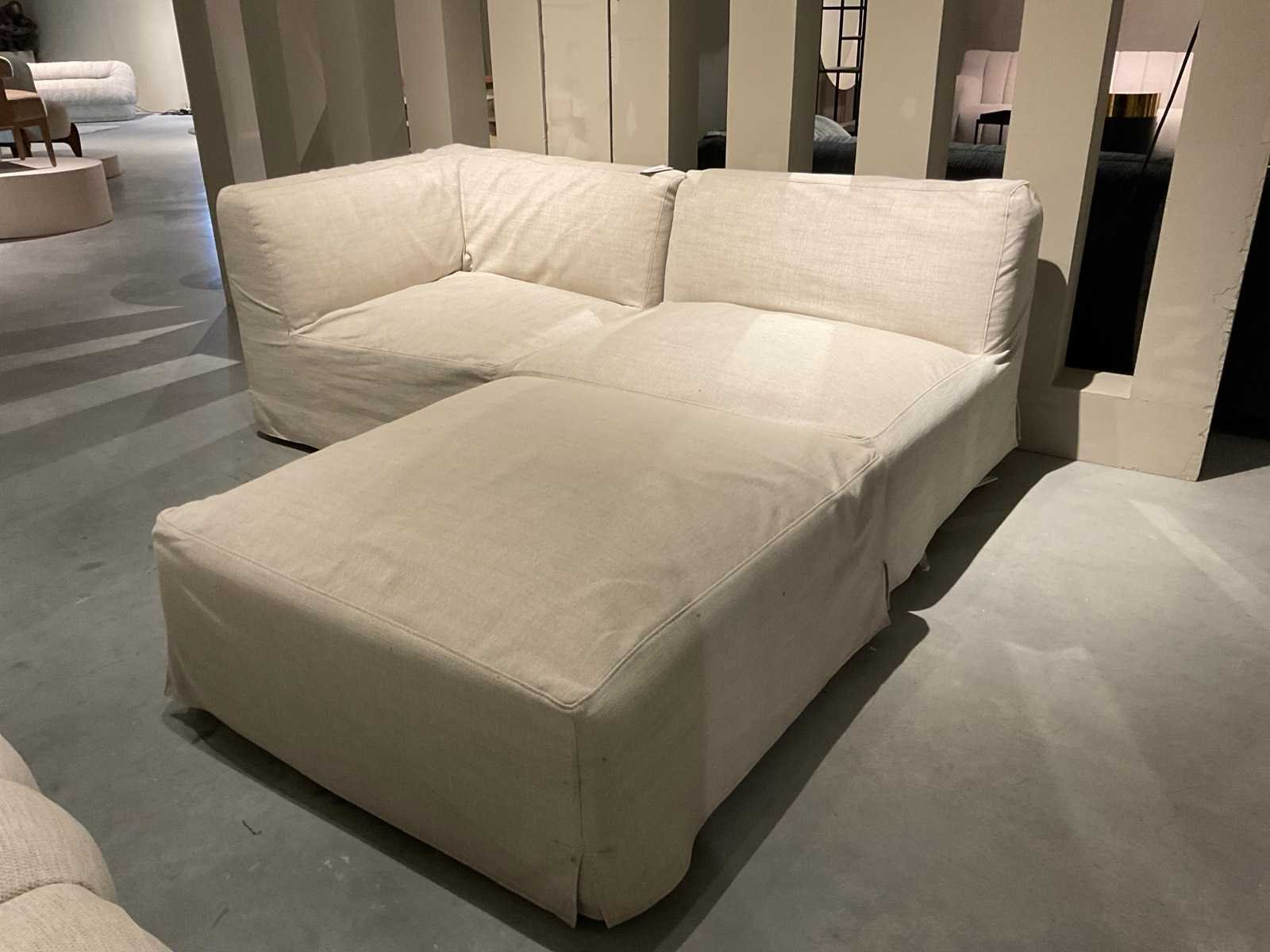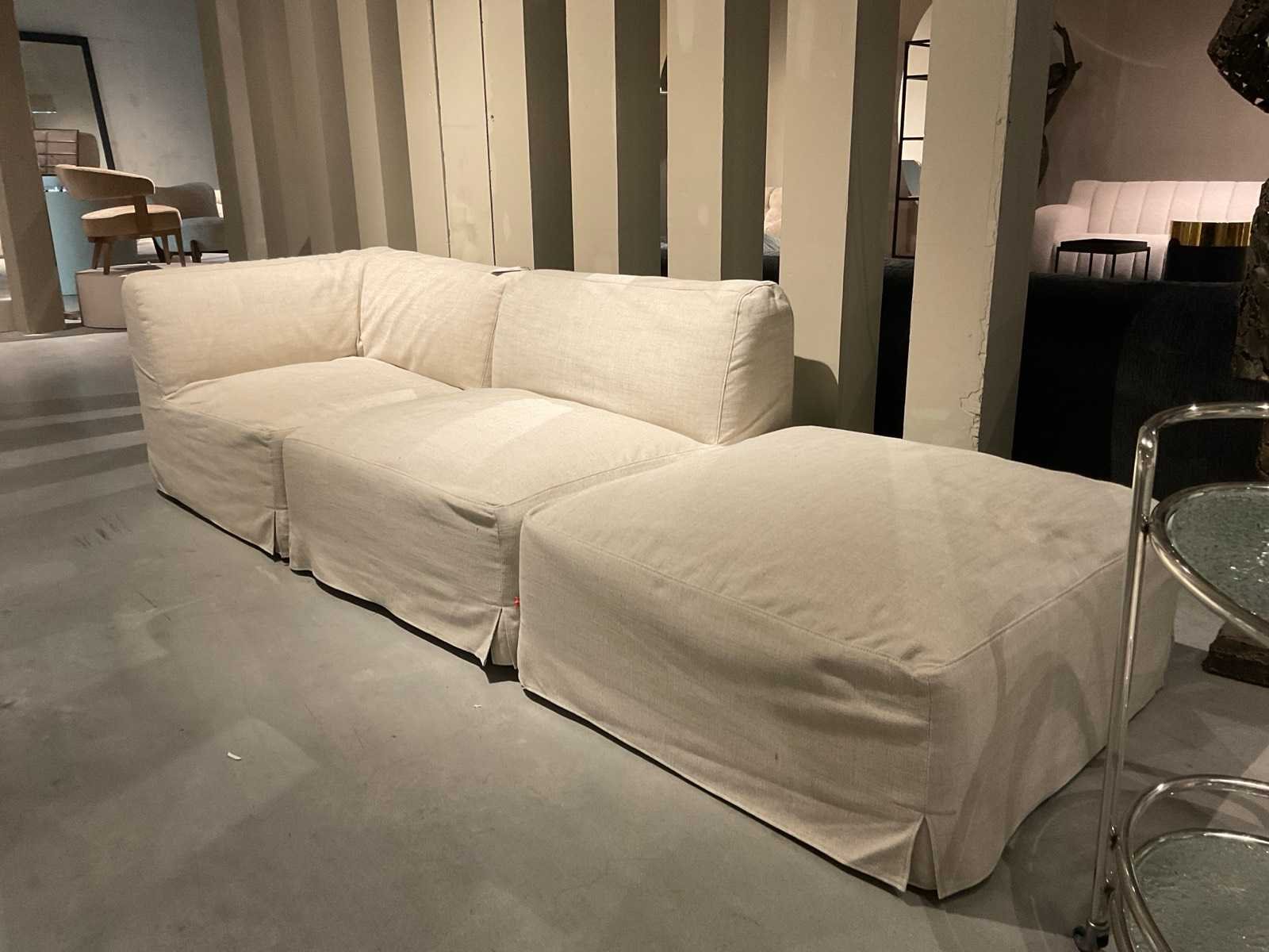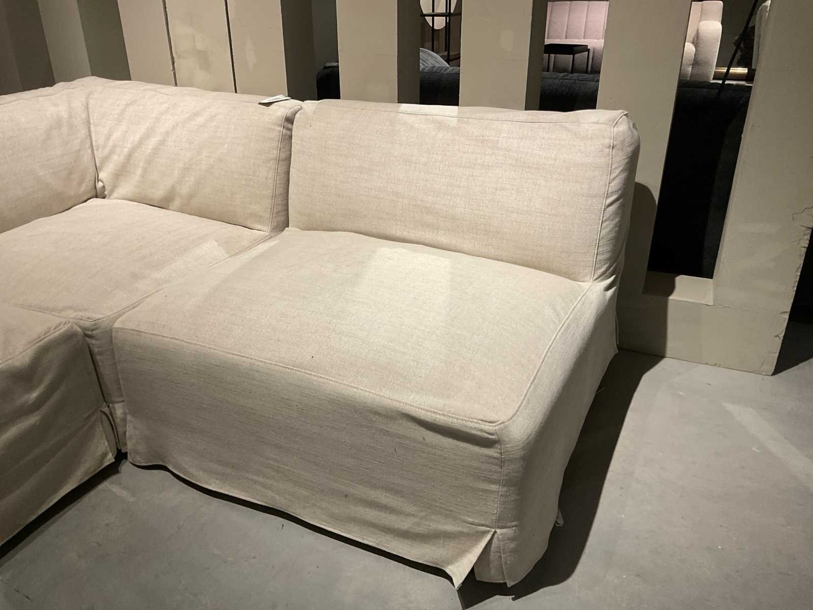 Bankstel bestaat uit verplaatsbare elementen. Afmetingen zijn van 1 element. Totaal 3 elementen. Model: Chillio Kleur: Beige Lengte: 100cm Breedte: 100cm Hoogte: 77cm Materiaal: Stof