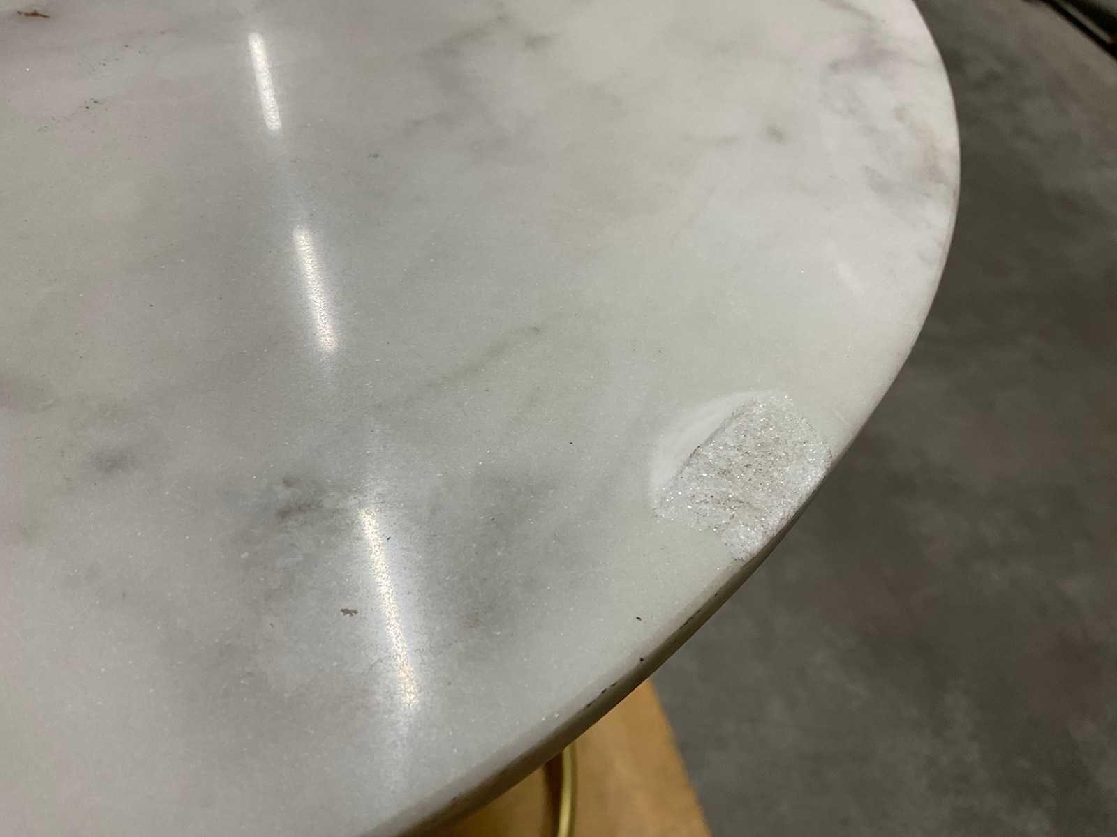 Marmeren blad Goudkleurig stalen onderstel Showroommodel Model: Divide Lengte: 27cm Breedte: 46cm Hoogte: 62cm