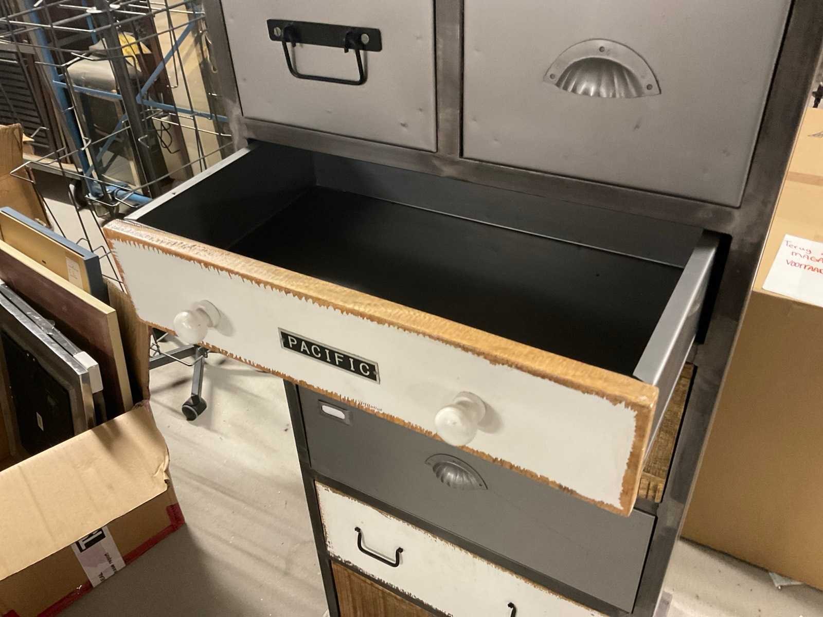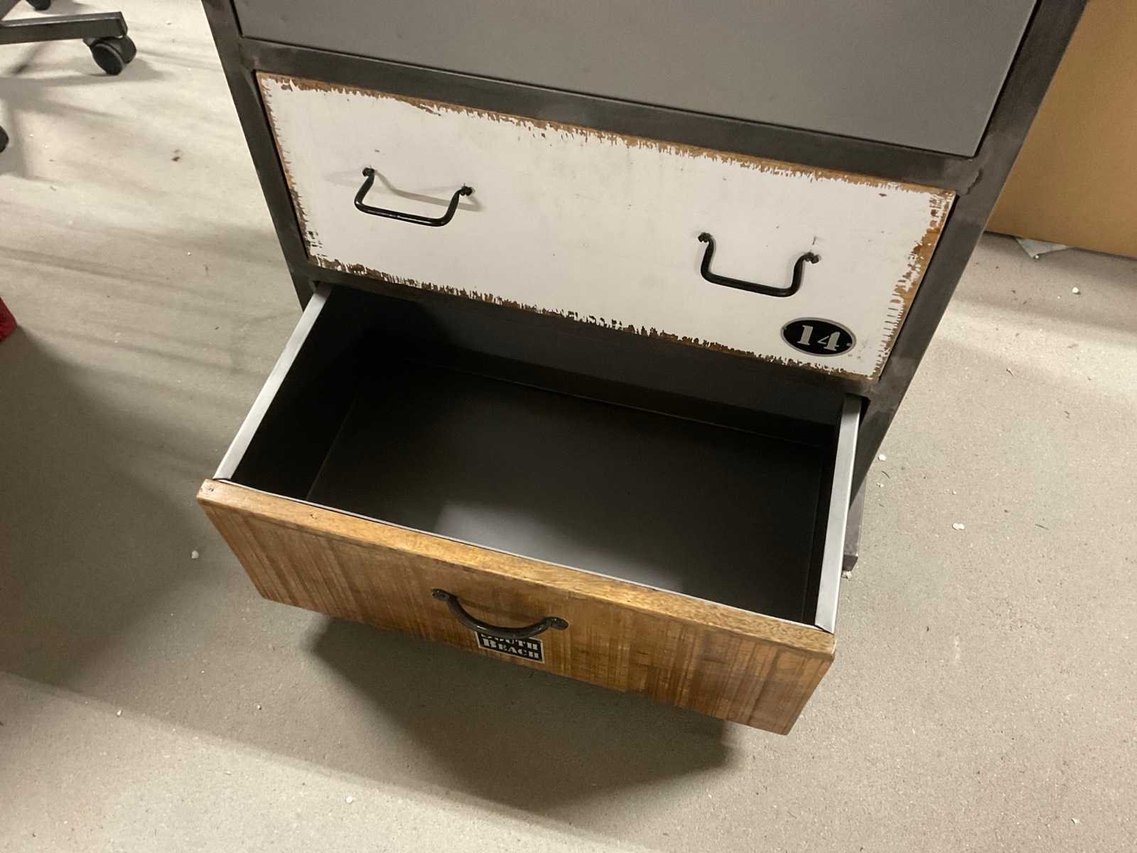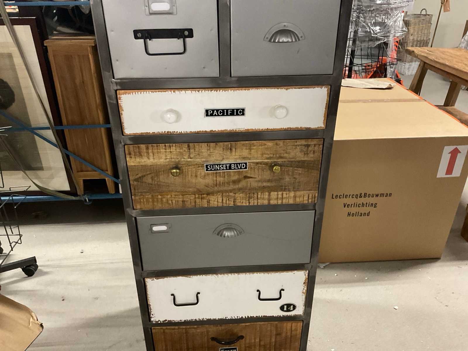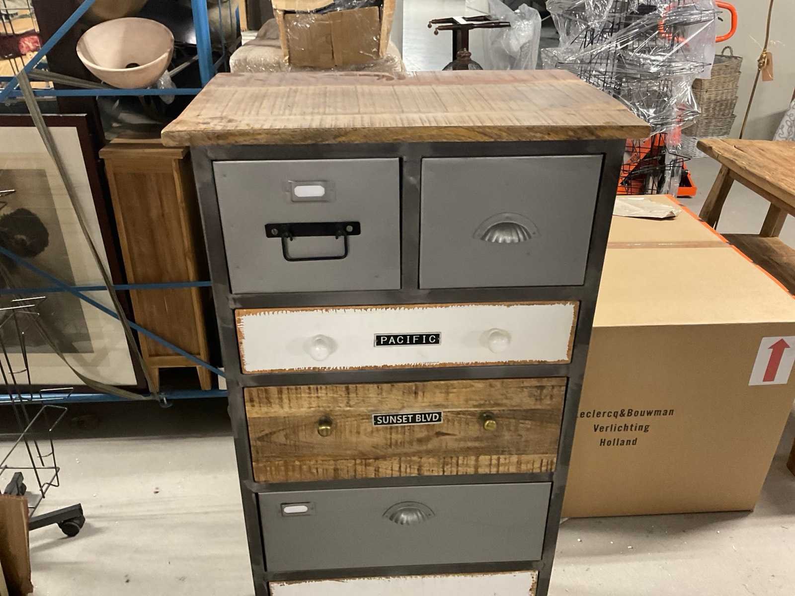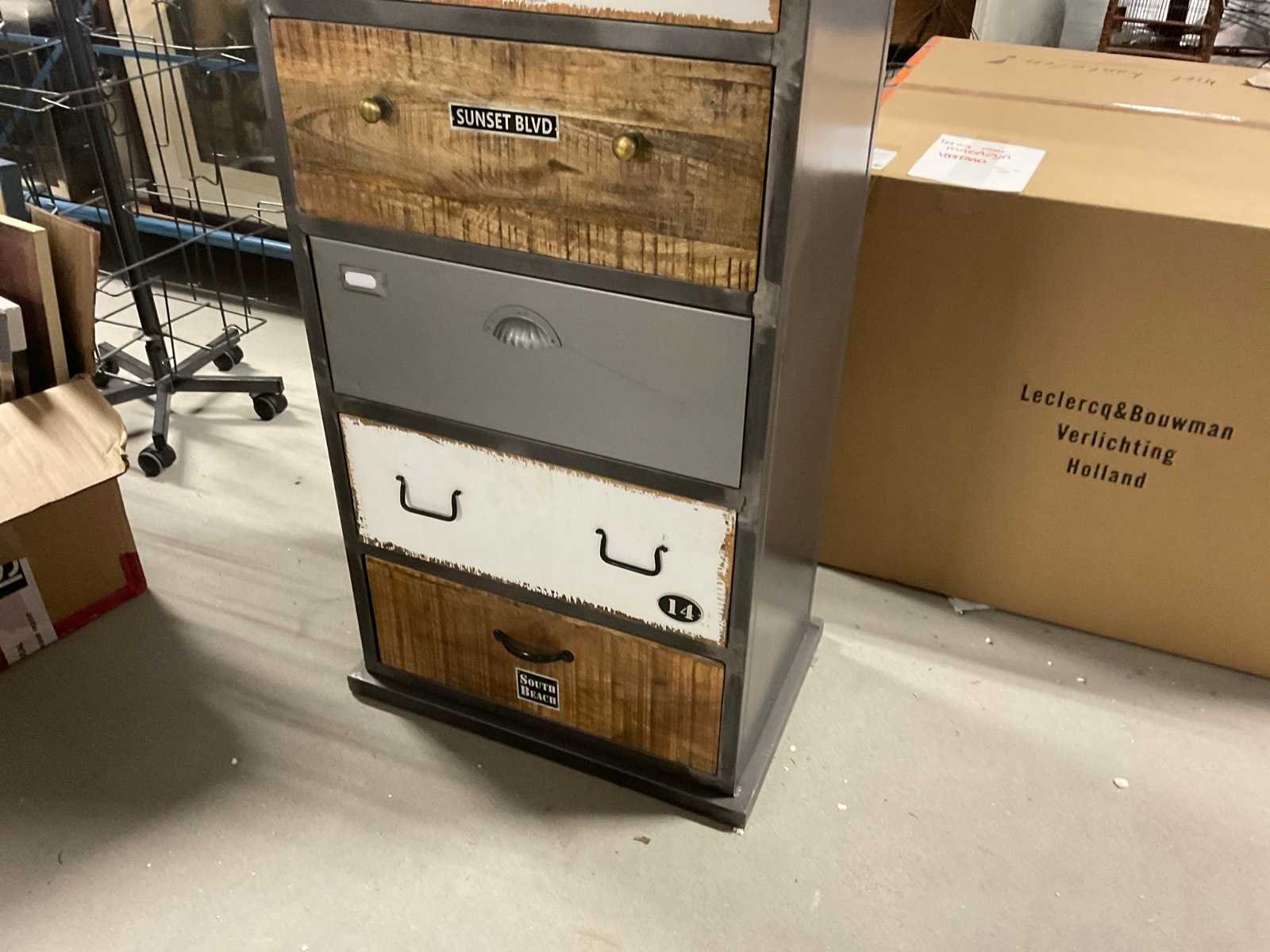 Witte lade klemt Type: Vintage Lengte: 39cm Breedte: 60cm Hoogte: 131cm Materiaal: IJzer/hout
