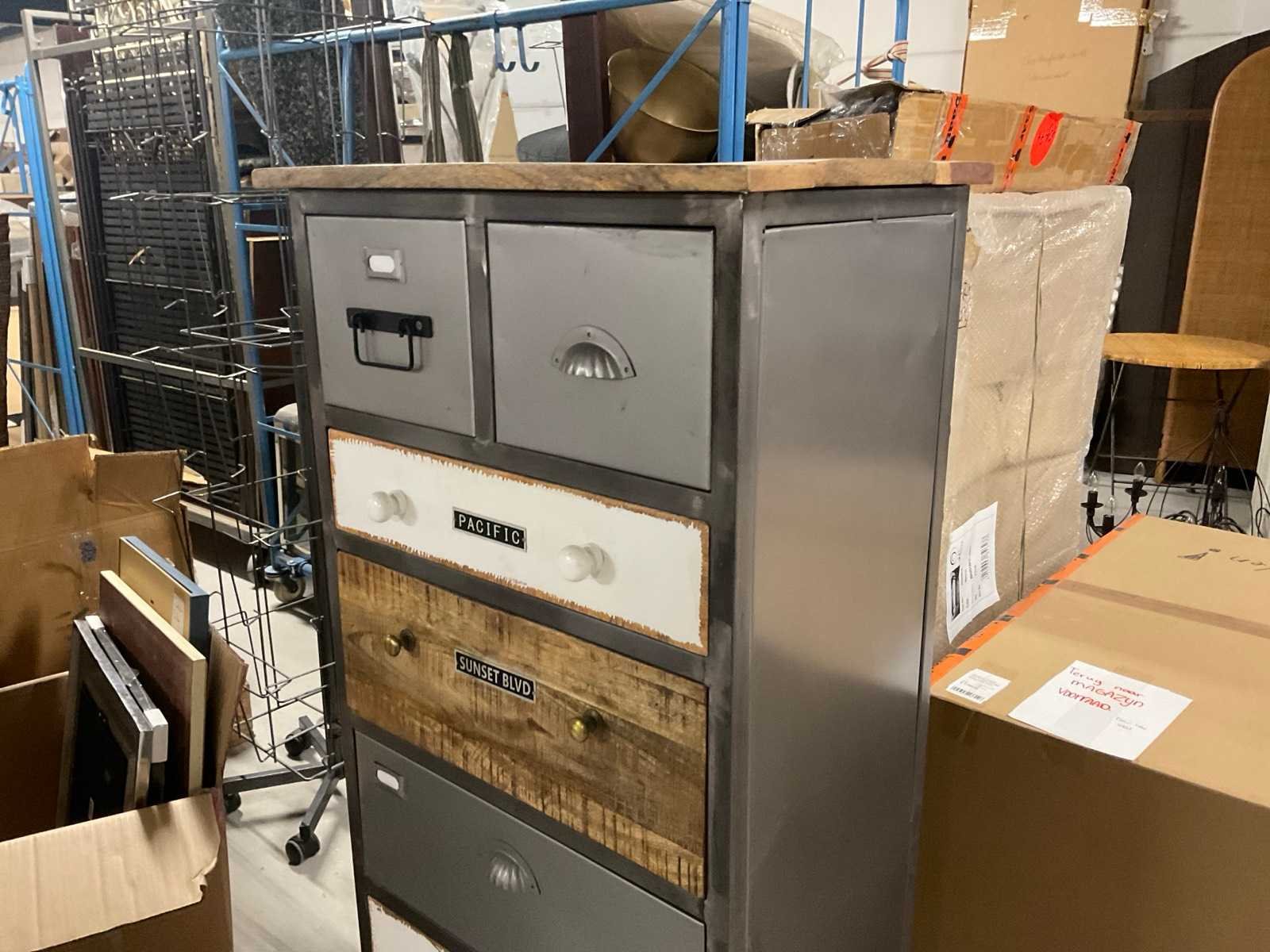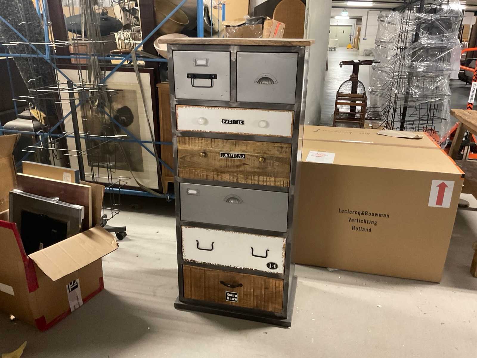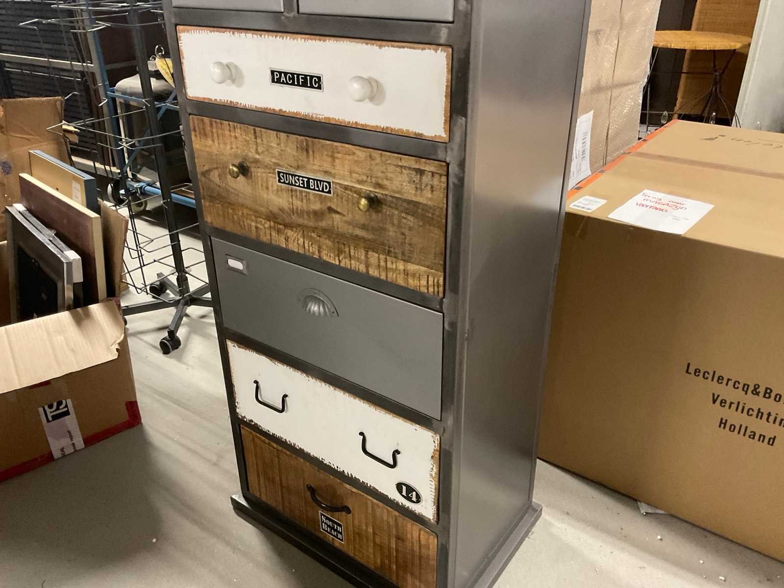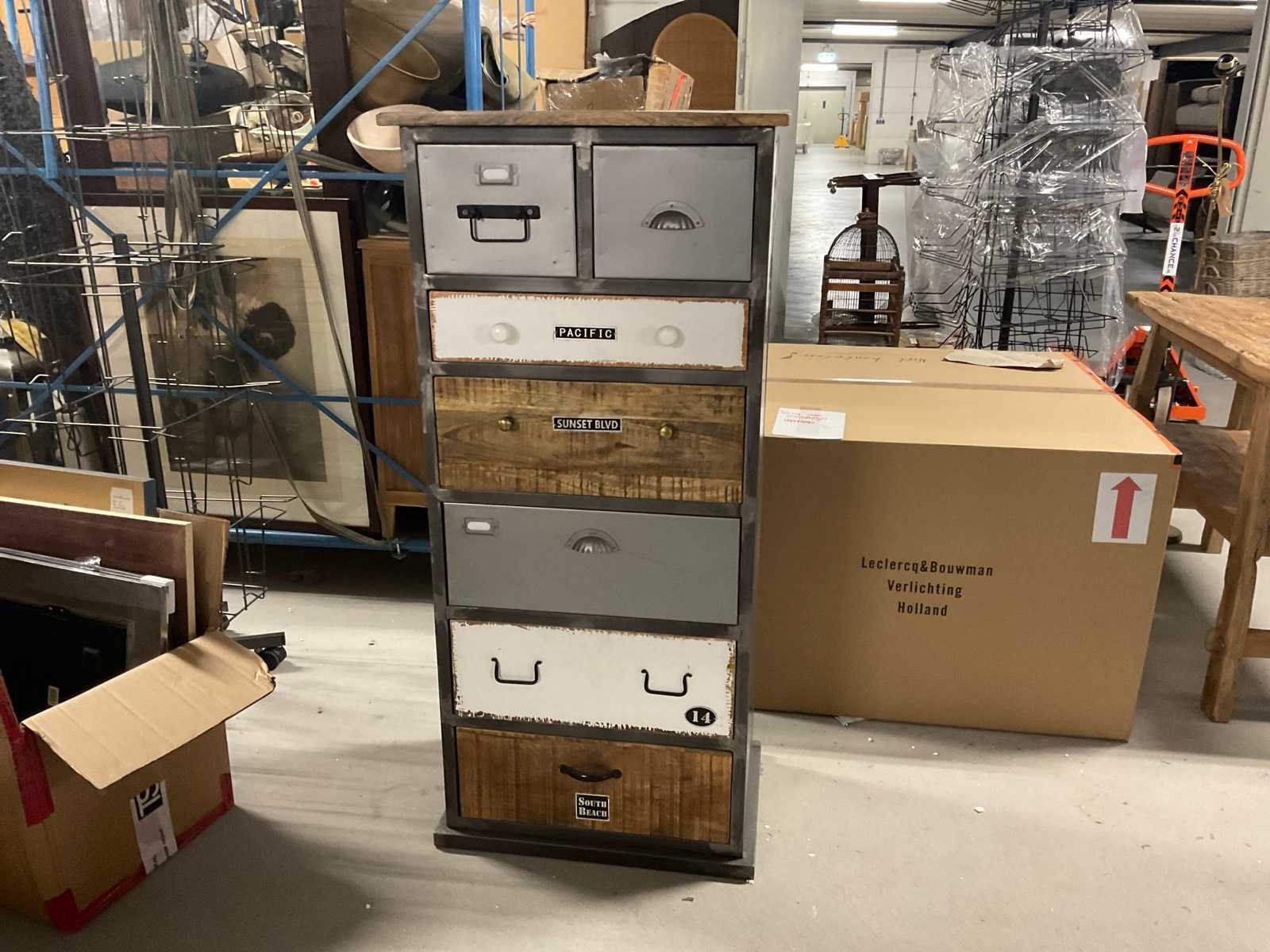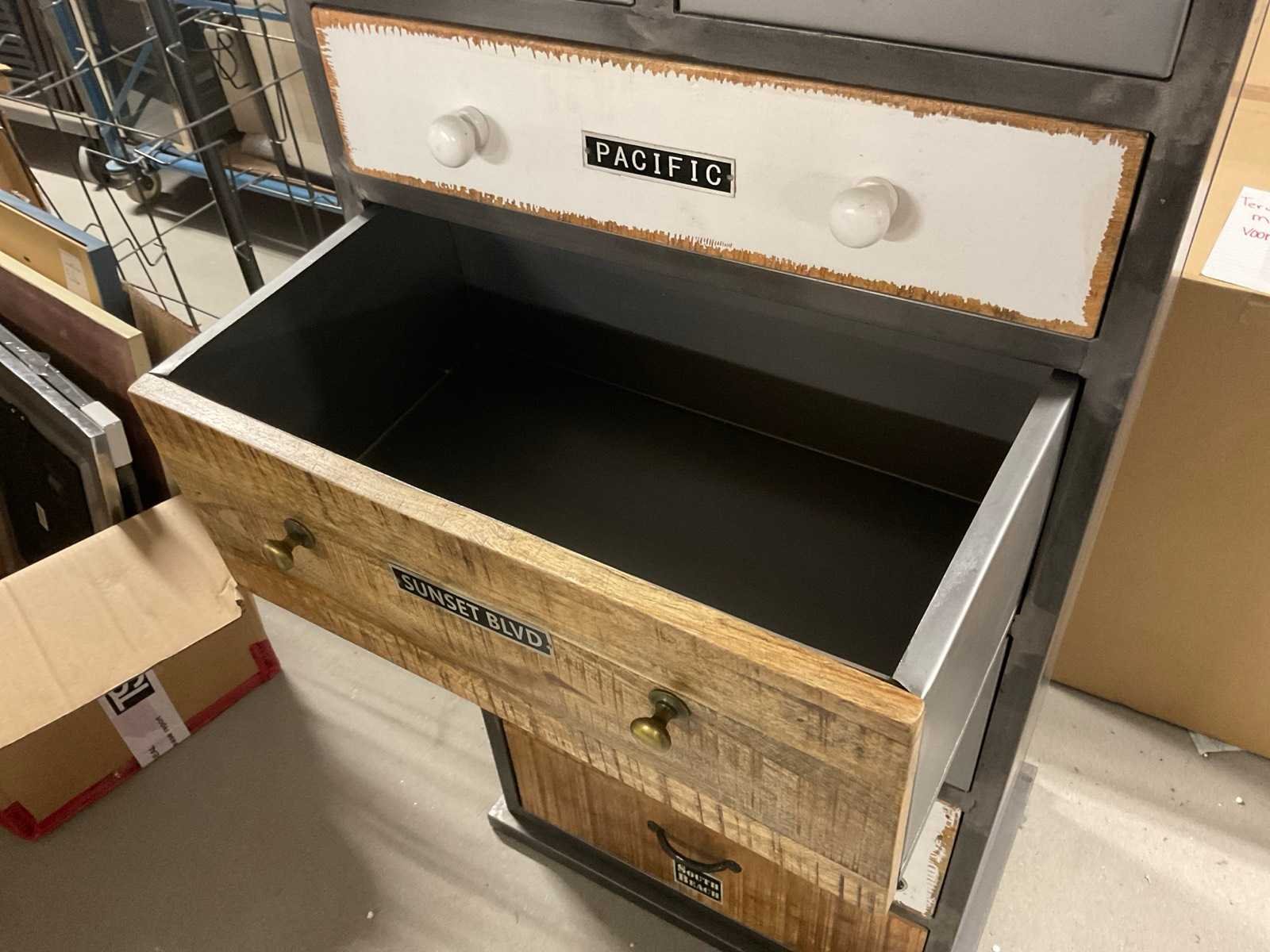 Witte lade klemt Type: Vintage Lengte: 39cm Breedte: 60cm Hoogte: 131cm Materiaal: IJzer/hout