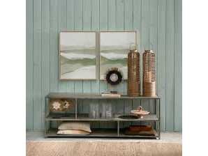 Staal en gerecycled eigenhout Merk: Rivièra Maison Model: Midtown Flatscreen Breedte: 180cm Hoogte: 65cm Diepte: 40cm