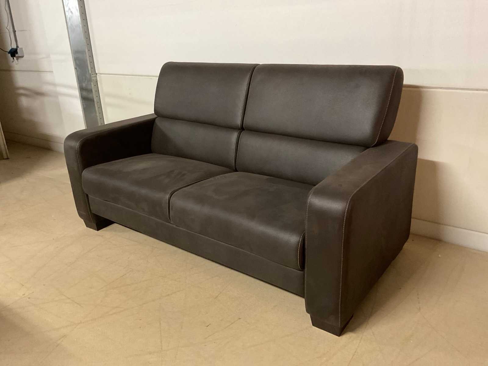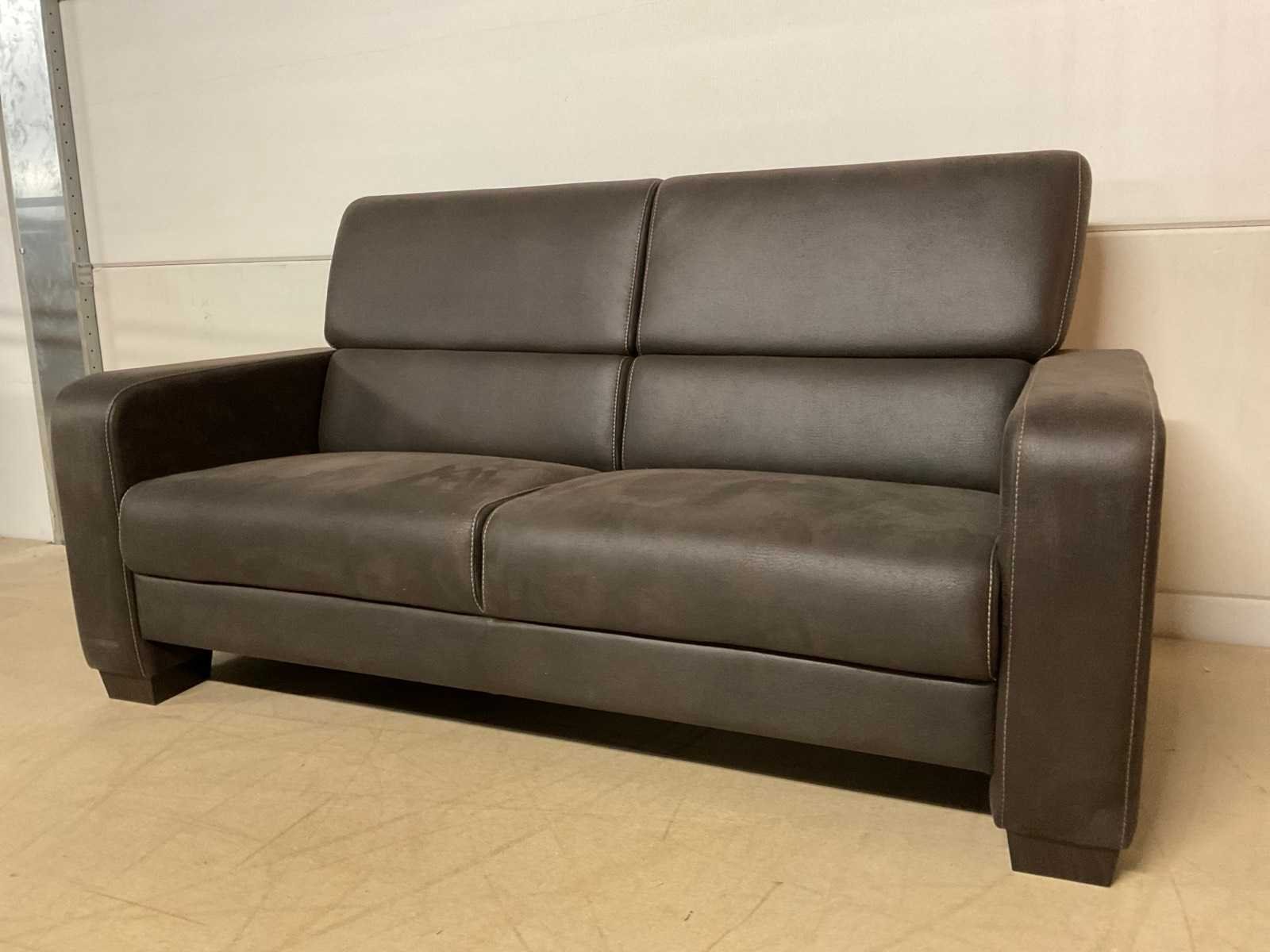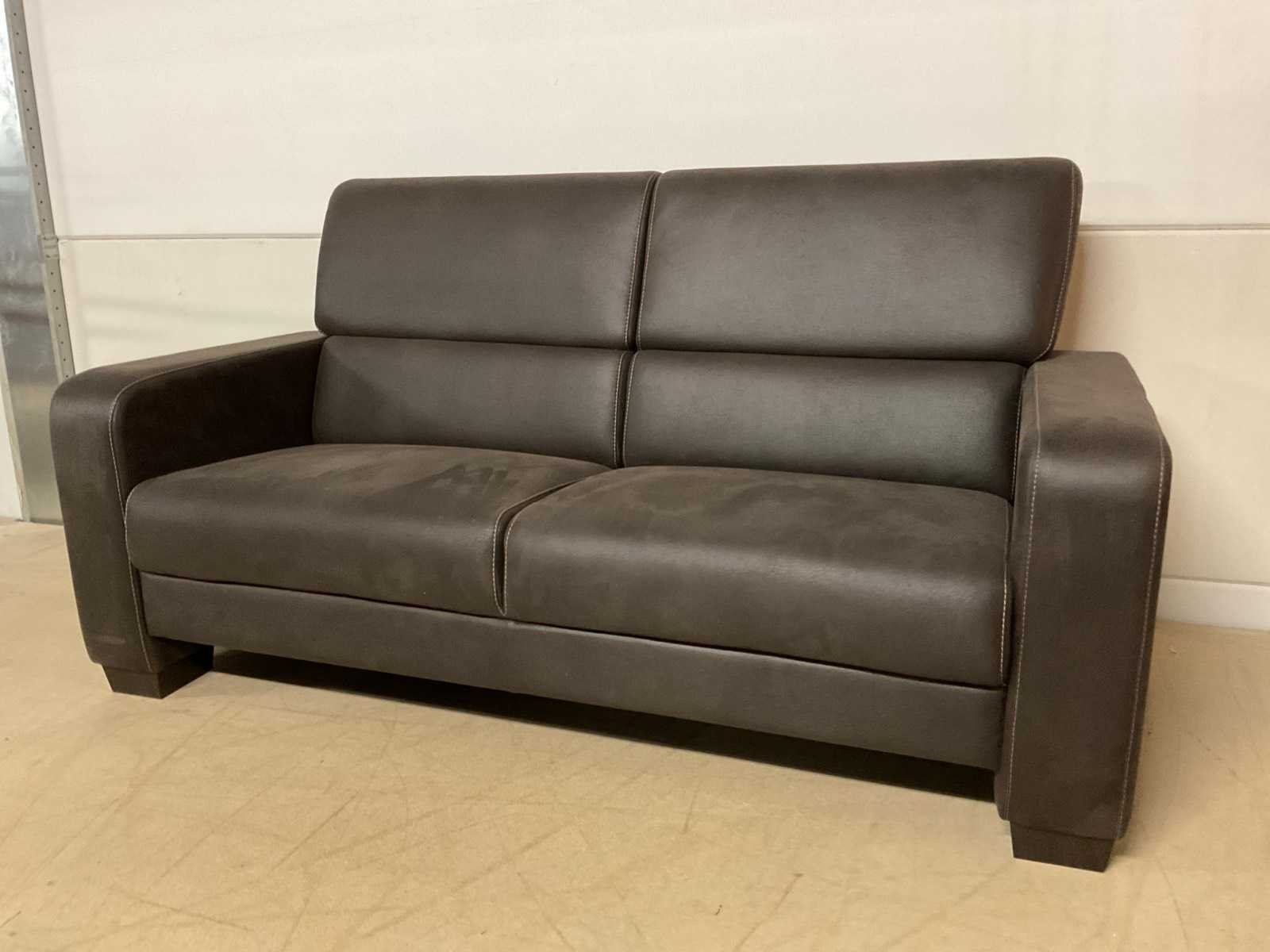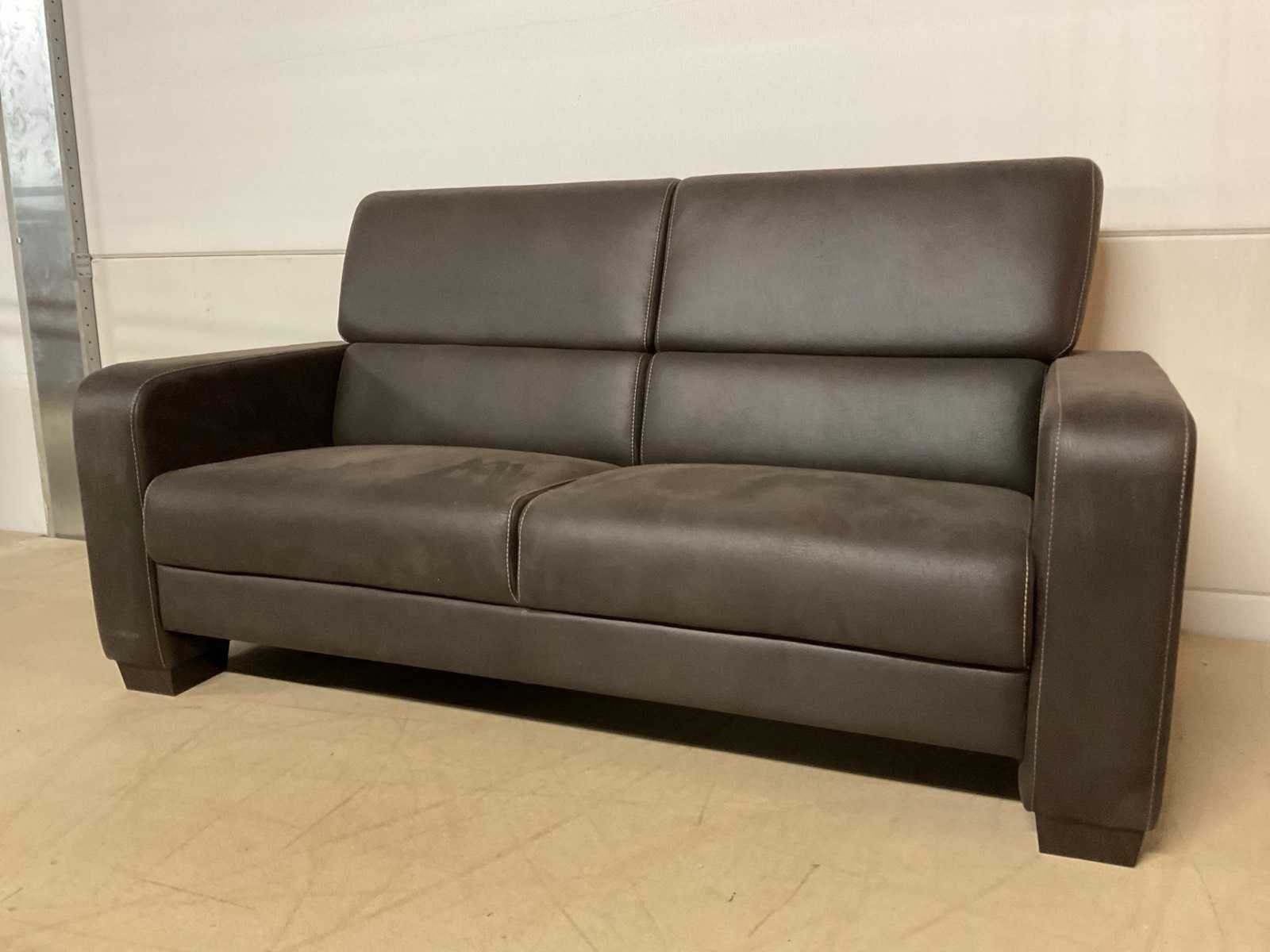 Model: Aneli Kleur: Donkerbruin/zwart Lengte: 85cm Breedte: 184cm Hoogte: 96cm Zithoogte: 45cm Diepte: 53cm Materiaal: Suède