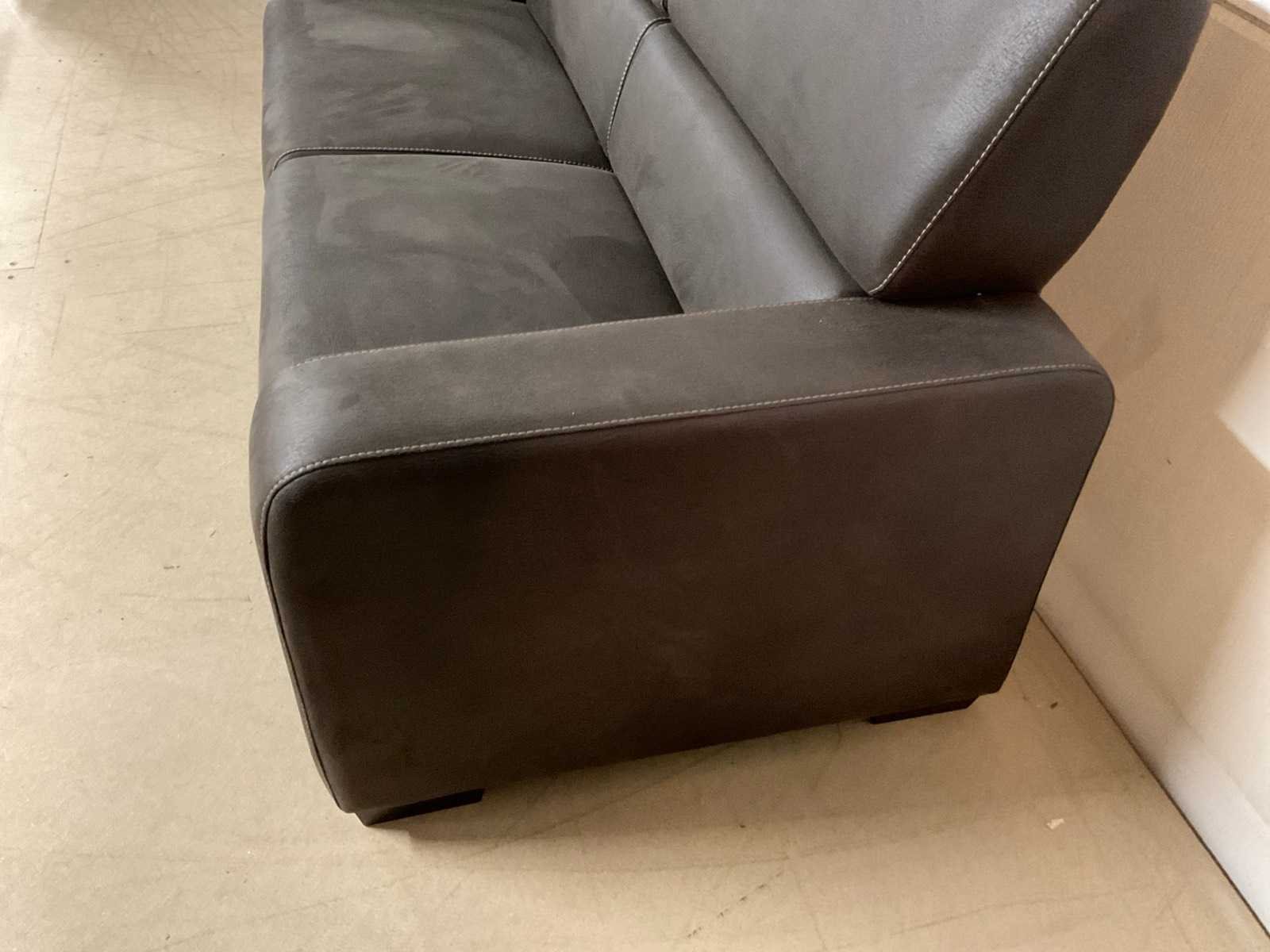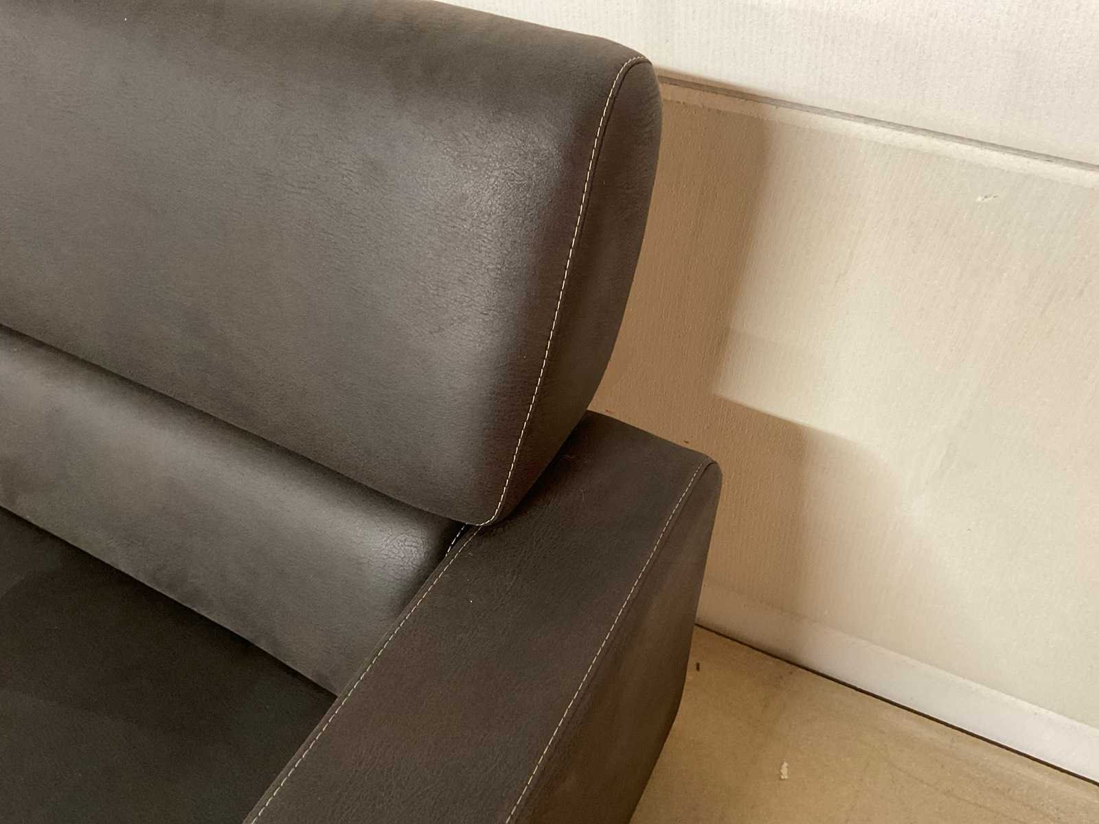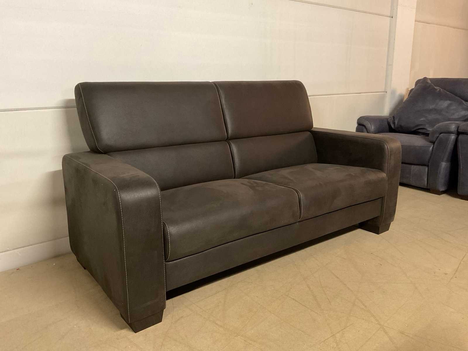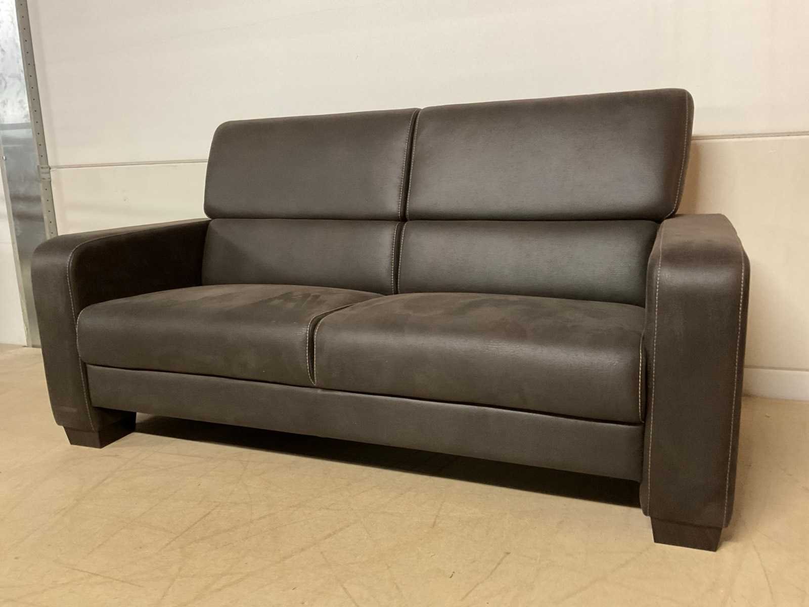 Model: Aneli Kleur: Donkerbruin/zwart Lengte: 85cm Breedte: 184cm Hoogte: 96cm Zithoogte: 45cm Diepte: 53cm Materiaal: Suède
