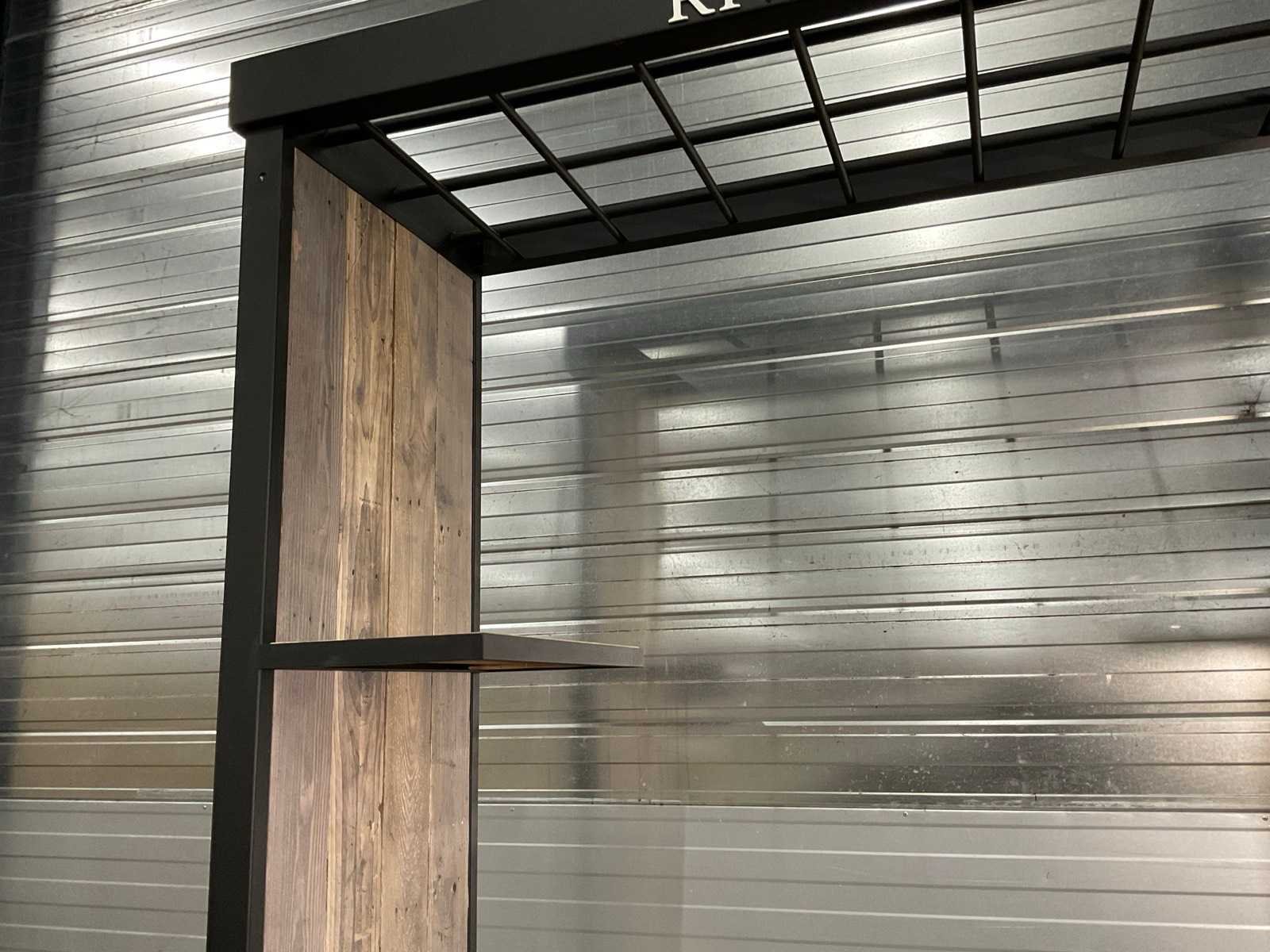 Degelijke en nette uitvoering. Display schikt niet over wieltjes. Voorzien van stroomkabel en stroomaansluiting, demontabel tot 4 lossen delen. Inclusief pallet. Merk: Rivièra Maison Afmeting l: 900mm Afmeting b: 2370mm Afmeting h: 2550mm Hout: true Staal: true