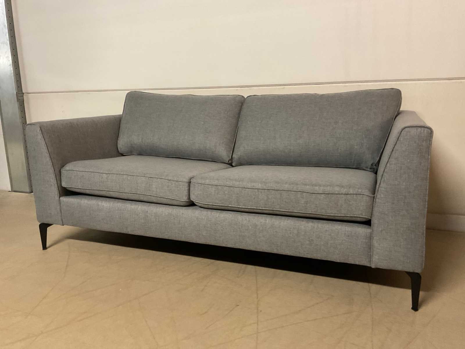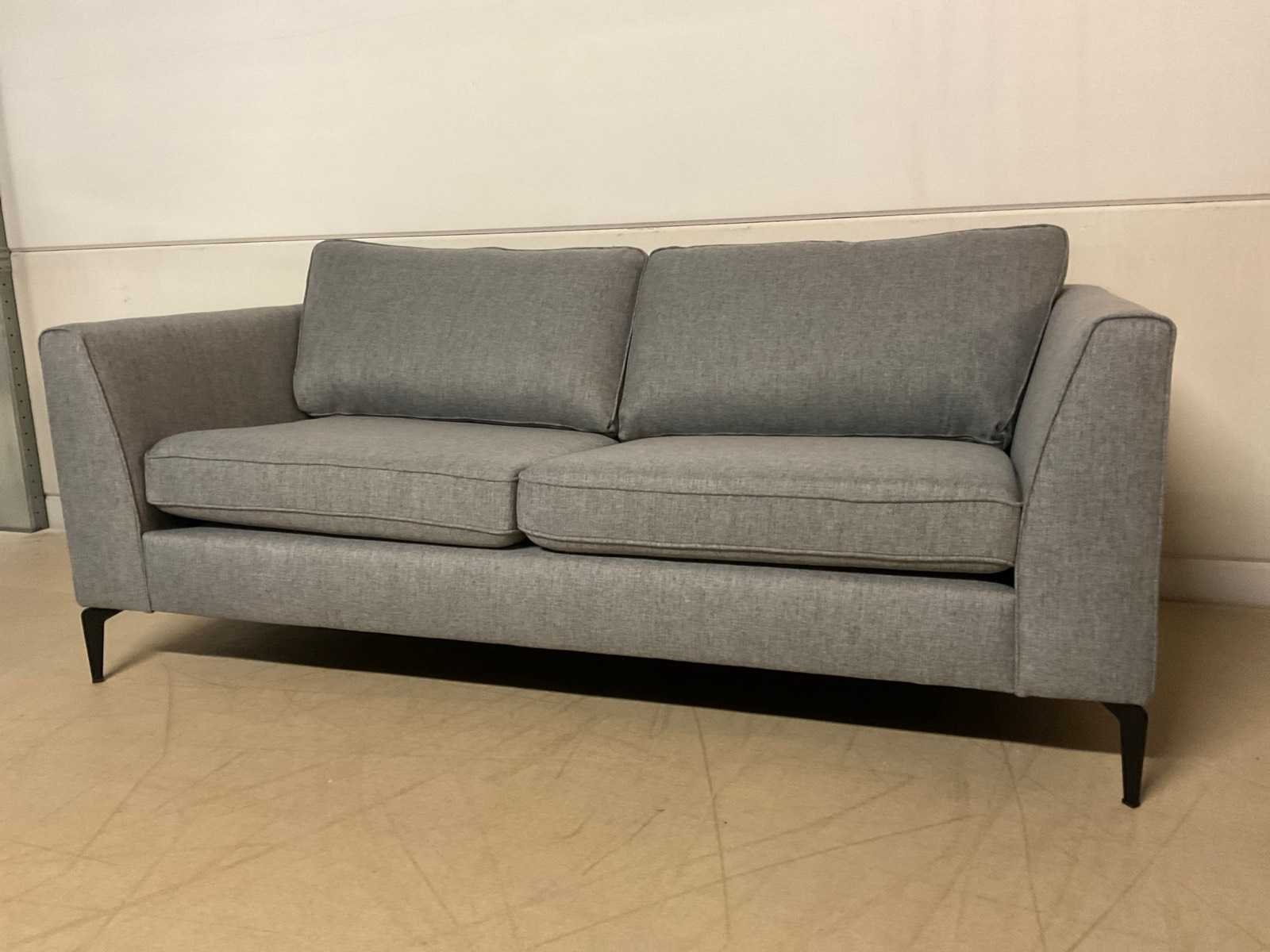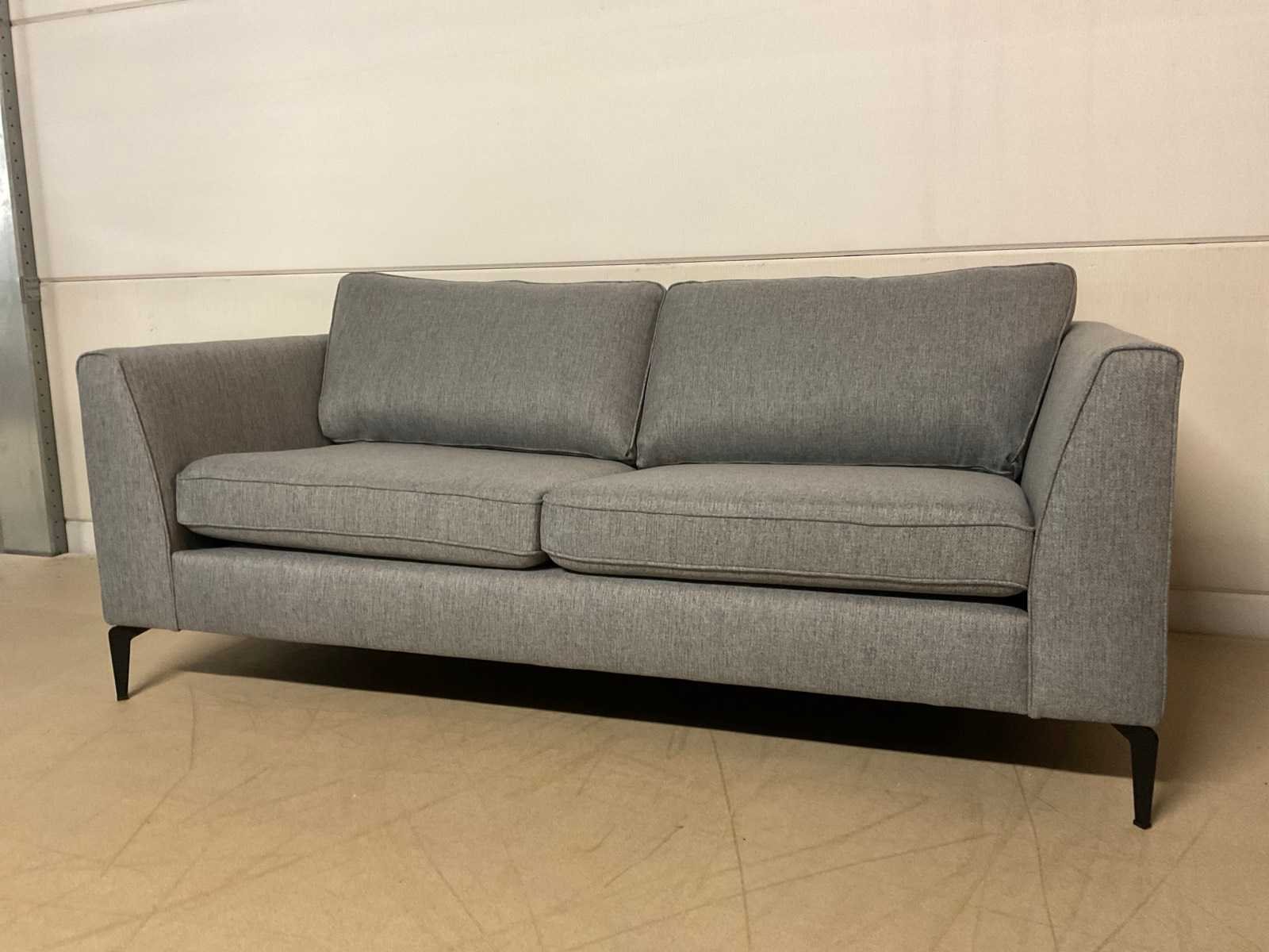 Model: Anivia Kleur: Blauw/grijs Lengte: 88cm Breedte: 185cm Hoogte: 68cm Zithoogte: 45cm Diepte: 51cm Materiaal: Stof