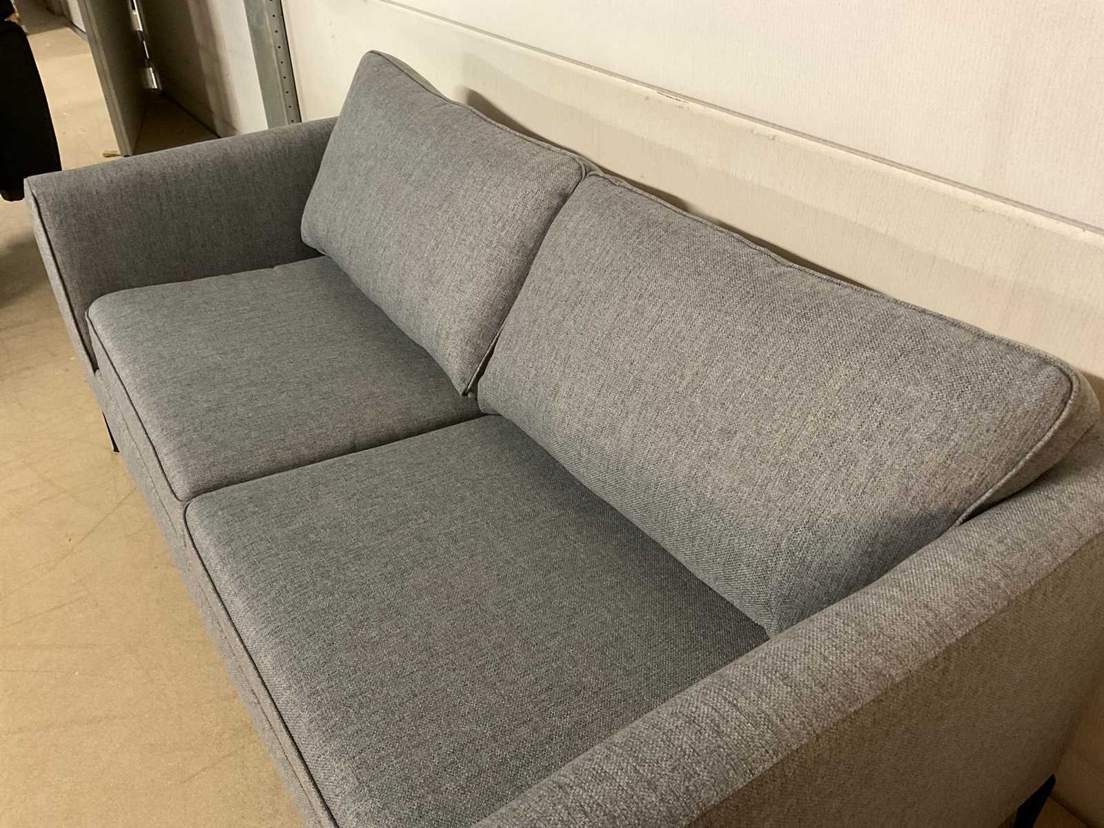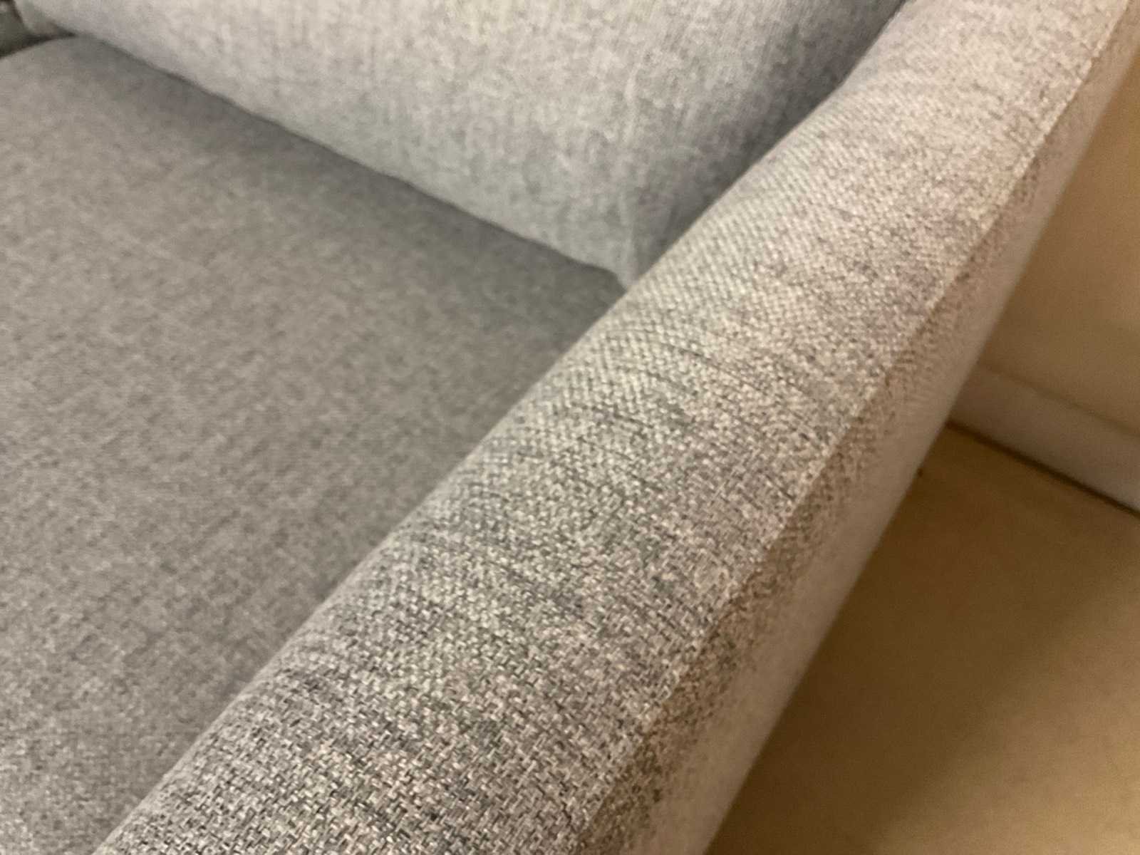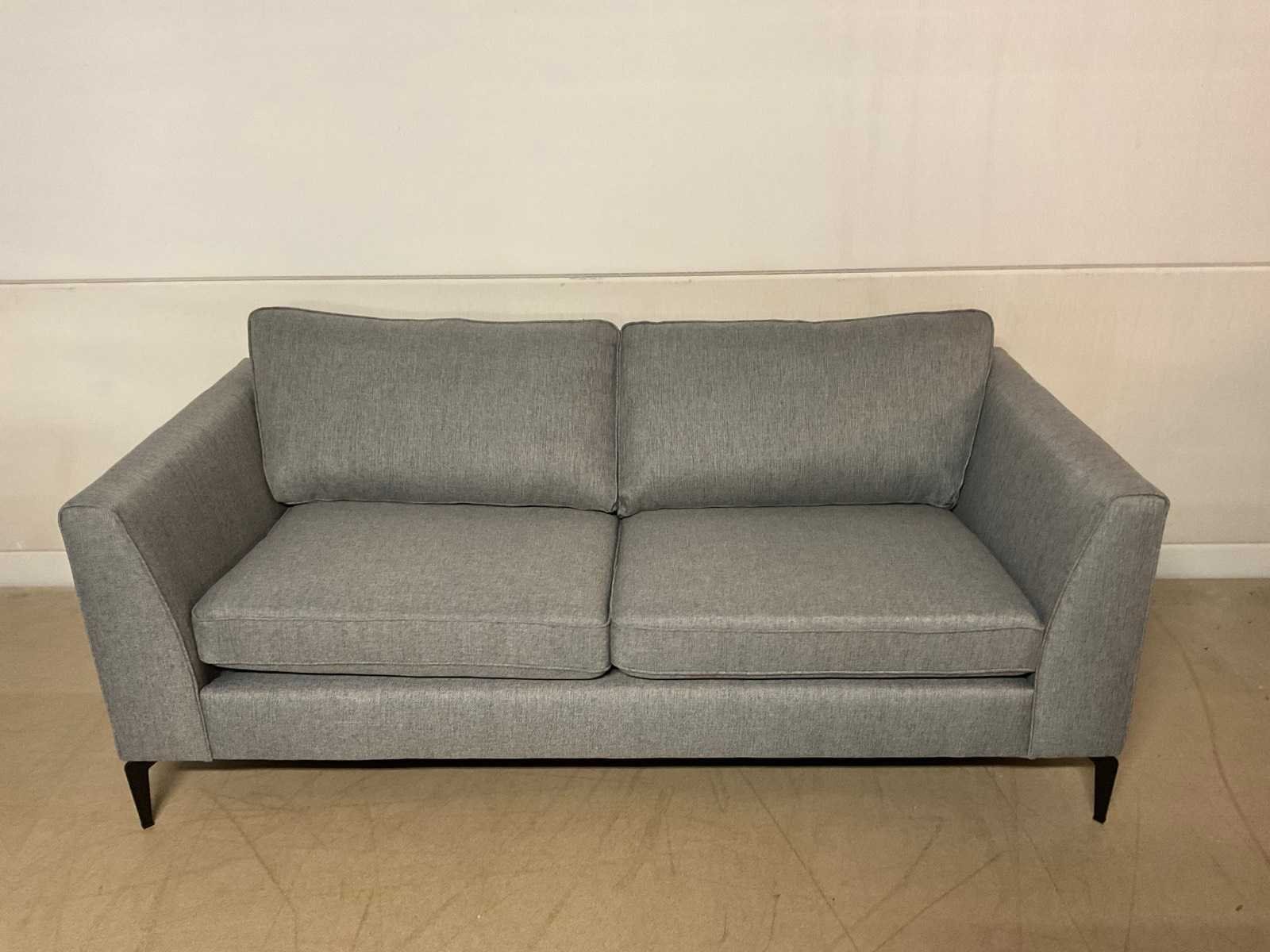 Model: Anivia Kleur: Blauw/grijs Lengte: 88cm Breedte: 185cm Hoogte: 68cm Zithoogte: 45cm Diepte: 51cm Materiaal: Stof