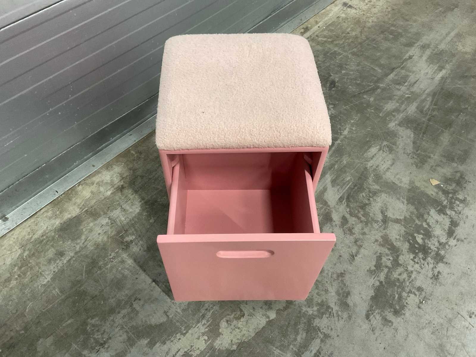 Met opbergruimte Kleur: Roze Lengte: 40cm Breedte: 40cm Hoogte: 50cm Materiaal: Stof/hout