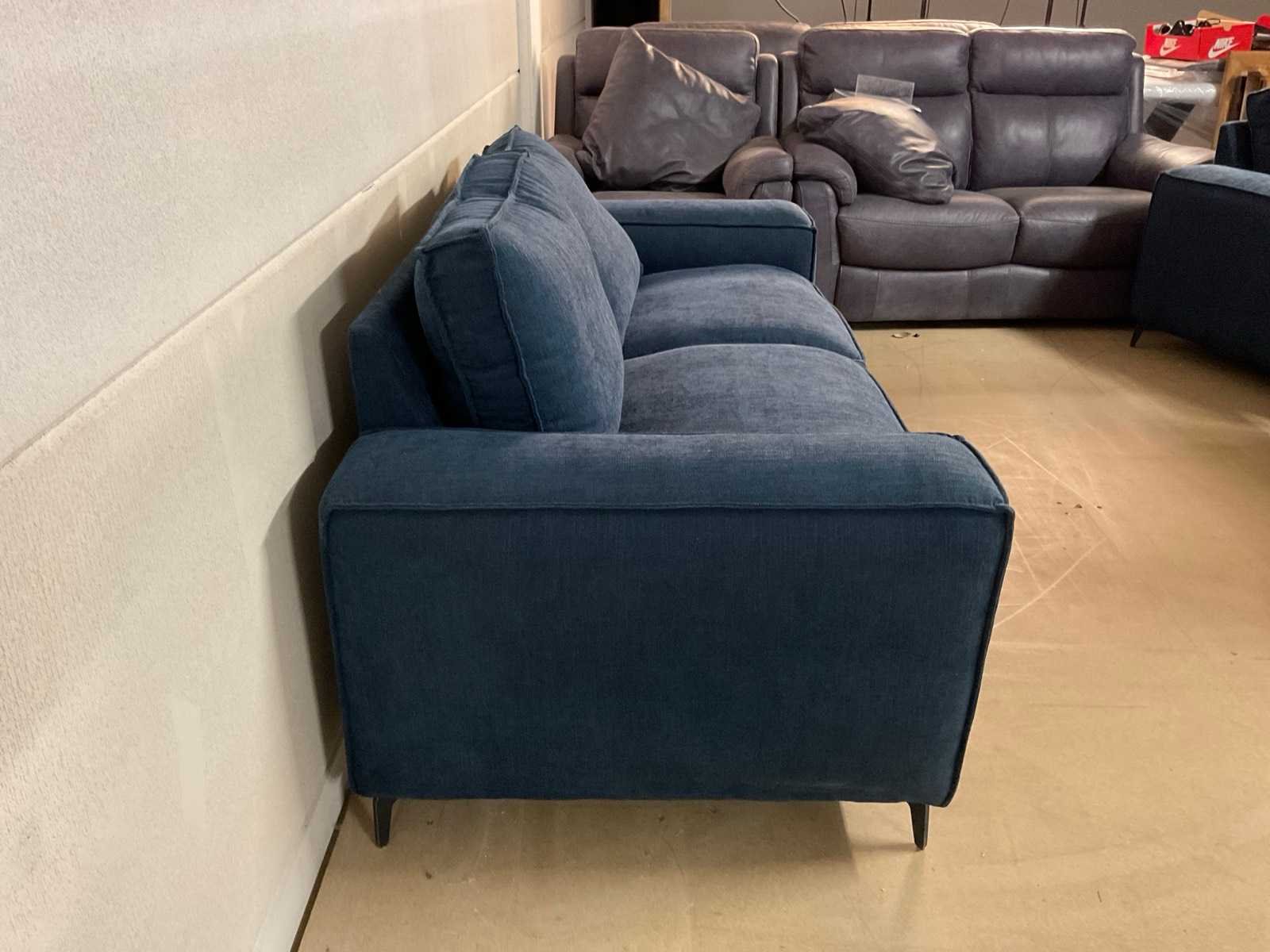 Model: Paris Kleur: Blauw Lengte: 85cm Breedte: 190cm Hoogte: 75cm Zithoogte: 48cm Diepte: 52cm Materiaal: Stof