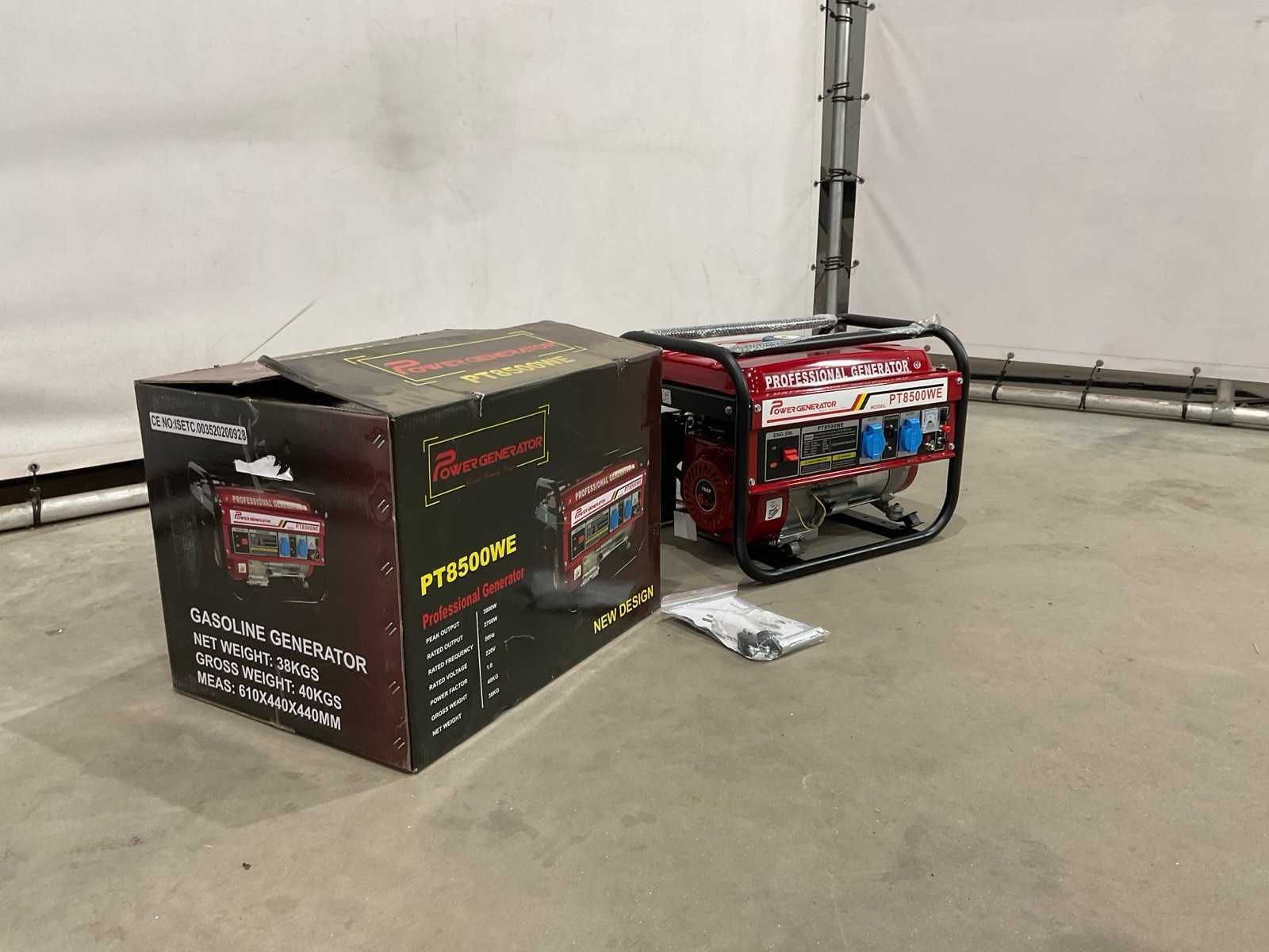 Ongebruikt Merk: Power generator Type: PT8500WE Benzine: true Totale afmeting L: 430mm Totale afmeting Breedte: 590mm Totale afmeting Hoogte: 450mm