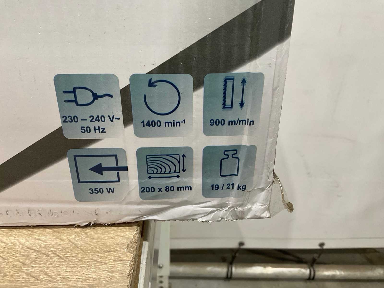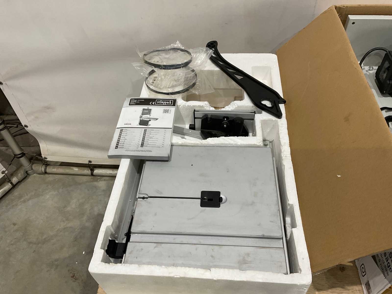 Tafelafmeting van 300 x 380 - 540 mm ; verstelbaar van 0 naar 45 graden; inductie motor 350 watt; zaag capaciteit tot 80 mm Merk: Scheppach Type: HBS30 Aansluiting: 220V