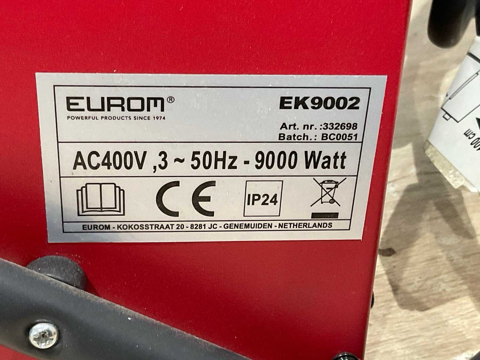 Merk: Eurom Type: EK 9002 Vermogen: 9000kW Ventilator: true Totale afmeting L: 360mm Totale afmeting Breedte: 360mm Totale afmeting Hoogte: 470mm Aansluiting: 380V