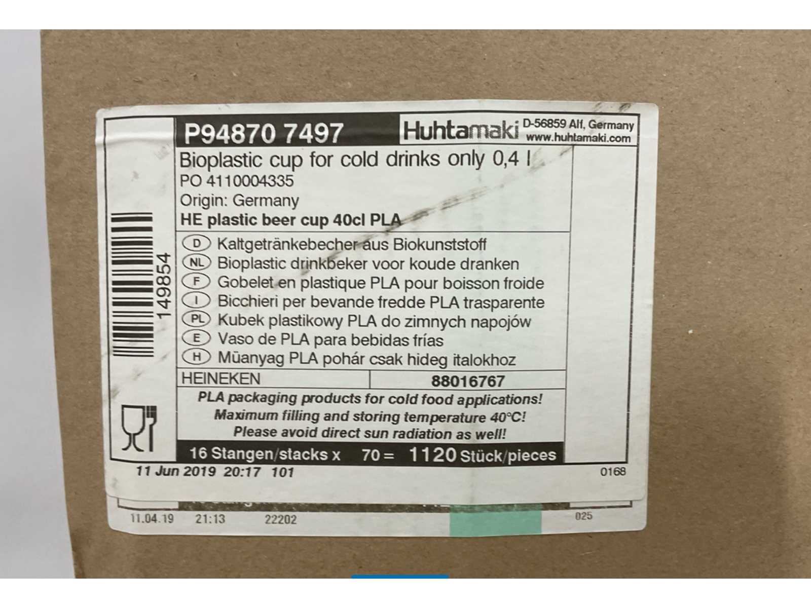 Kavel bestaat uit 4 dozen;1 doos bevat 1120 bekers Merk: Bioware Model: Heineken