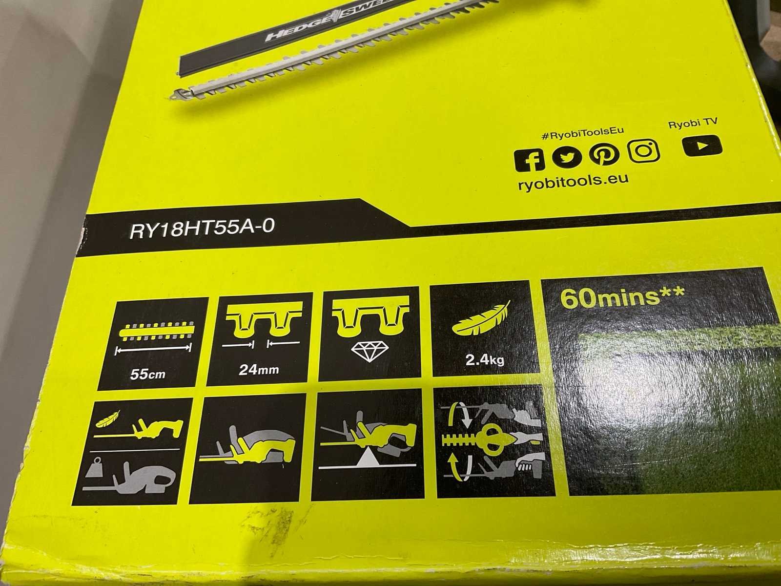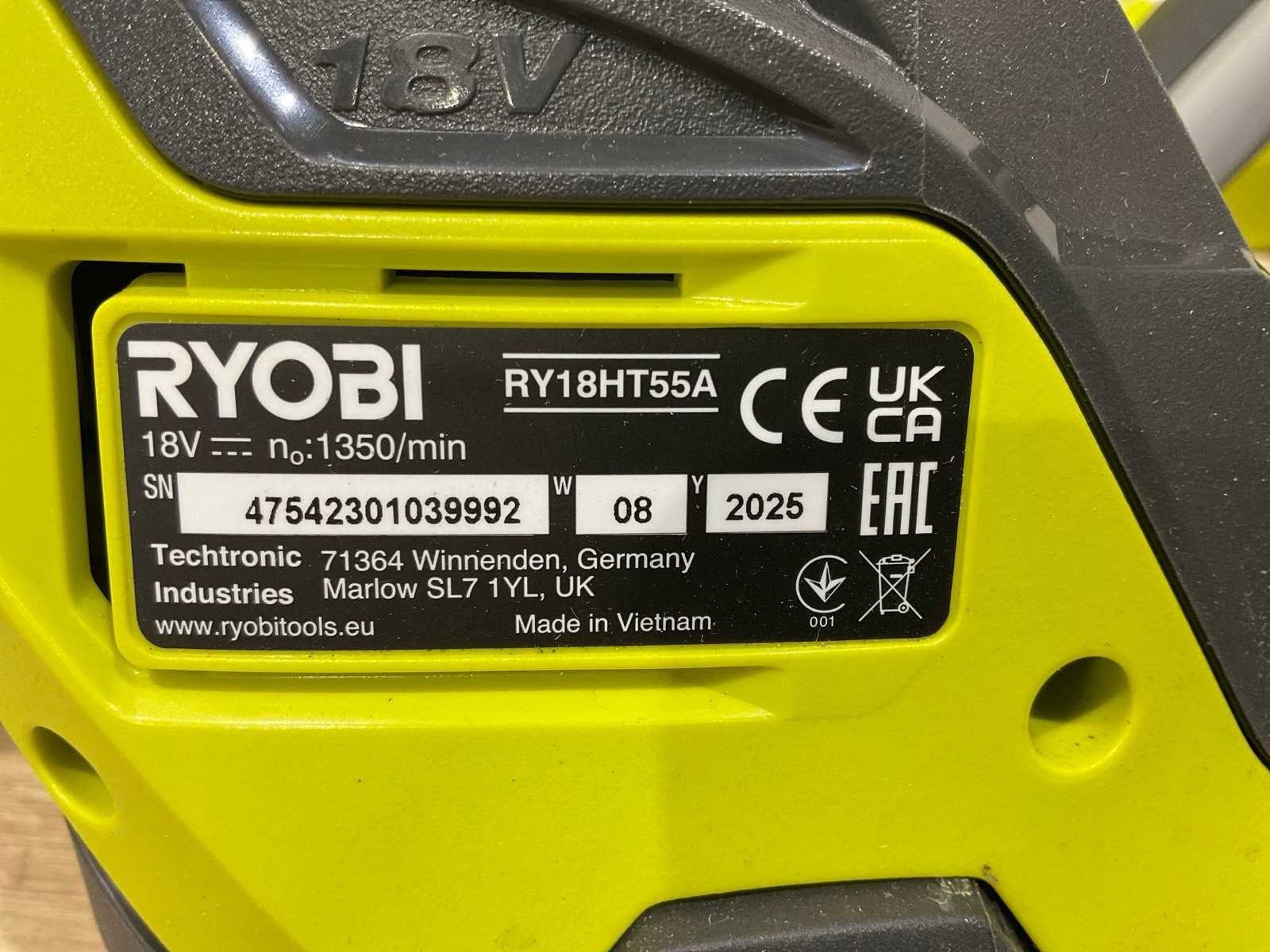 Werkend op accu; accu en acculader niet meegeleverd; niet getest Merk: Ryobi Type: RY18HT55A-0