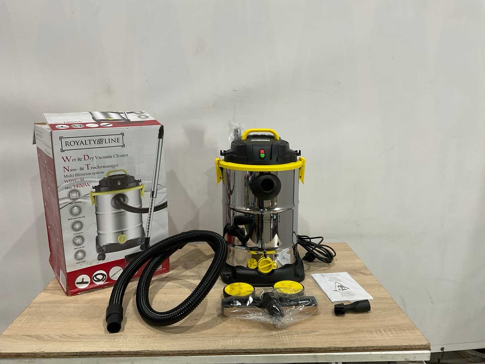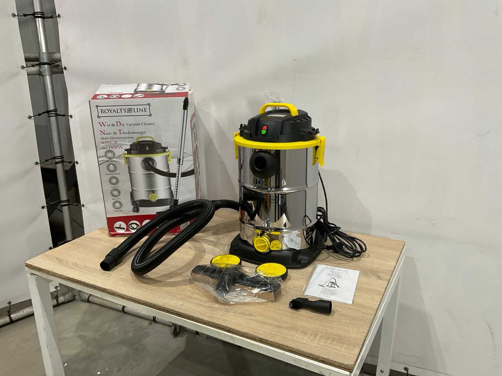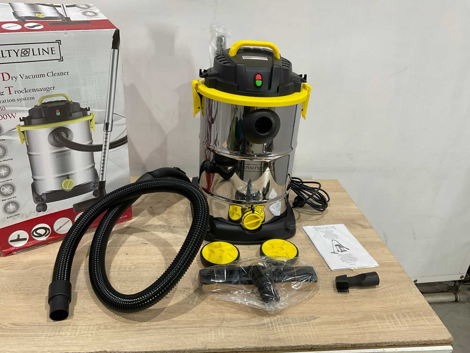 Nat en droog stofzuiger; ongebruikt Merk: Royalty line Model: WDVC-30 Vermogen: 1200W Spanning: 220V