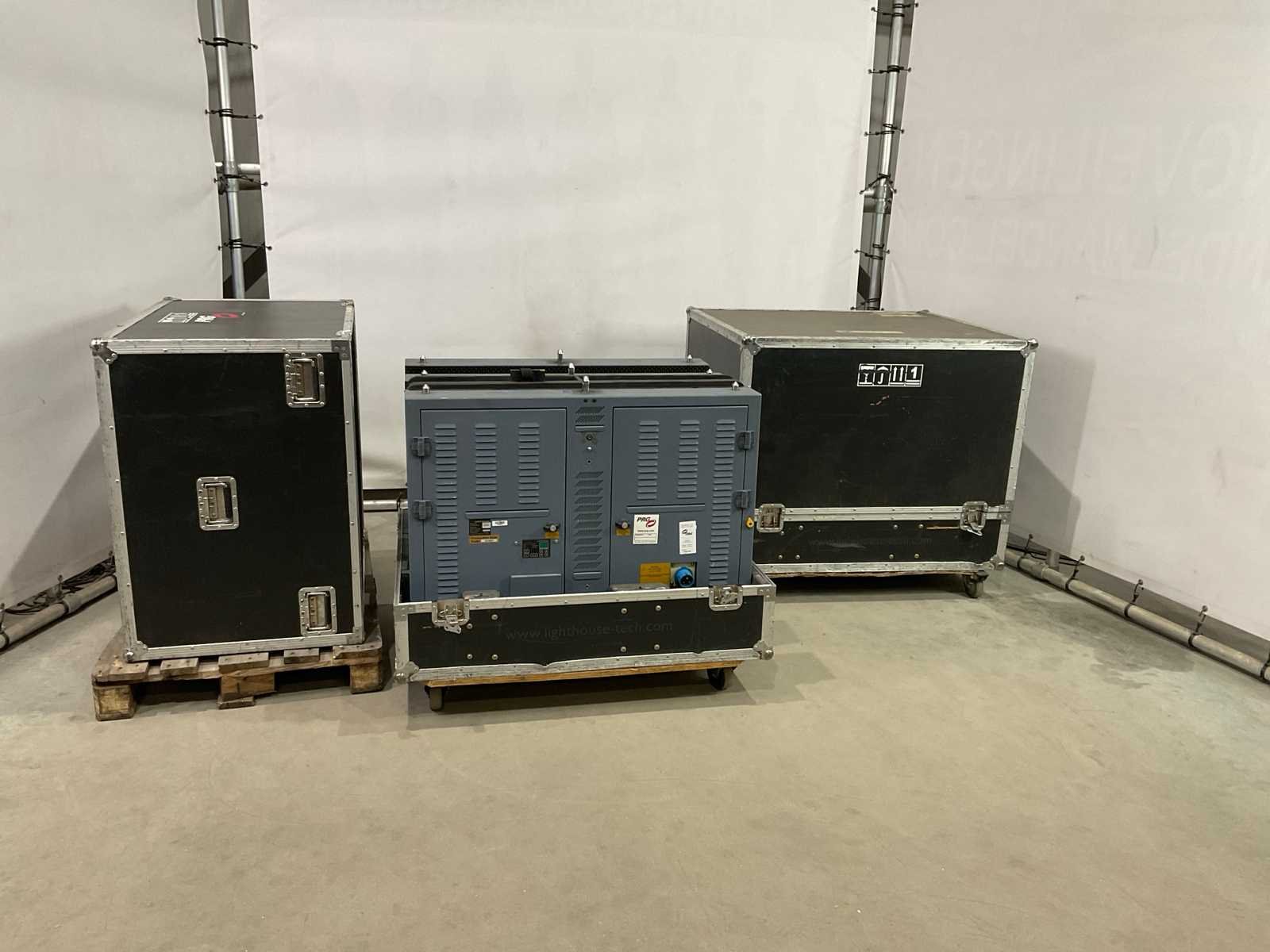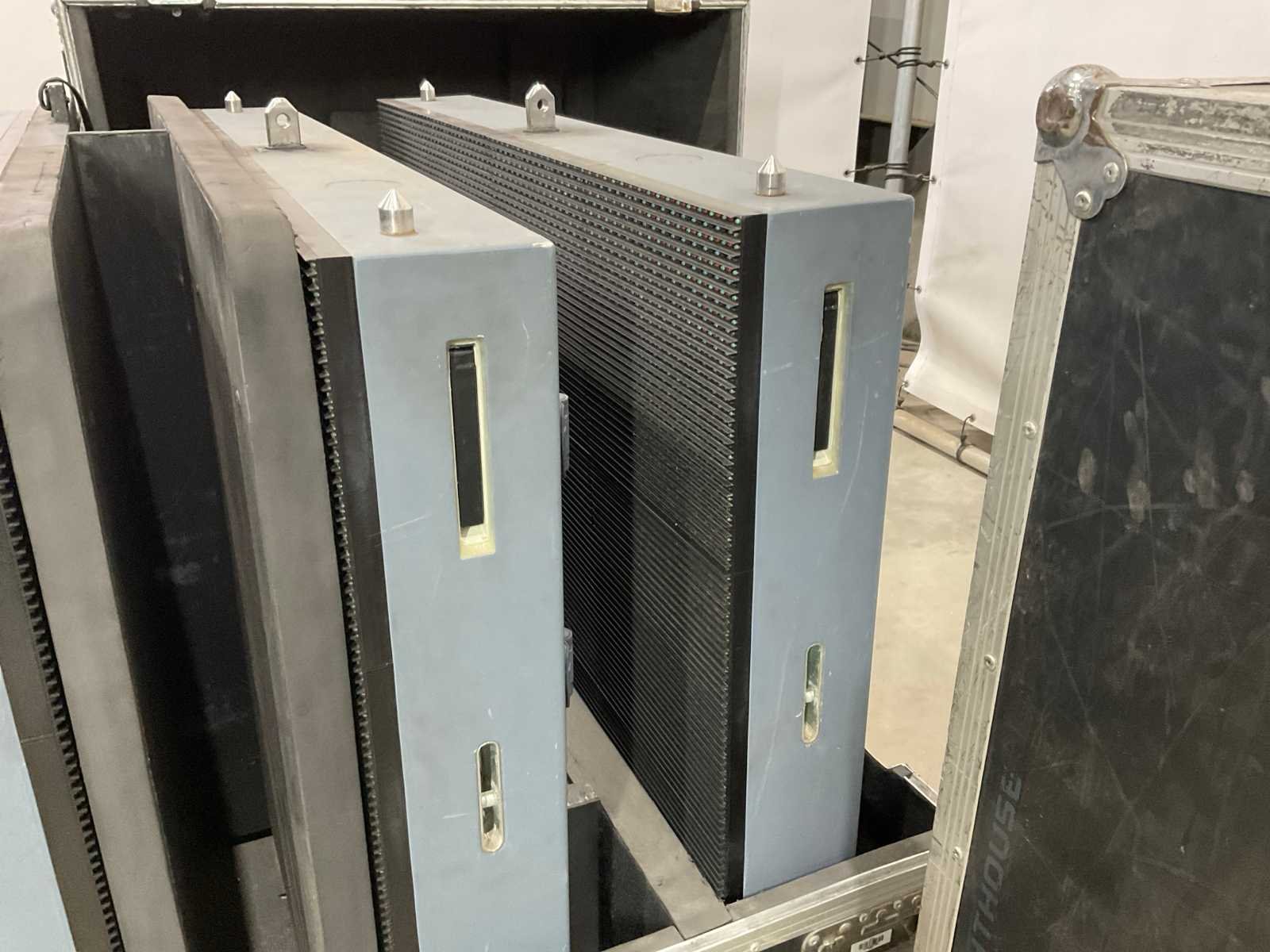 Afmetingen ledscherm circa 102 cm lang; 14 cm breed; 75 cm hoog; kavel bestaat uit 10 kisten met elk 3 led schermen Merk: Lighthouse Type: R16i/0-|| Serienummer: LH0105315 Met koffer: true Totale afmeting L: 1100mm Totale afmeting Breedte: 930mm Totale afmeting Hoogte: 1020mm