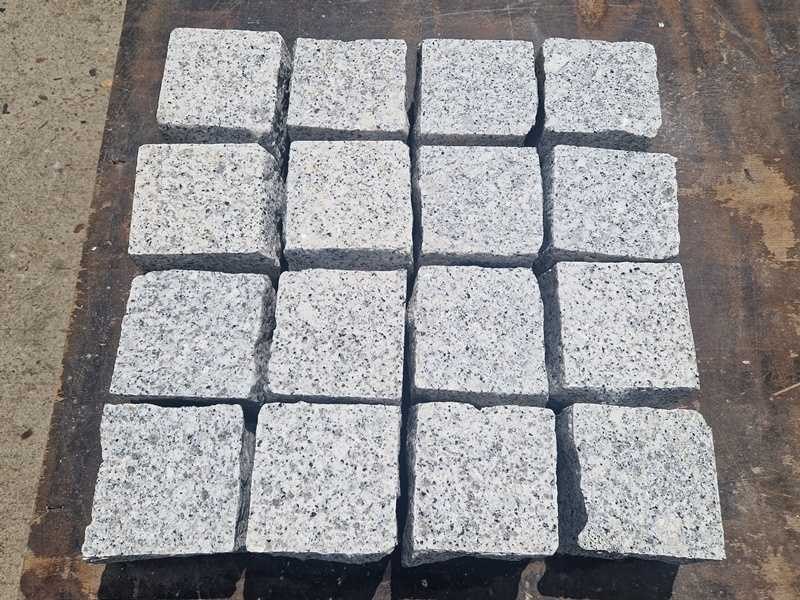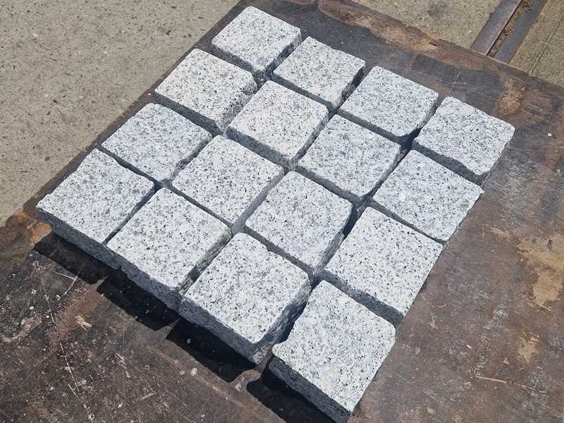 Afmetingen circa 10 cm x 10 cm x 80 mm. Natuursteen. Aantal pallets: 1. Kleur: Graniet grijs Lengte: 10cm Breedte: 10cm Hoogte: 80cm