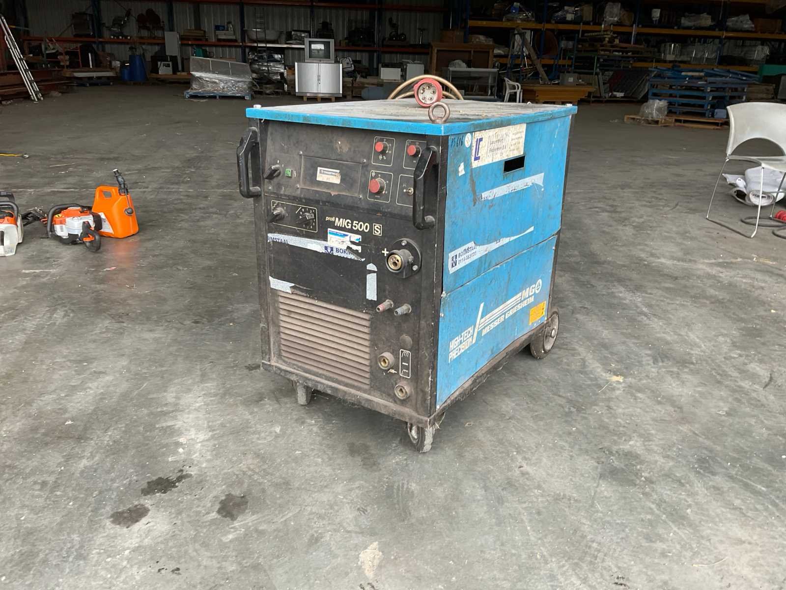 Merk: Messer Griesheim Type: MIG500 Aansluiting: 380V Afmeting l: 1100mm Afmeting b: 560mm Afmeting h: 880mm