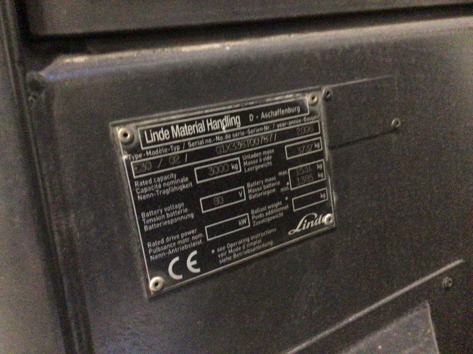Met lader Merk: Linde Type: E30 Bouwjaar: 2006 Serienummer: G1X336T00787 Brandstof: Elektrisch Mast: Triple Soort band: Volrubber banden Aantal wielen: 4 Afgelezen urenstand: 10973 Accu lader: true Free-lift: true Side-shift: true Triple mast: true Eigen gewicht: 5200kg Hefvermogen: 3000kg Lepellengte: 1600mm Hefhoogte: 4700mm Vol rubber banden: true Minimale doorrijhoogte: 2200mm Totale afmeting L: 2350mm Totale afmeting Breedte: 1150mm Totale afmeting Hoogte: 2200mm
