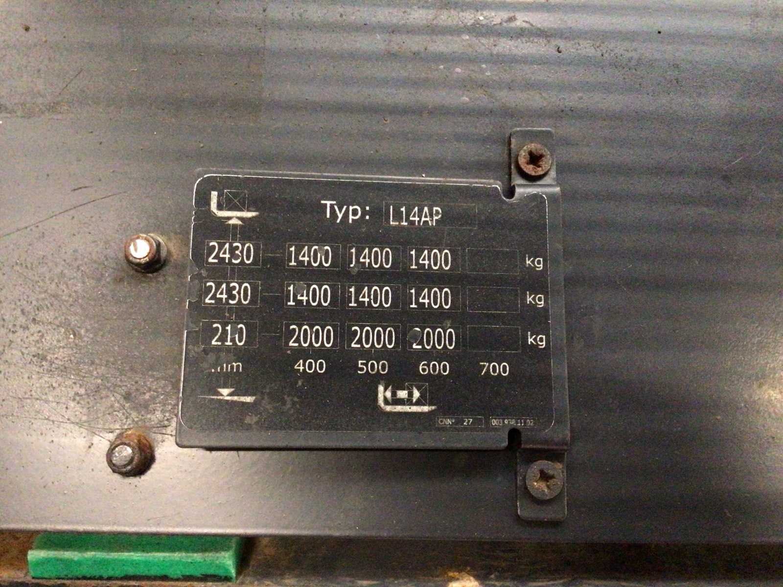 Merk: Linde Type: L14AP Bouwjaar: 2022 Serienummer: P21173L04144 Hefvermogen: 1400kg Hefhoogte: 2430mm Lepellengte: 1150mm Afgelezen urenstand: 9567 Eigen gewicht: 1007kg Minimale doorrijhoogte: 1700mm Totale afmeting L: 2500mm Totale afmeting Breedte: 800mm Meerij stapelaar: true Accu lader: true