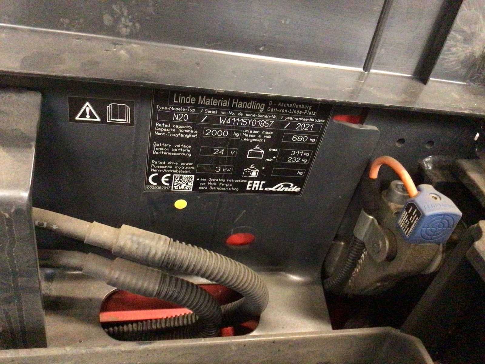 Merk: Linde Type: N20 Bouwjaar: 2021 Serienummer: W41115Y01957 Hefvermogen: 2000kg Lepellengte: 1160mm Afgelezen urenstand: 559 Eigen gewicht: 690kg Totale afmeting L: 2600mm Totale afmeting Breedte: 800mm Totale afmeting Hoogte: 1137mm