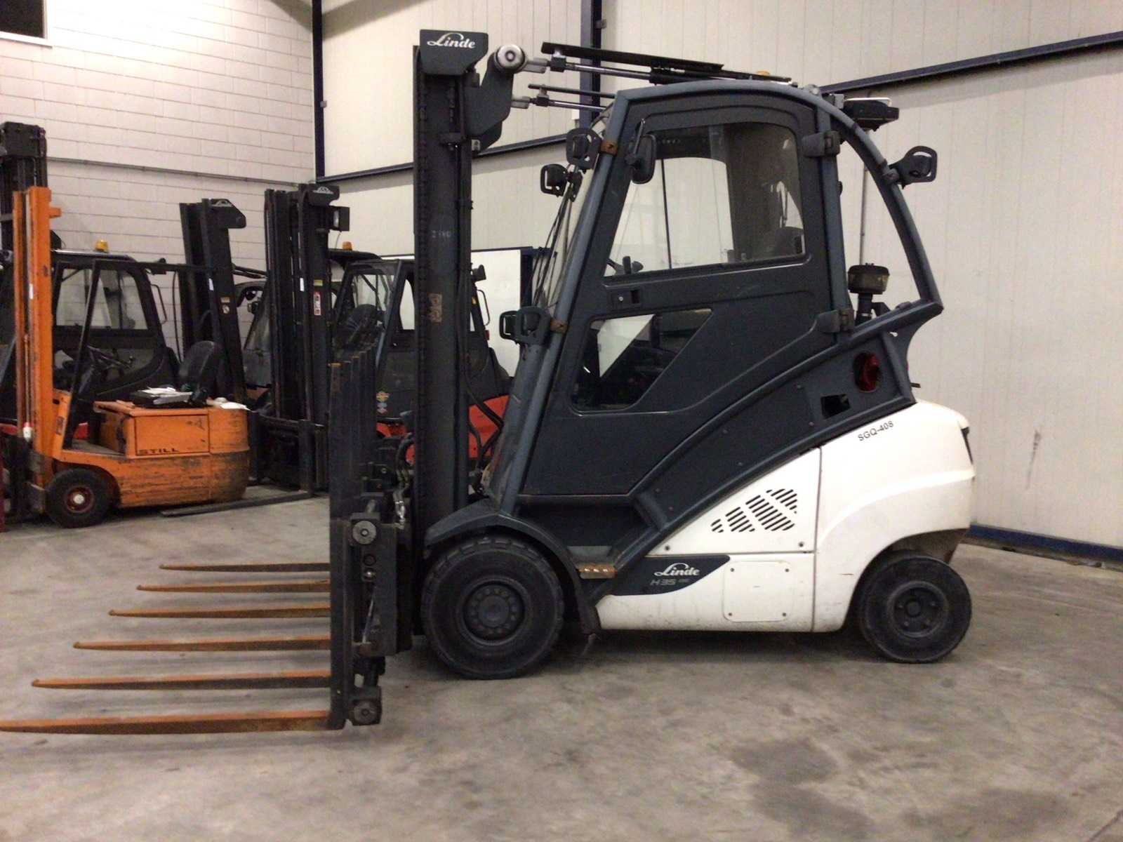 Merk: Linde Type: H35T Bouwjaar: 2019 Serienummer: H2X393V04975 Brandstof: LPG Mast: Duplex Soort band: Volrubber banden Aantal wielen: 4 Afgelezen urenstand: 8842 Eigen gewicht: 5175kg Hefvermogen: 3500kg Lepellengte: 1200mm Hefhoogte: 4150mm Totale afmeting L: 3000mm Totale afmeting Breedte: 1300mm Totale afmeting Hoogte: 2780mm LPG: true