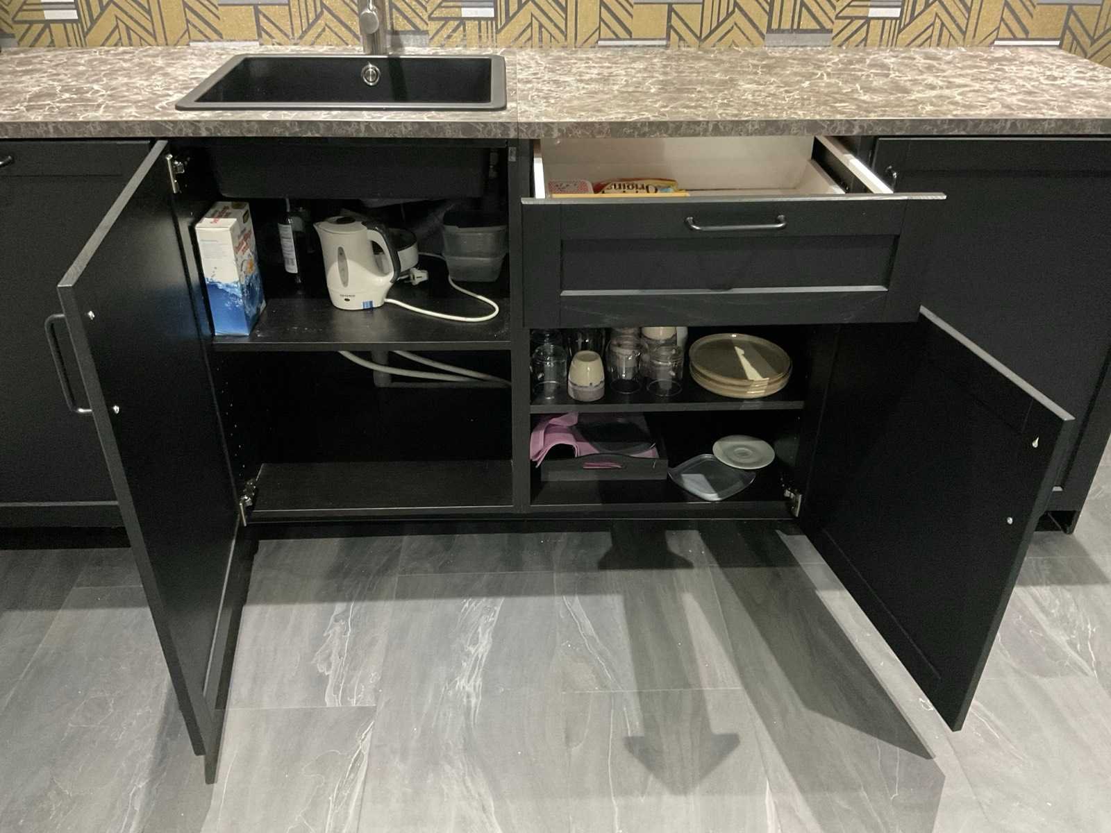 Design keukenopstelling voorzien van vaatwasser/gootsteen/koelkast