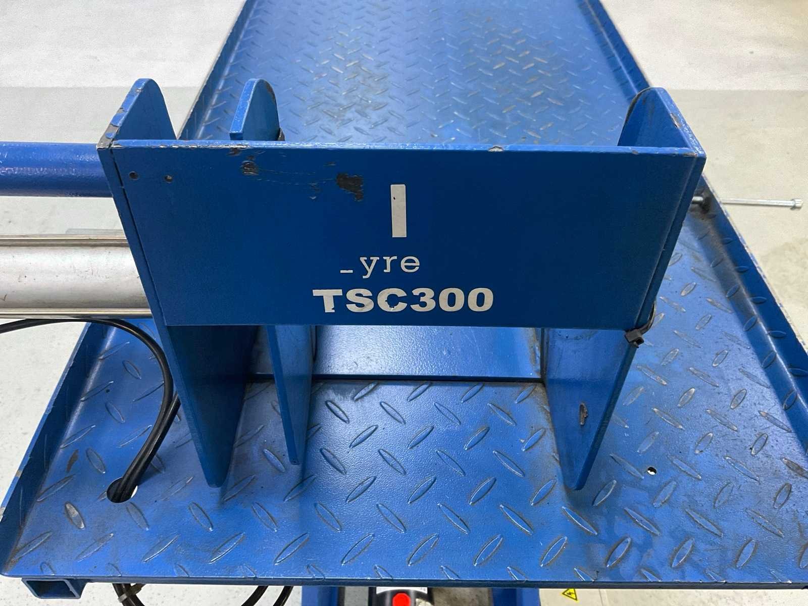 Merk: TyreON Type: TSC300 Baanbreedte: 560mm Vermogen: 0.75kW Aansluiting: 230V Eigen gewicht: 180kg Totale afmeting L: 2400mm Totale afmeting Breedte: 750mm Totale afmeting Hoogte: 1200mm