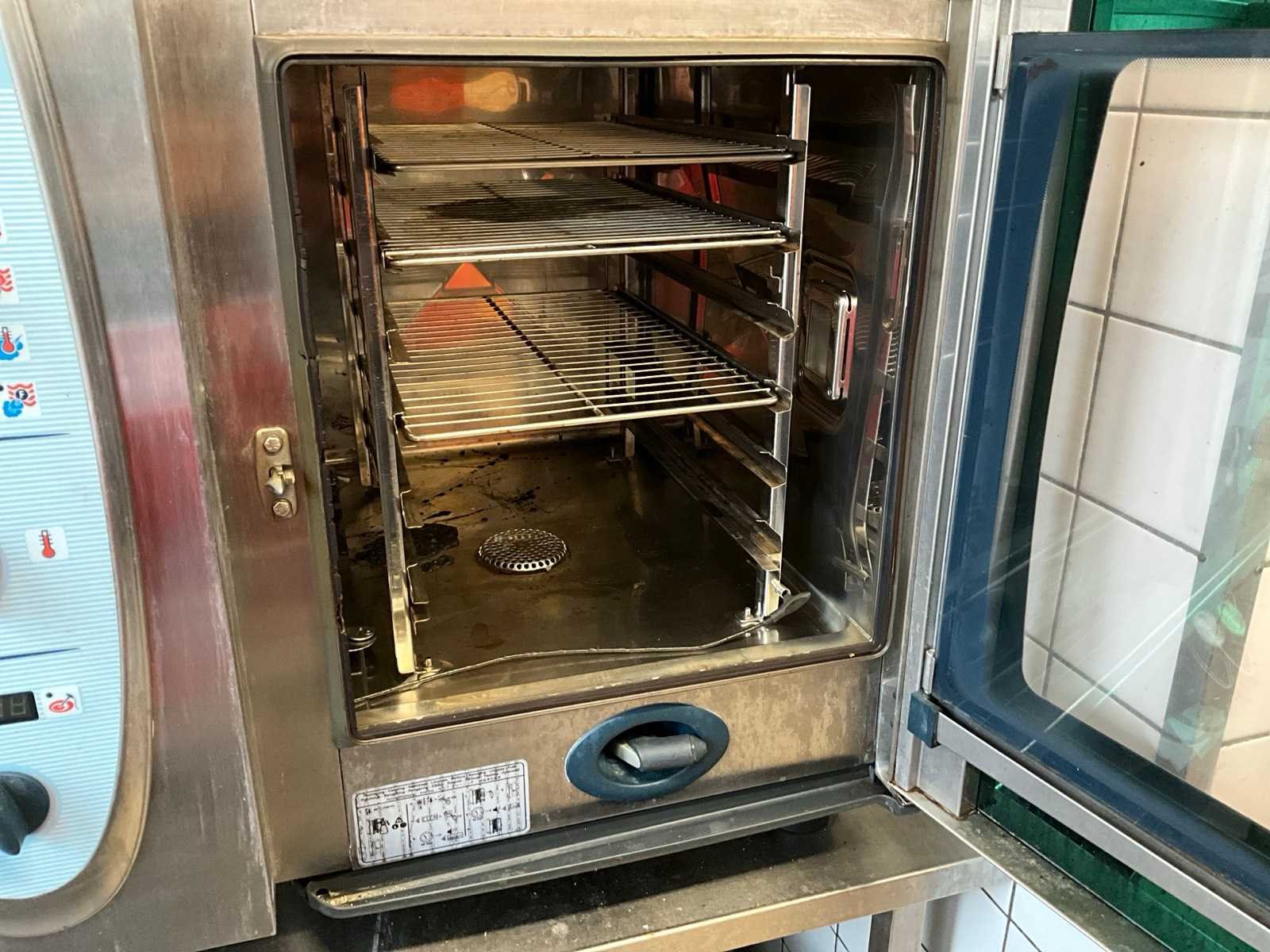 10kW; Voorzien van RVS werktafel; Merk: Rational Type: CombiMaster CM61 Aantal niveau's: 6 Aansluiting: 400V Elektrisch: true Rvs: true Totale afmeting L: 80cm Totale afmeting Breedte: 85cm Totale afmeting Hoogte: 80cm