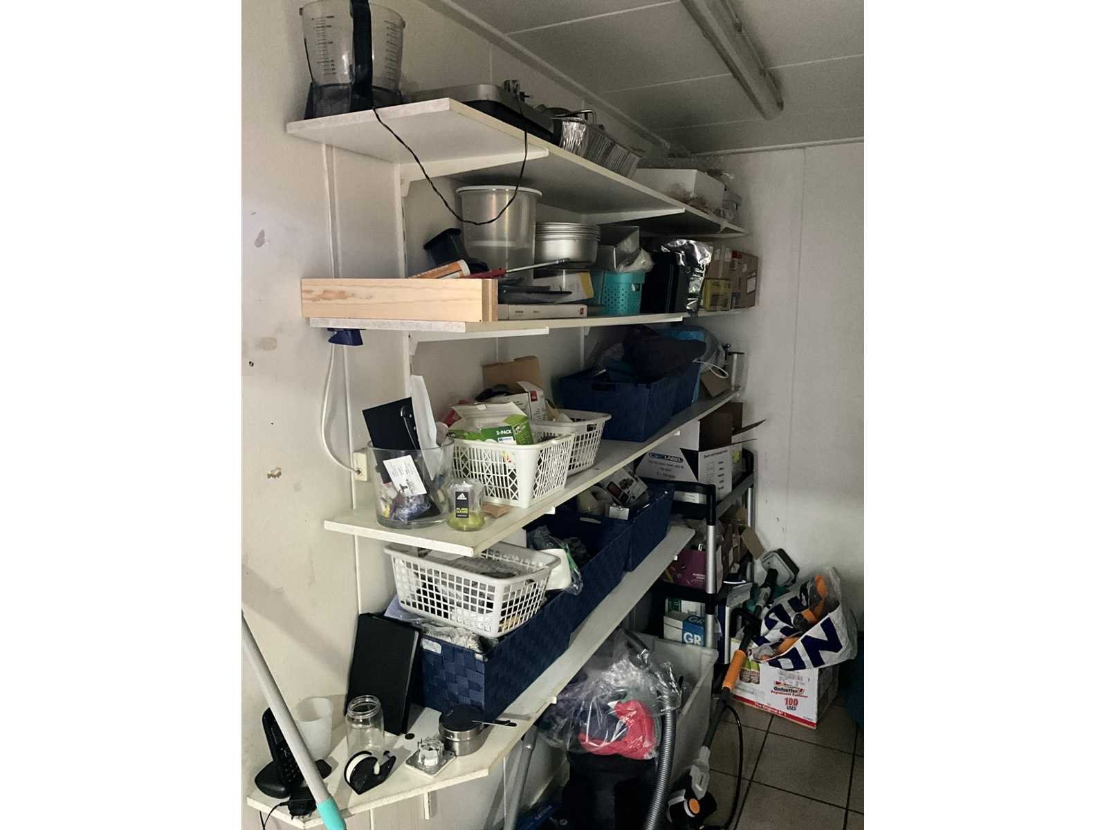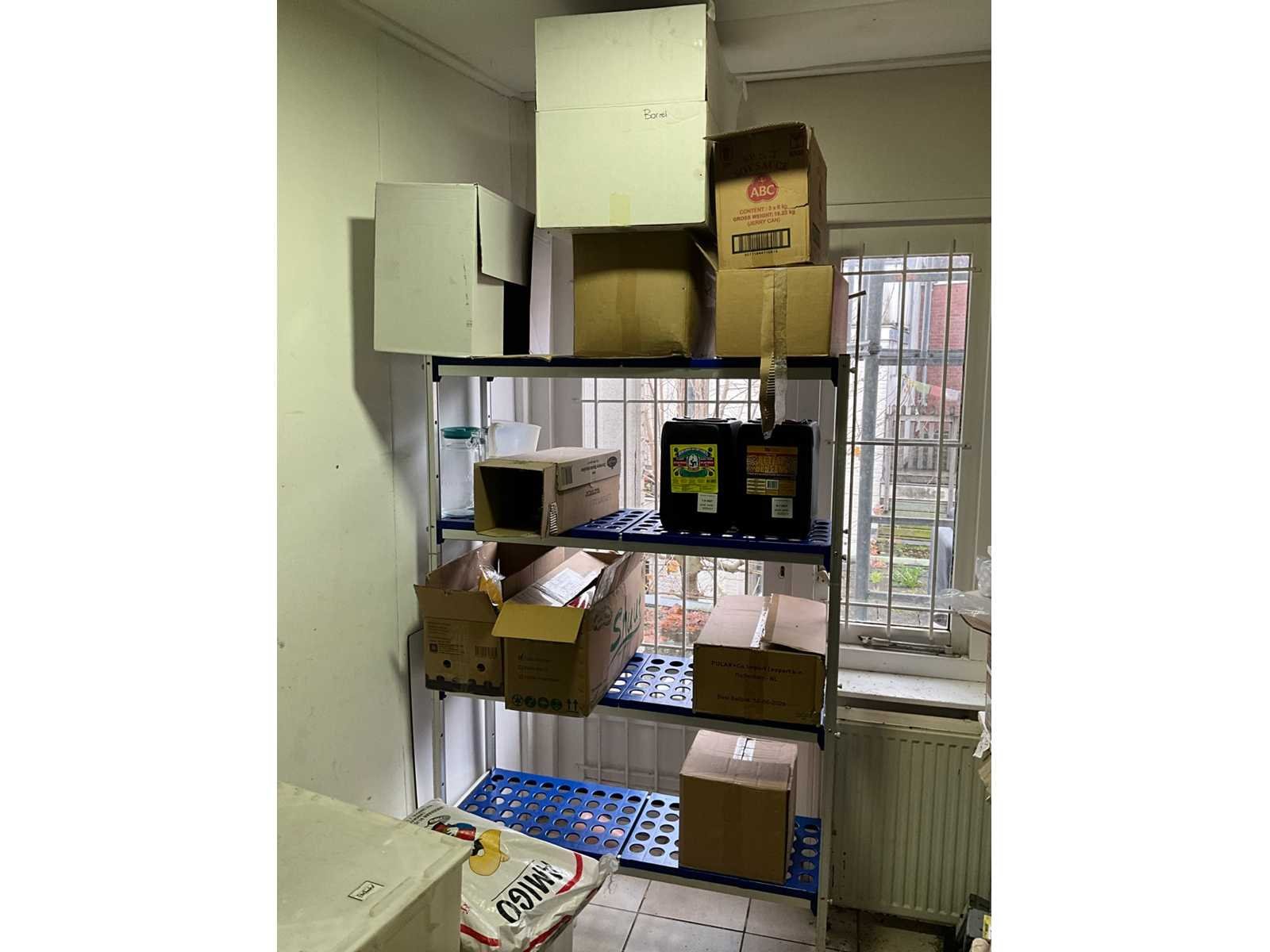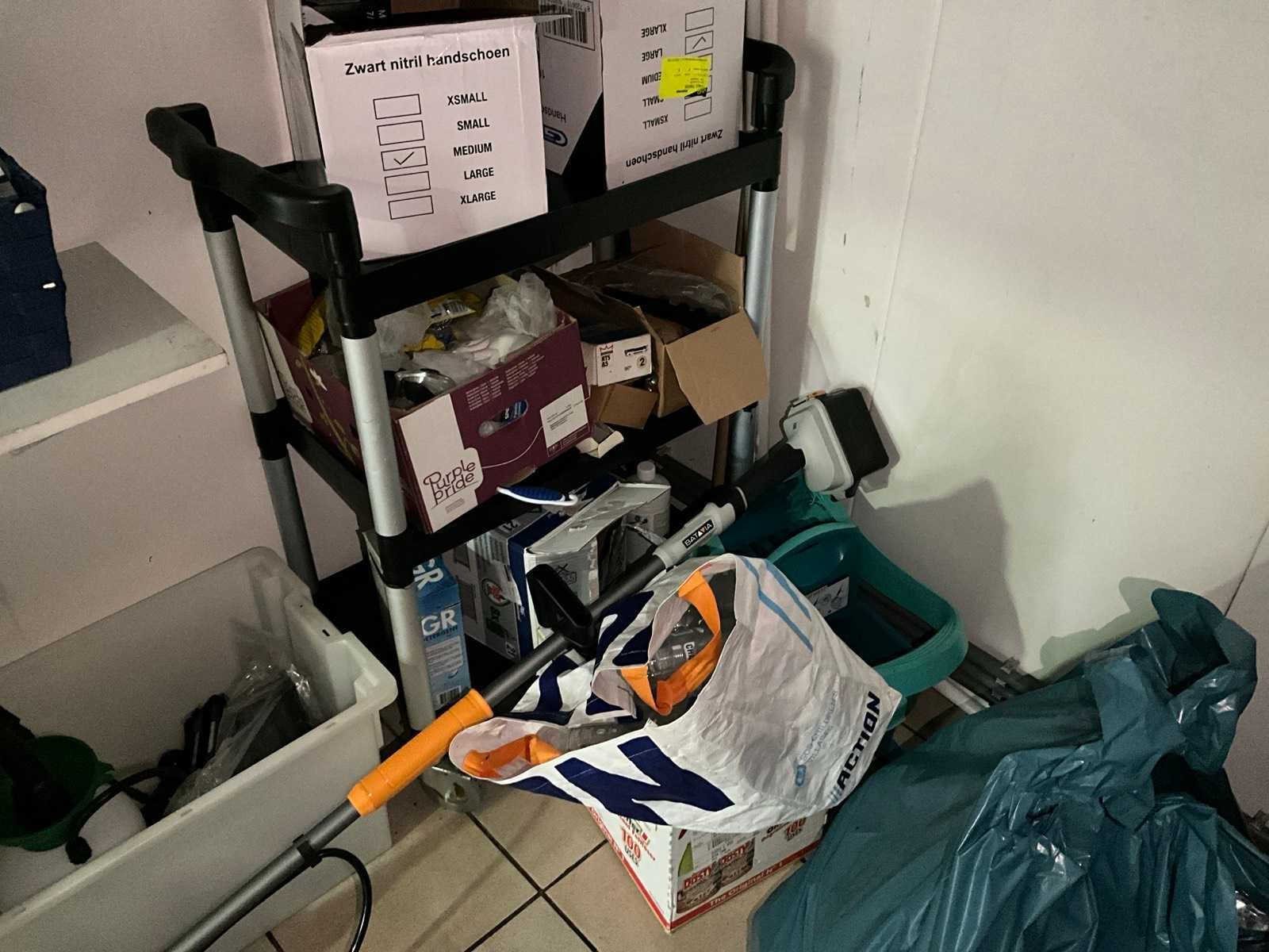 Waaronder diverse voedingsmiddelen; stellingen; keukengerei; stofzuiger; disposables etc.